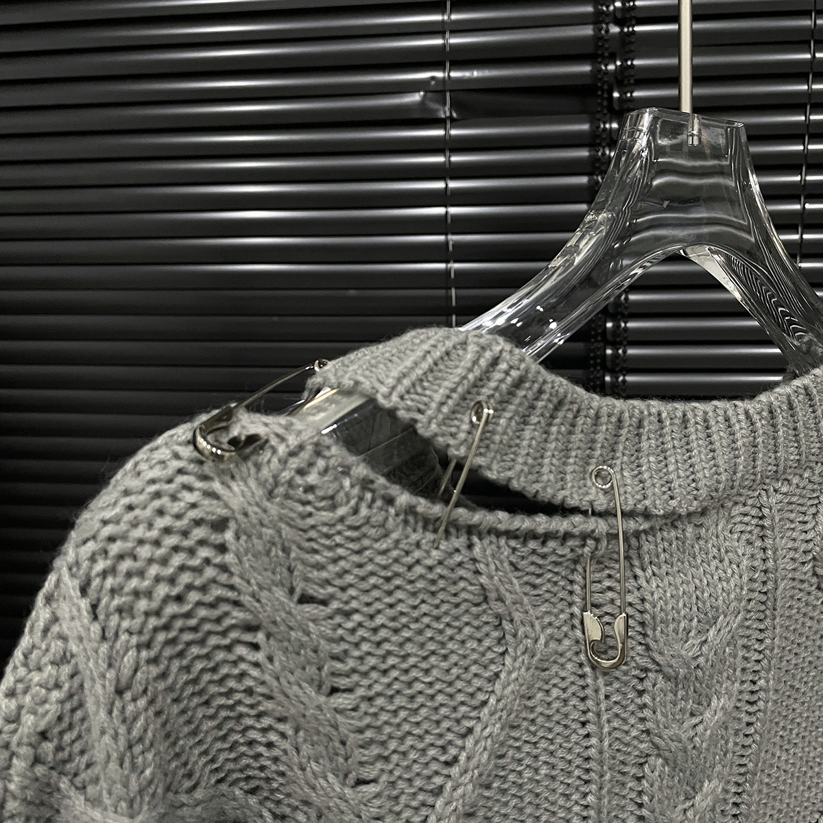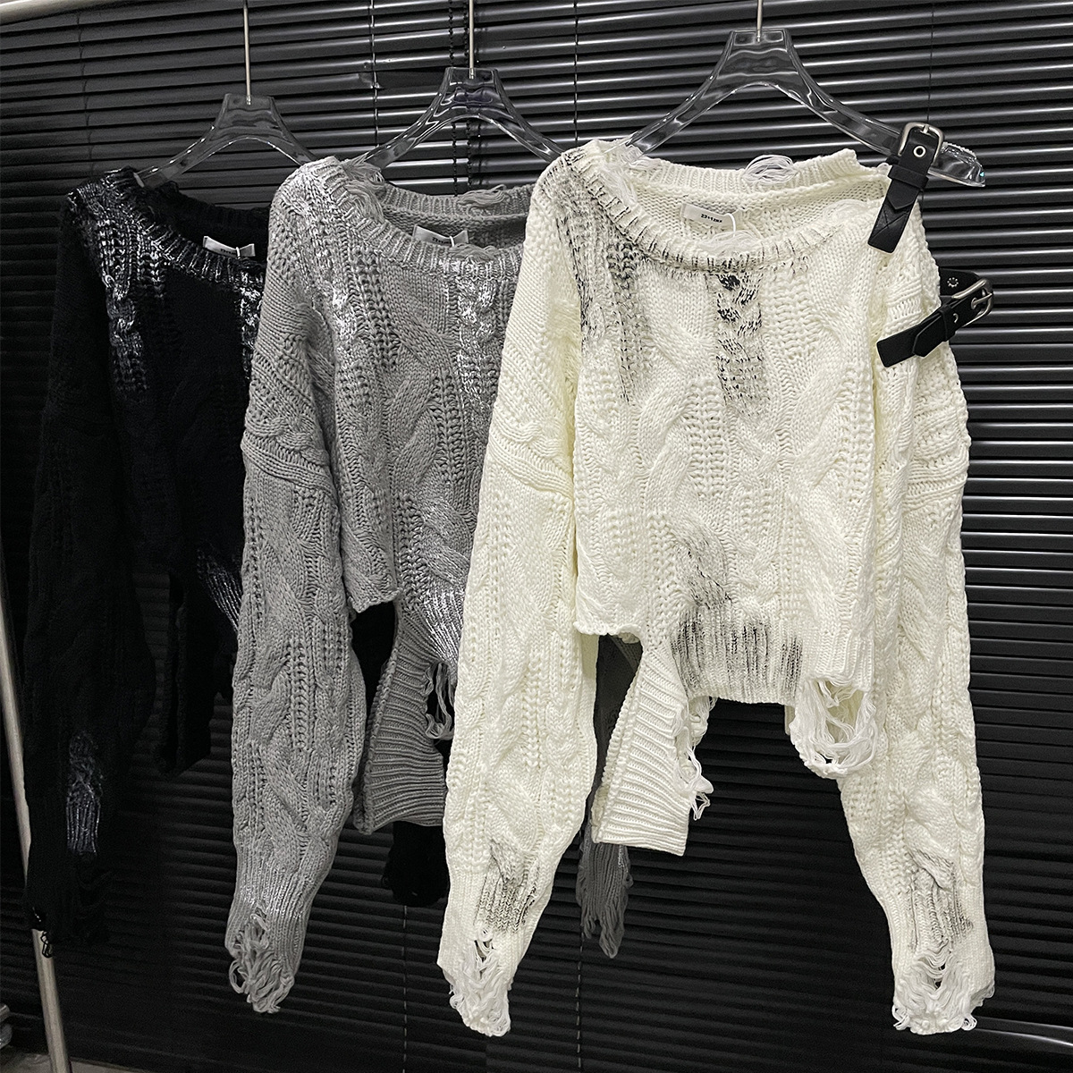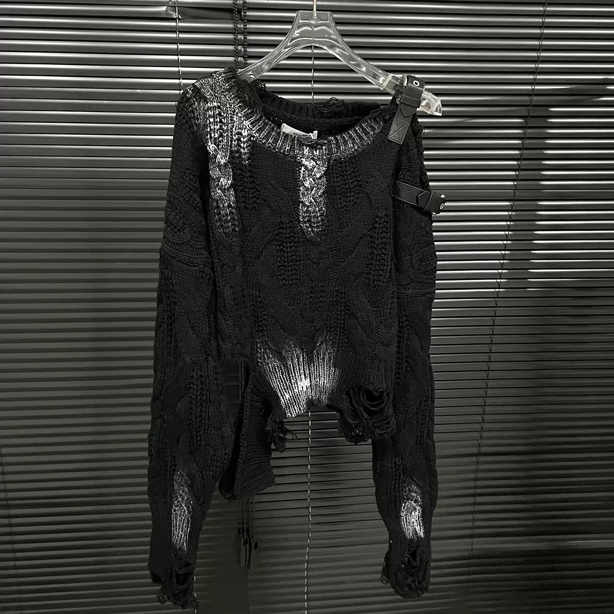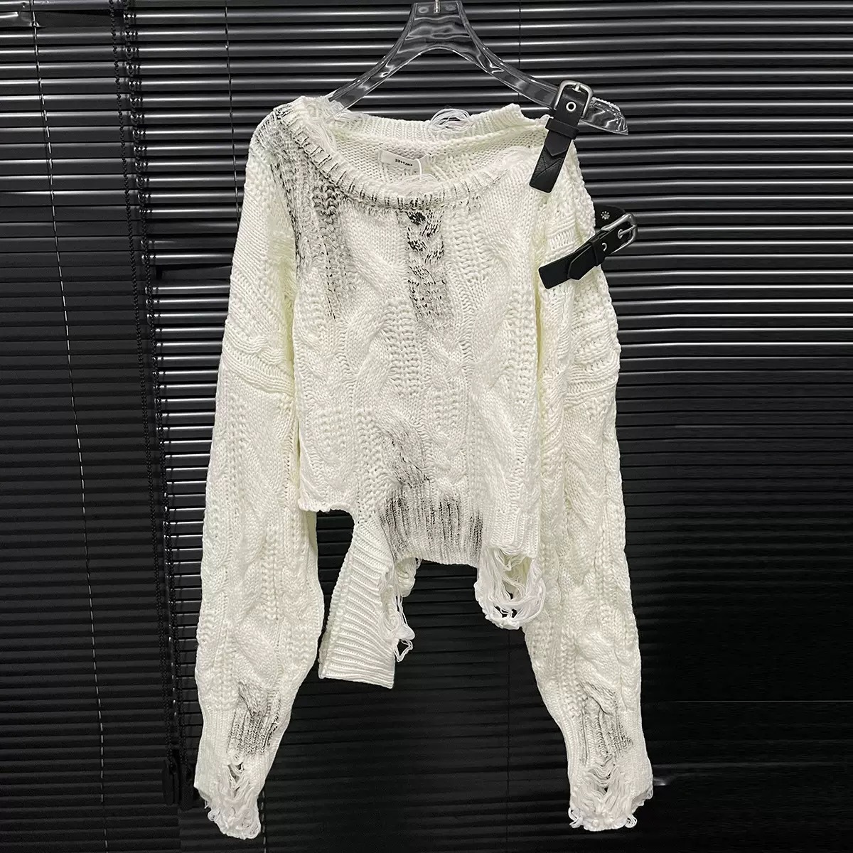 벨트 디자인 어깨 스웨터 여성 아메리칸 스타일 게으른 패션 니트 탑