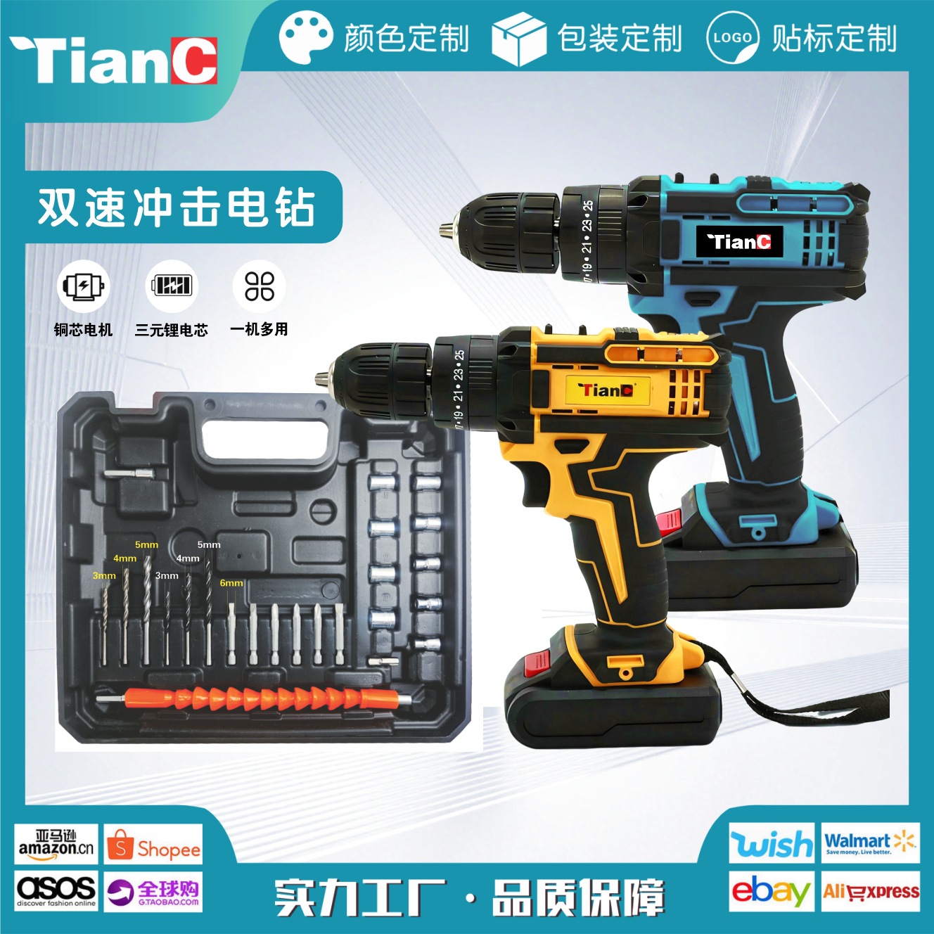 맞춤형 리튬 전기 드릴 다기능 가정용 전기 드라이버 핸드 드릴 목공 도매 임팩트 드릴 도구 하드웨어스토어 가기