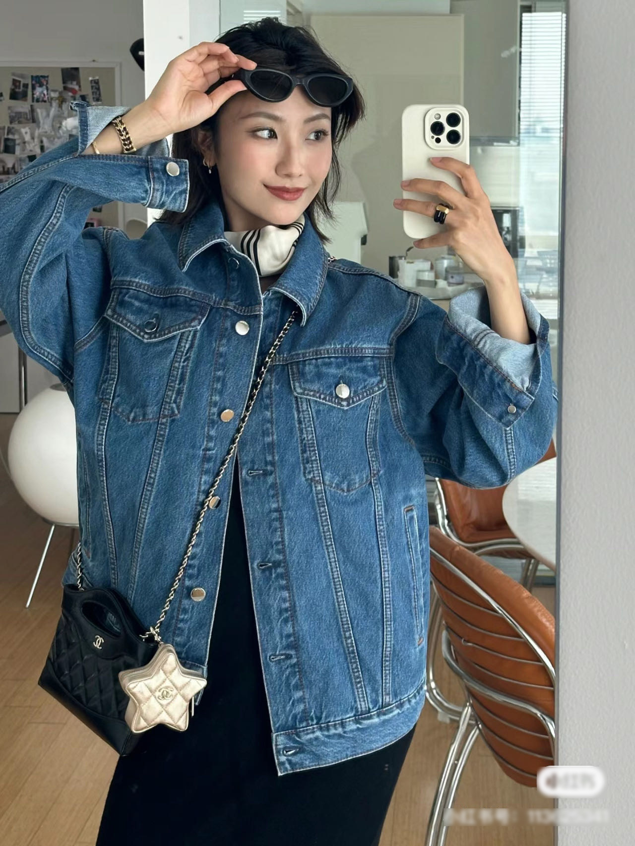 2024 초가을 새로운 유럽과 미국의 스웨덴 TO 같은 스타일 SAVI 워시 블루 여성 데님 재킷 여성용스토어 가기
