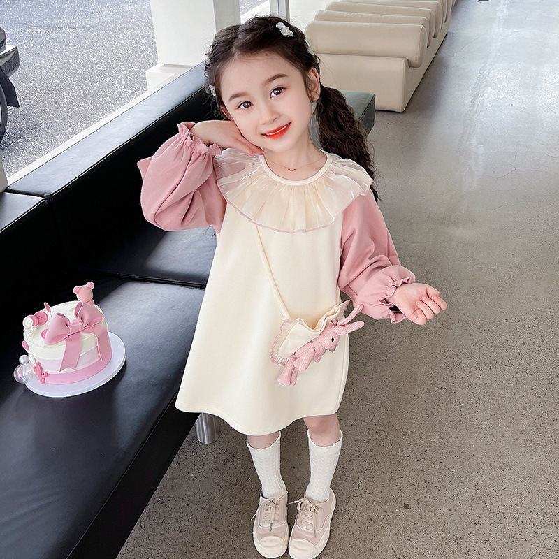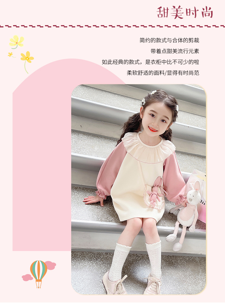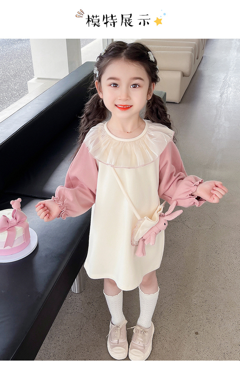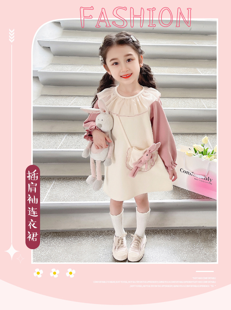 소녀 라글란 소매 원피스 봄과 가을 2024 새로운 유행 어린이 아기 소녀 달콤한 공주 치마스토어 가기