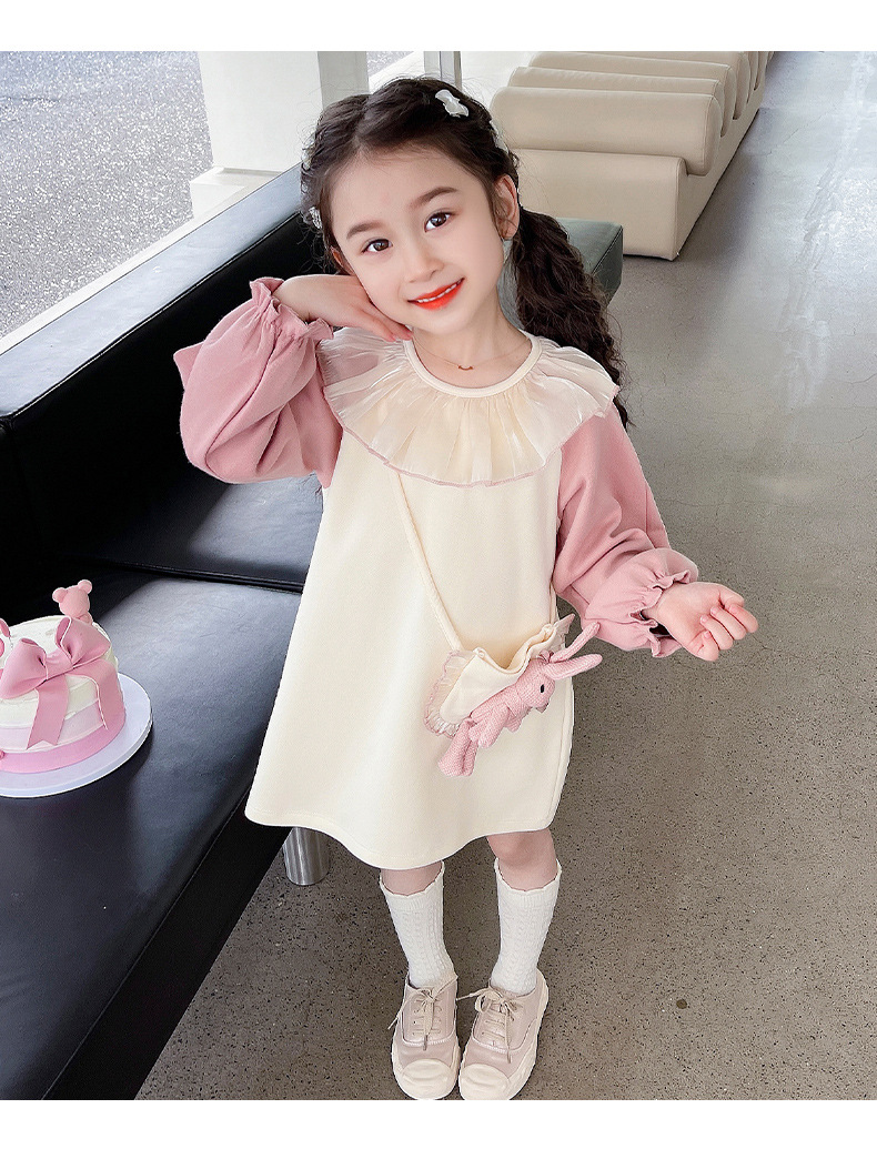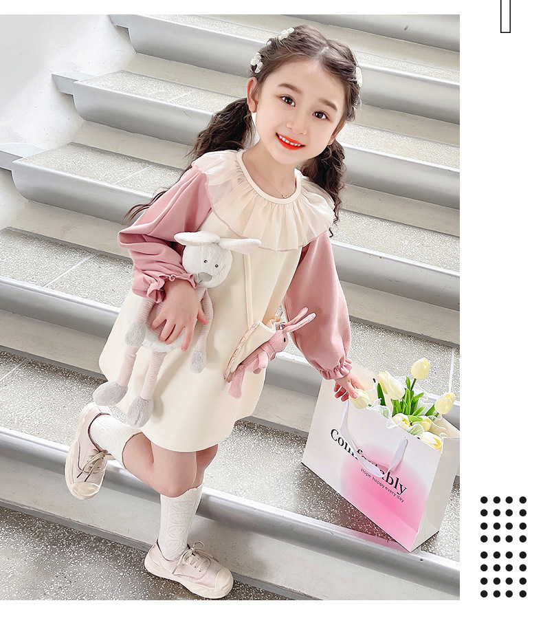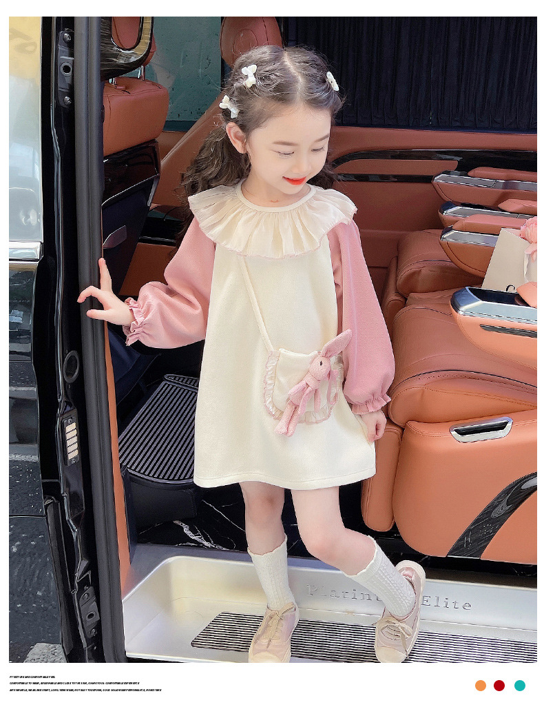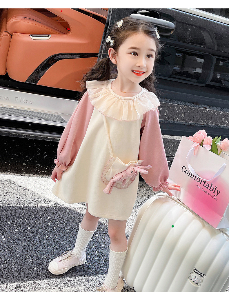 소녀 라글란 소매 원피스 봄과 가을 2024 새로운 유행 어린이 아기 소녀 달콤한 공주 치마스토어 가기
