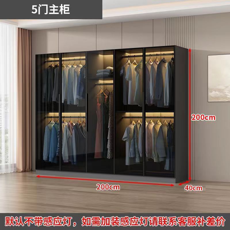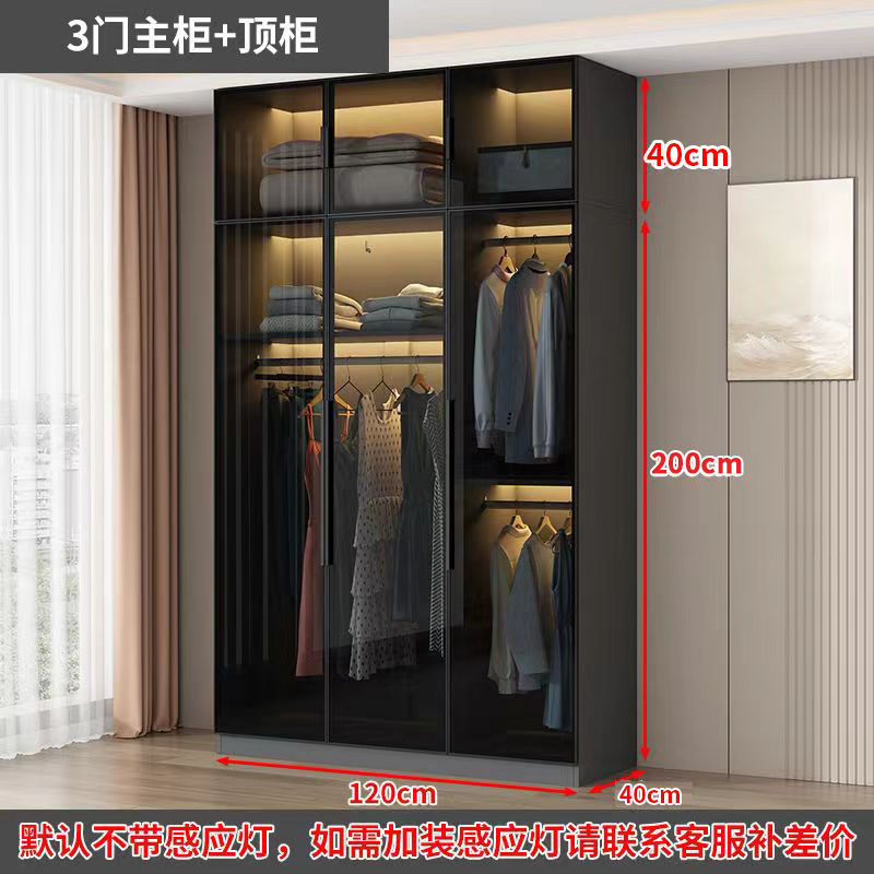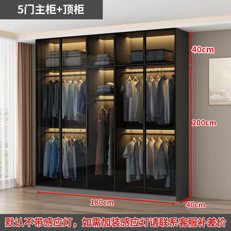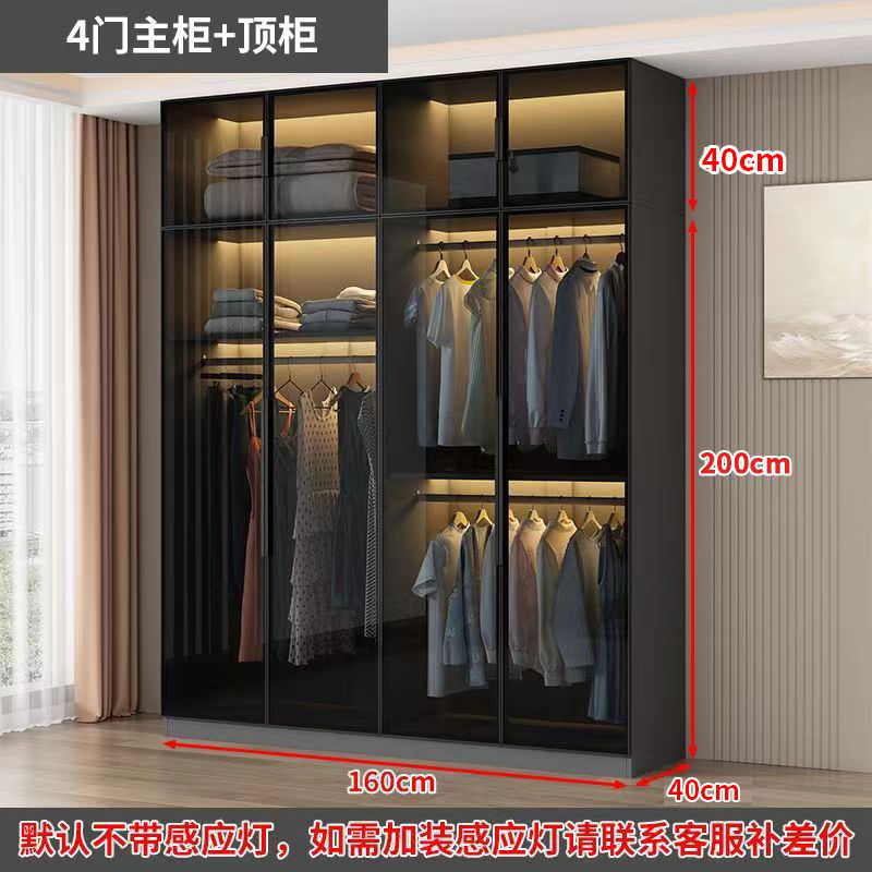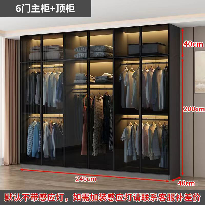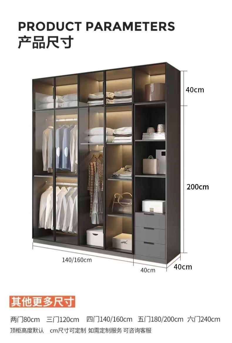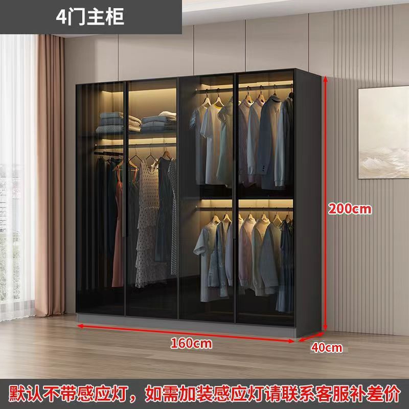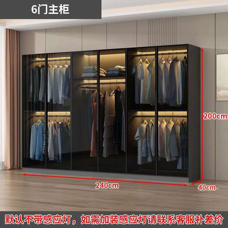 가벼운 고급 옷장 홈 침실 옷걸이 유리 문 두 배 문 옷장 유럽식 보관 망토 유리 캐비닛
