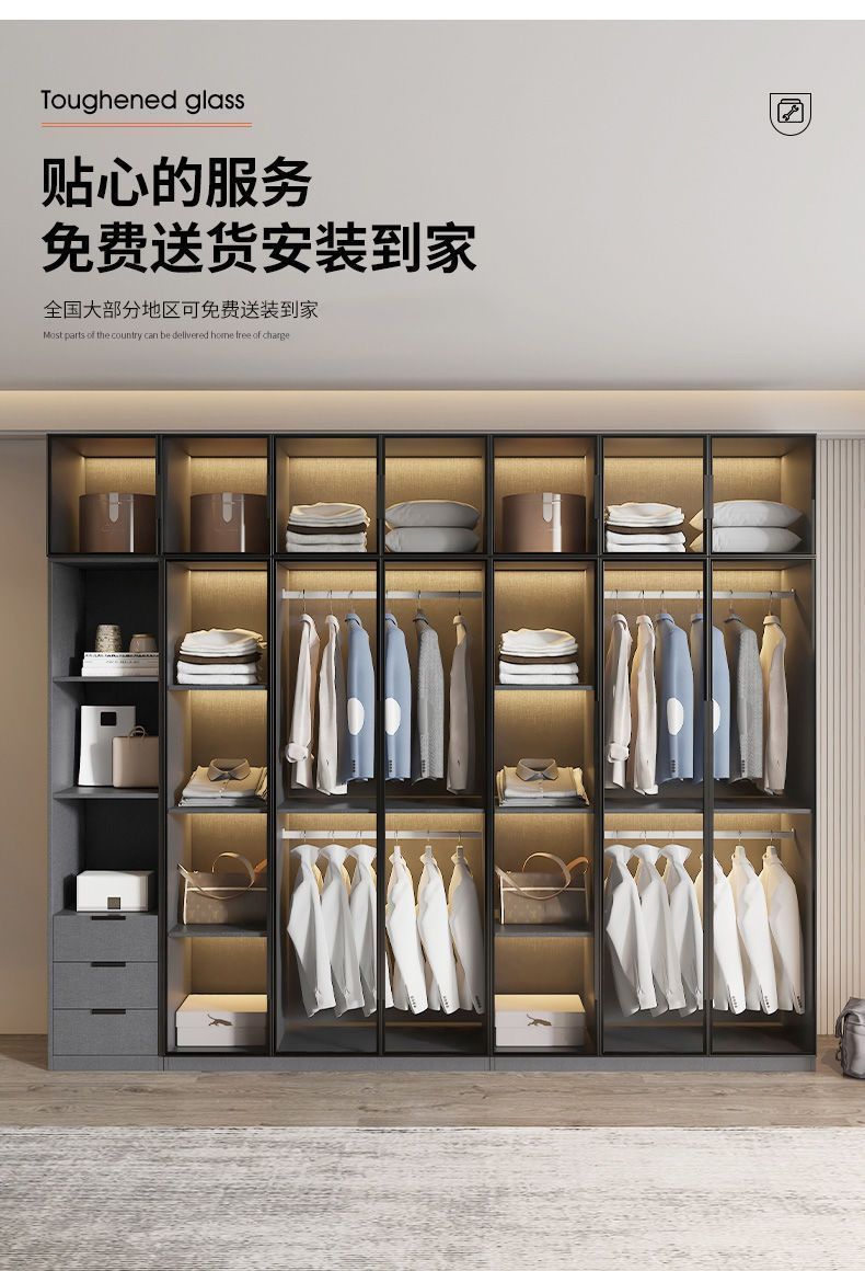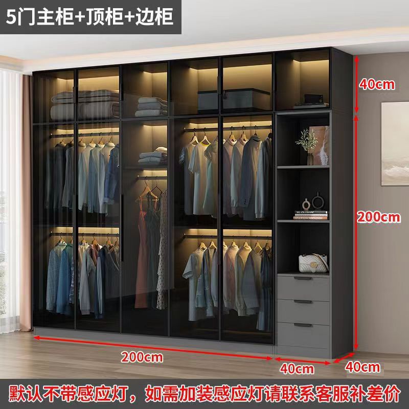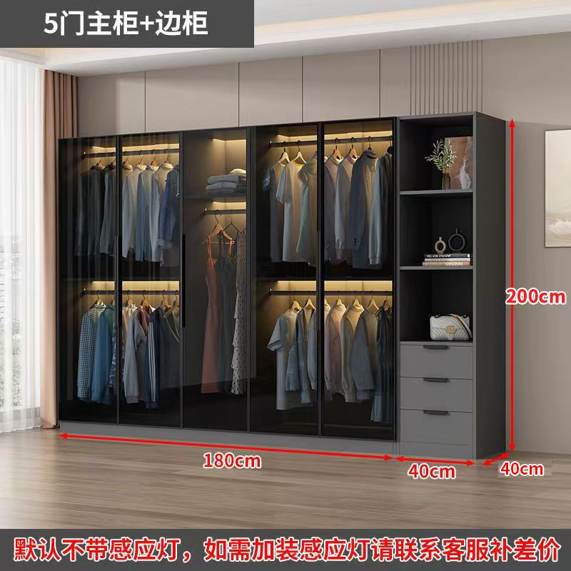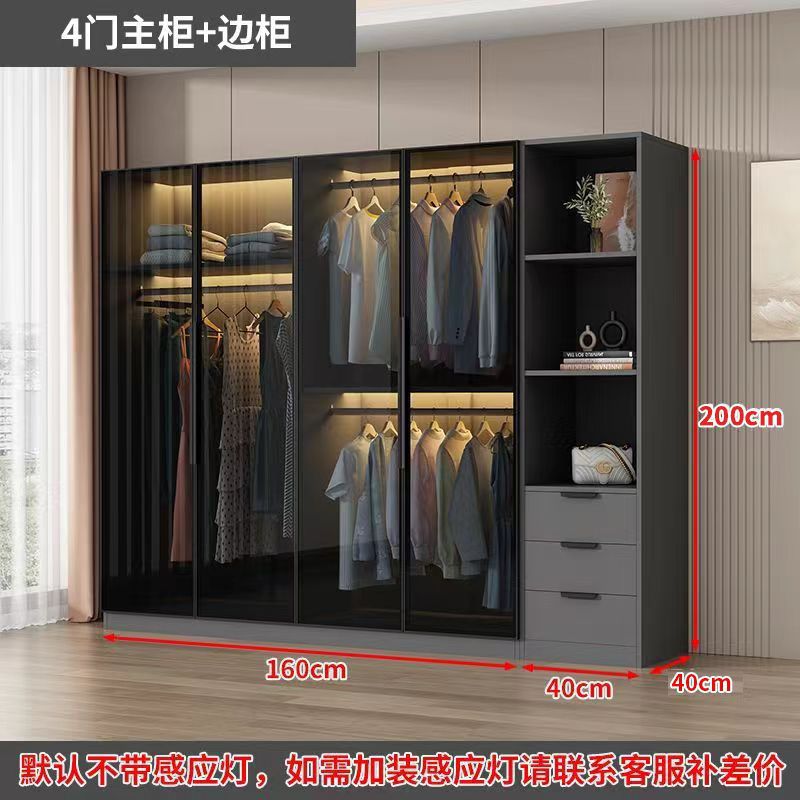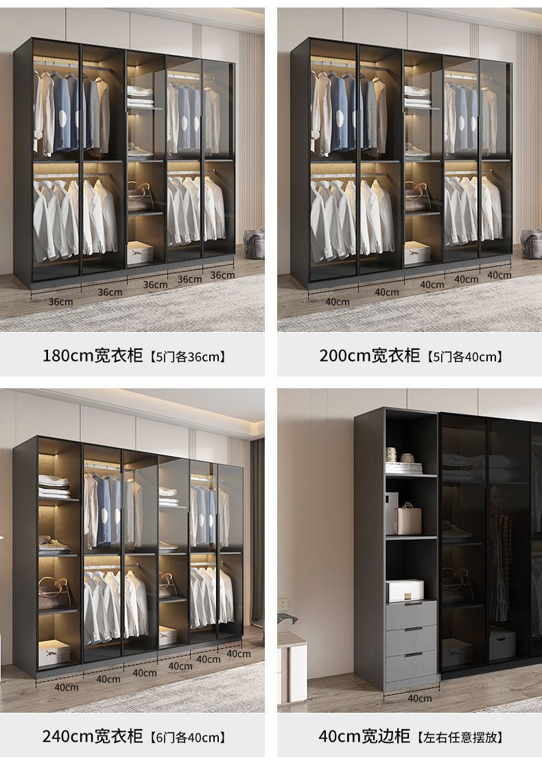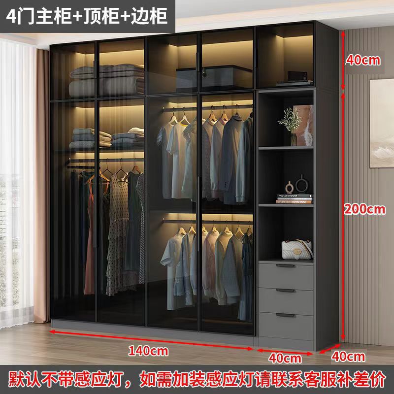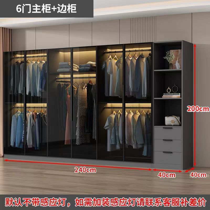 가벼운 고급 옷장 홈 침실 옷걸이 유리 문 두 배 문 옷장 유럽식 보관 망토 유리 캐비닛