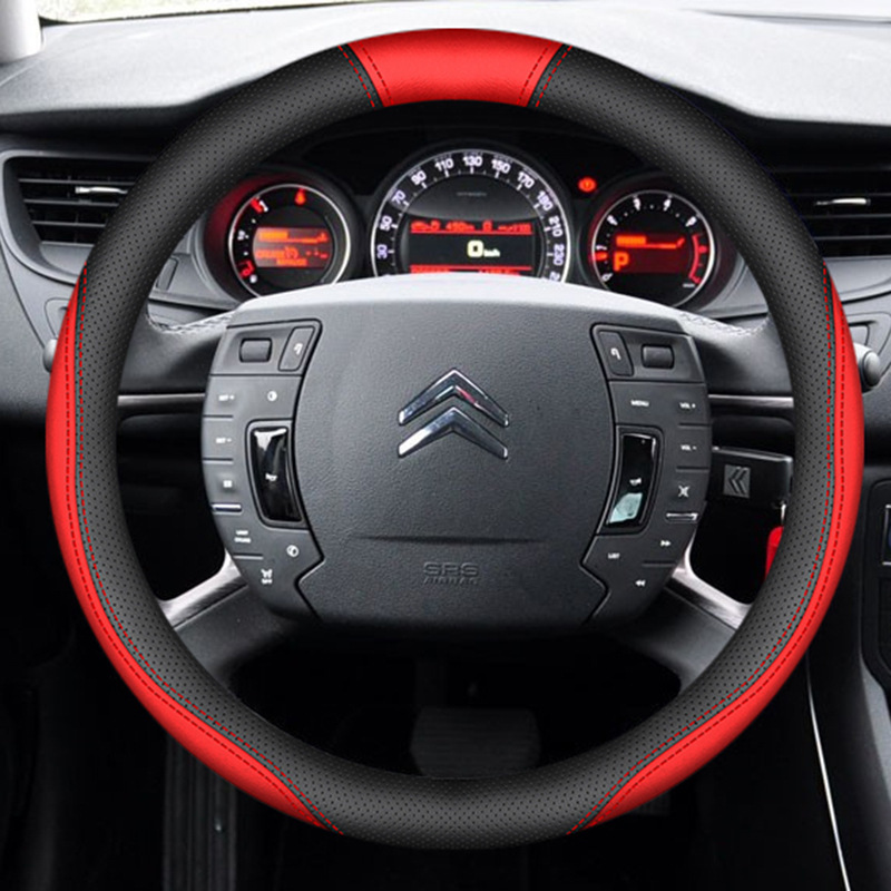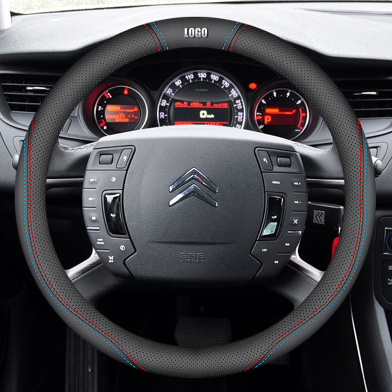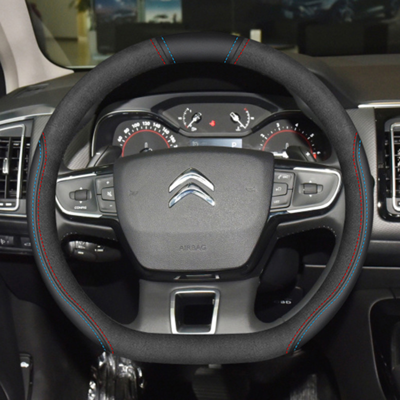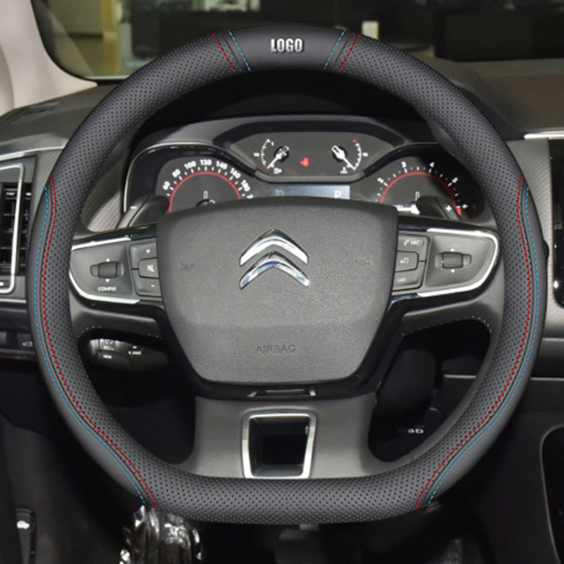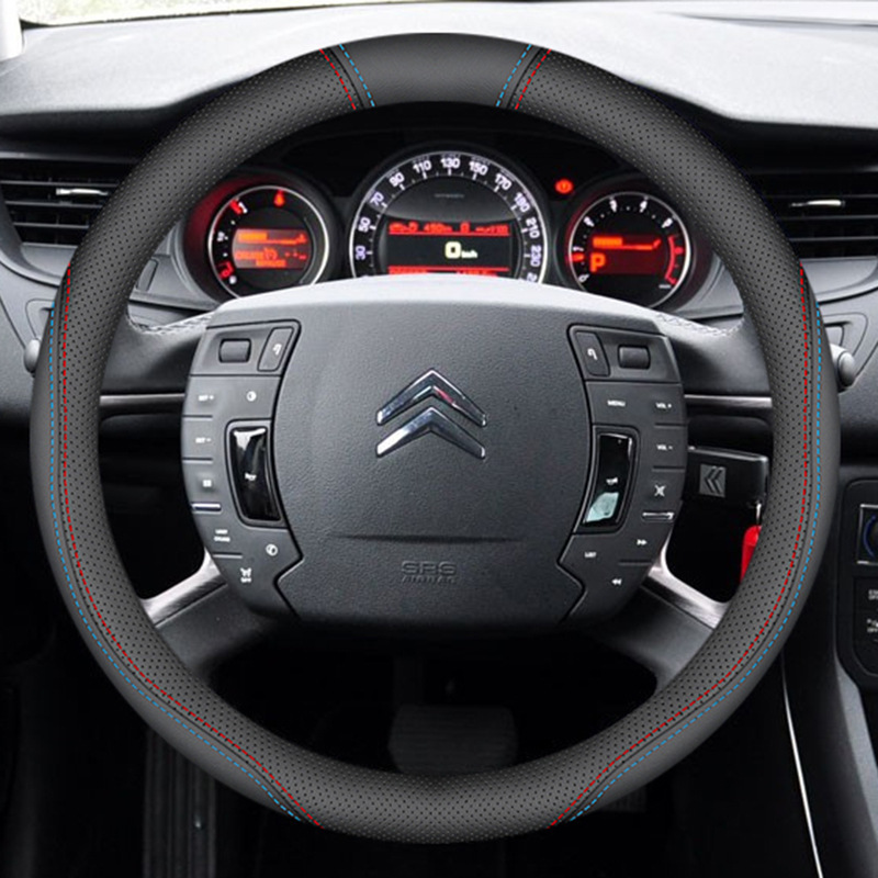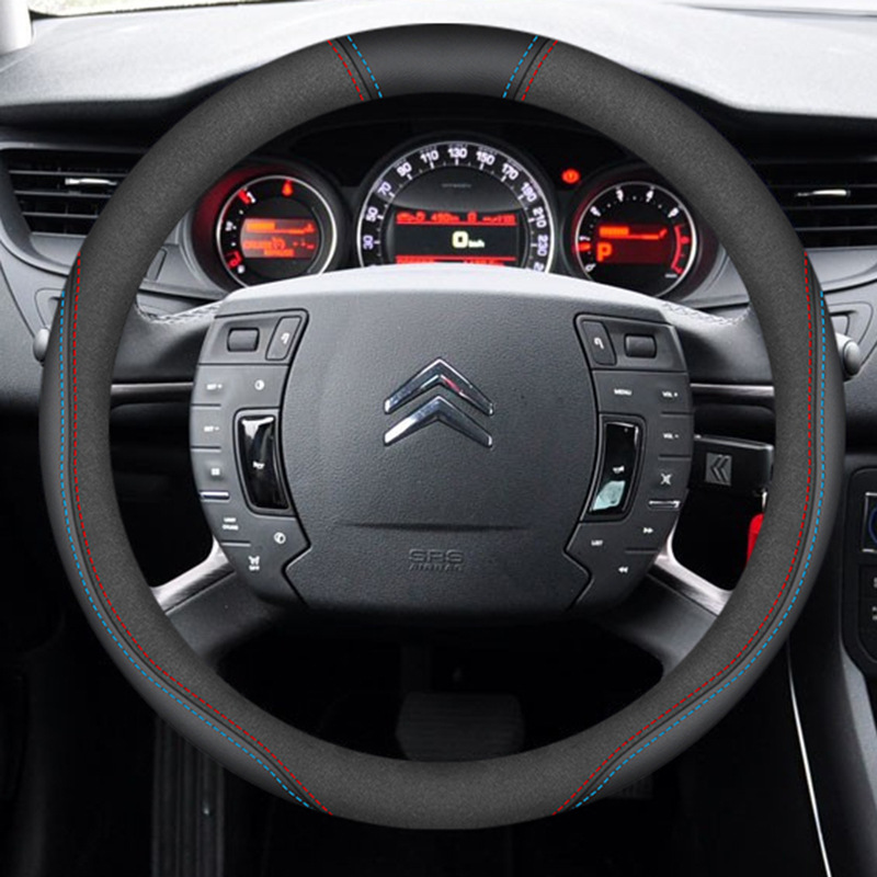시트로엥 10-19 C5 스티어링 휠 커버 나파 가죽 손으로 꿰매는 초박형 특수 수정 미끄럼 방지 핸들 커버에 적합스토어 가기