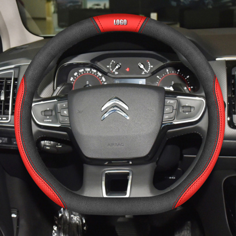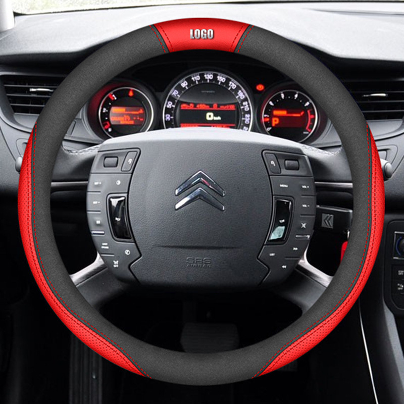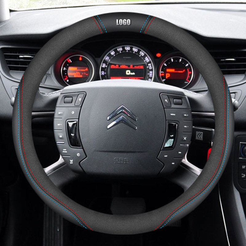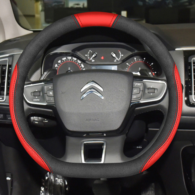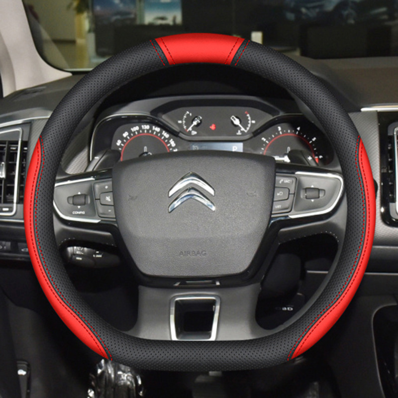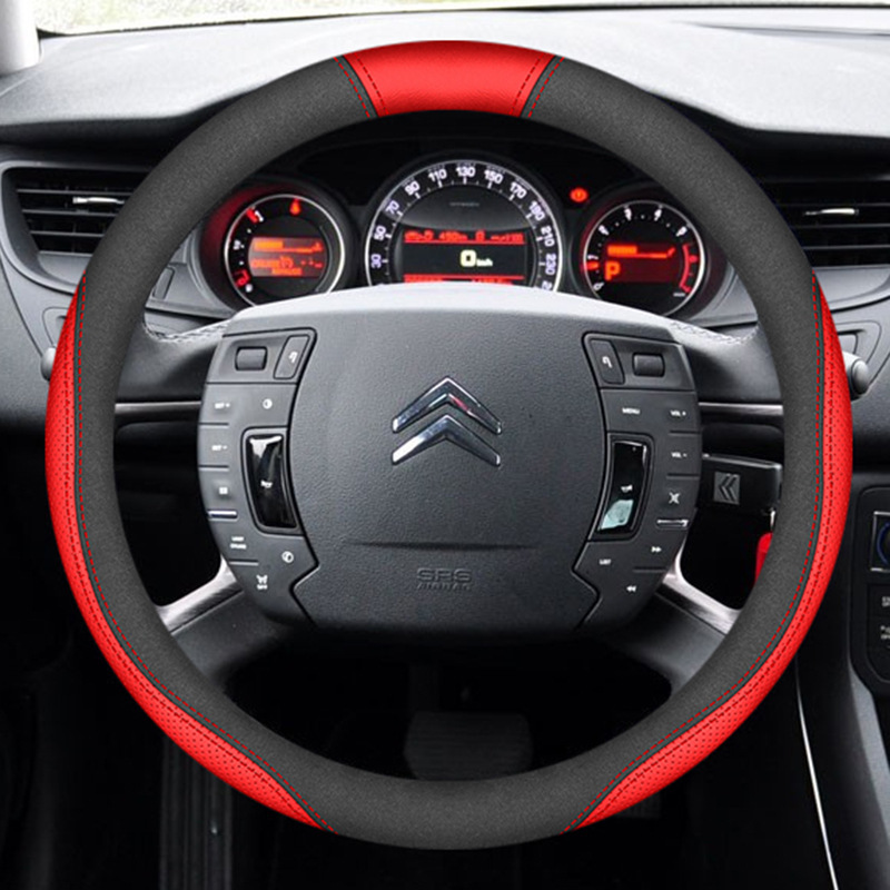 시트로엥 10-19 C5 스티어링 휠 커버 나파 가죽 손으로 꿰매는 초박형 특수 수정 미끄럼 방지 핸들 커버에 적합스토어 가기