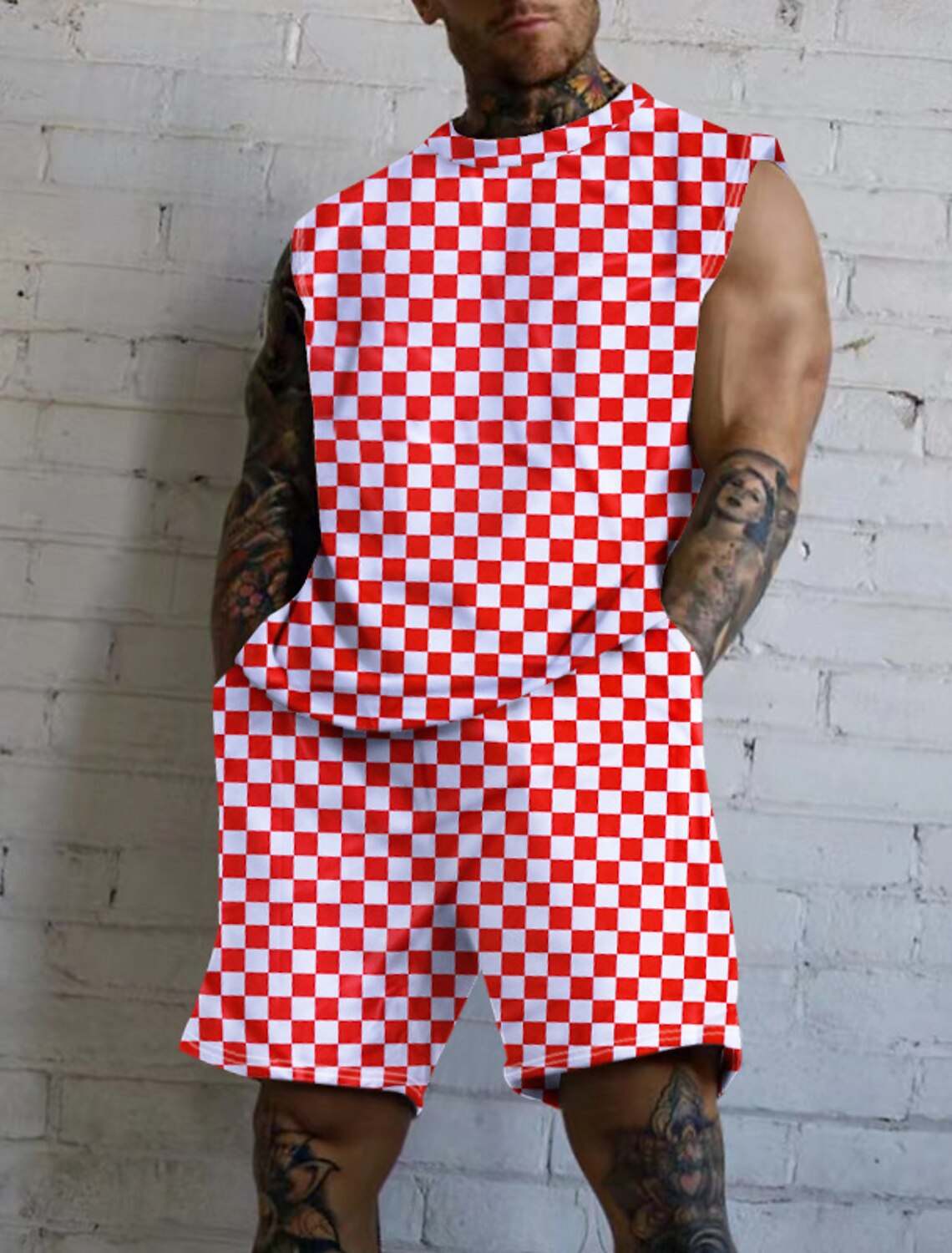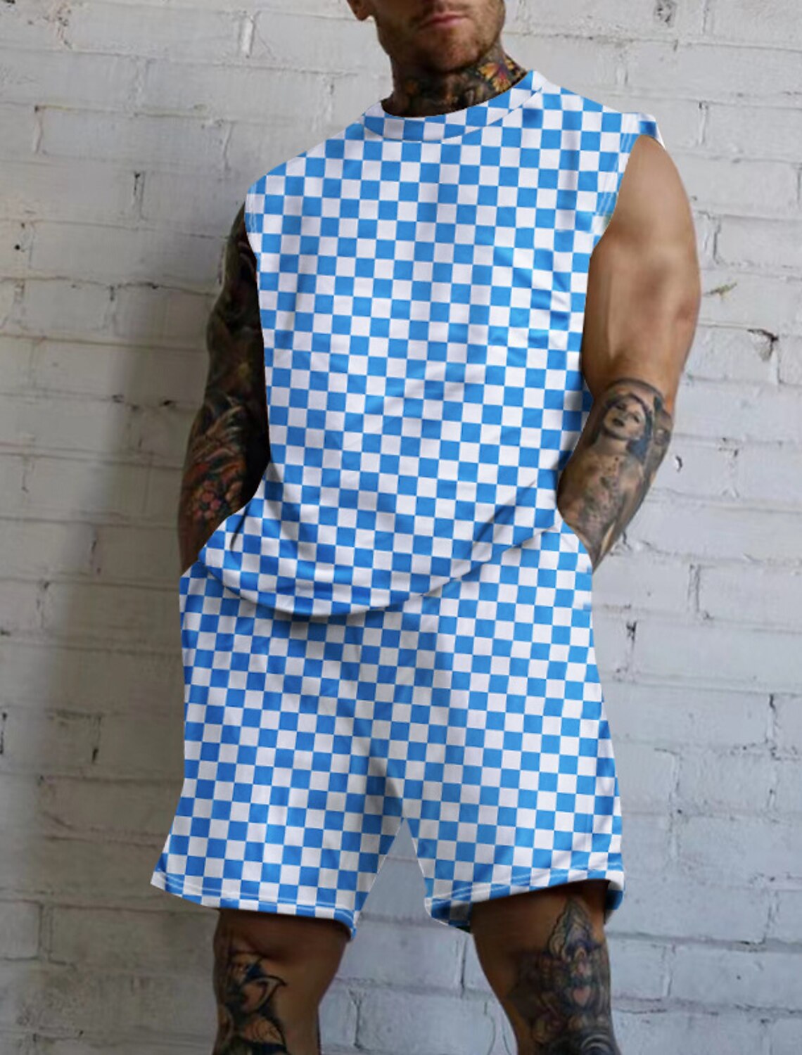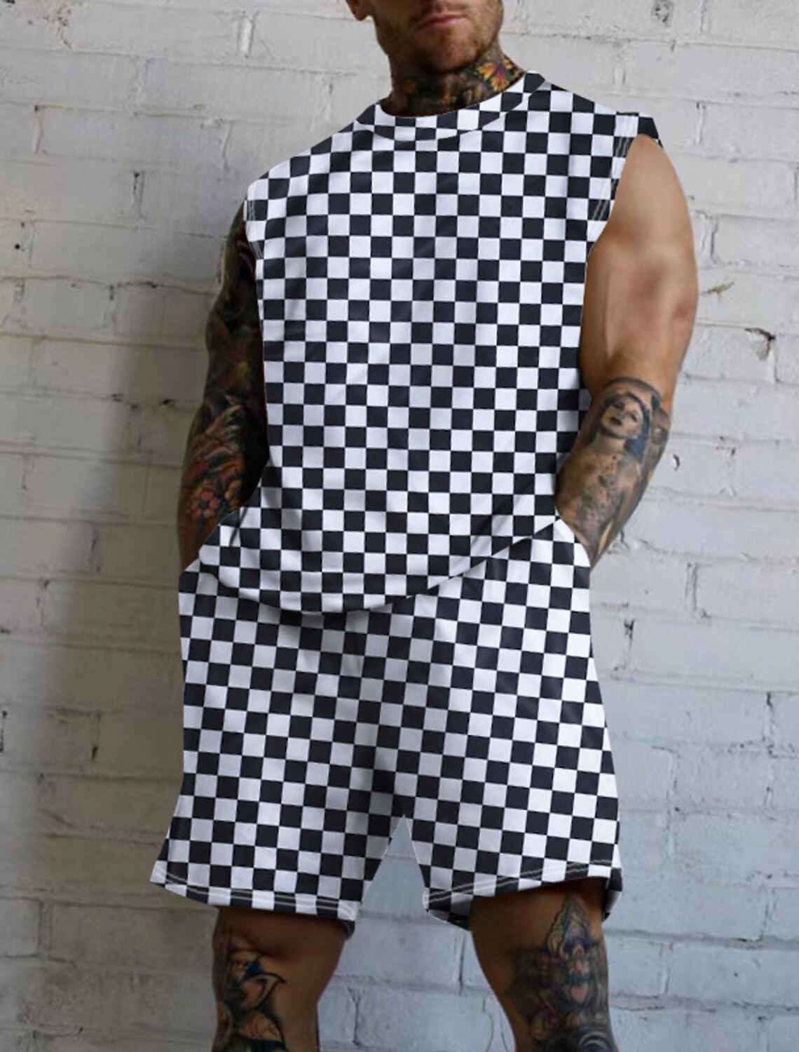 디자인 질감 줄무늬 2024 여름 얇은 남성 조끼 반바지 캐주얼 통기성 세트 MG2 MA1