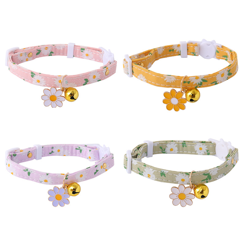 국경 간 아마존 애완 동물 칼라 새끼 고양이 개 종 안전 버클 목걸이 TEMU 귀여운 보석 꽃 신선한