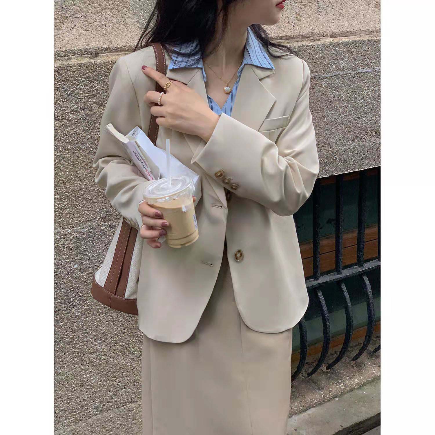 봄 가을 여성용 짧은 슬림핏 정장 재킷, 캐주얼 스타일, 출퇴근룩스토어 가기