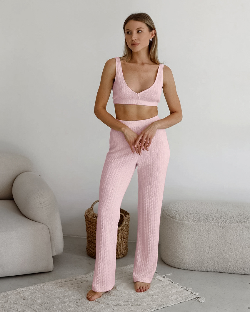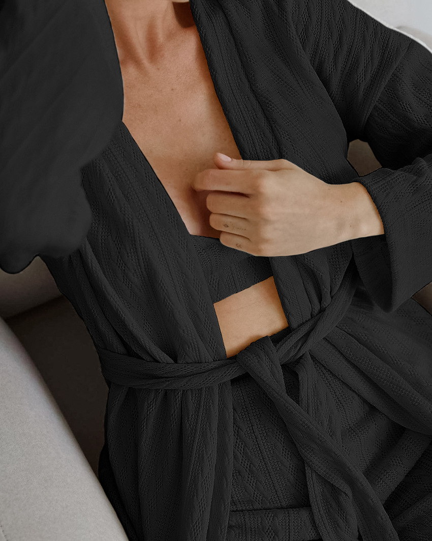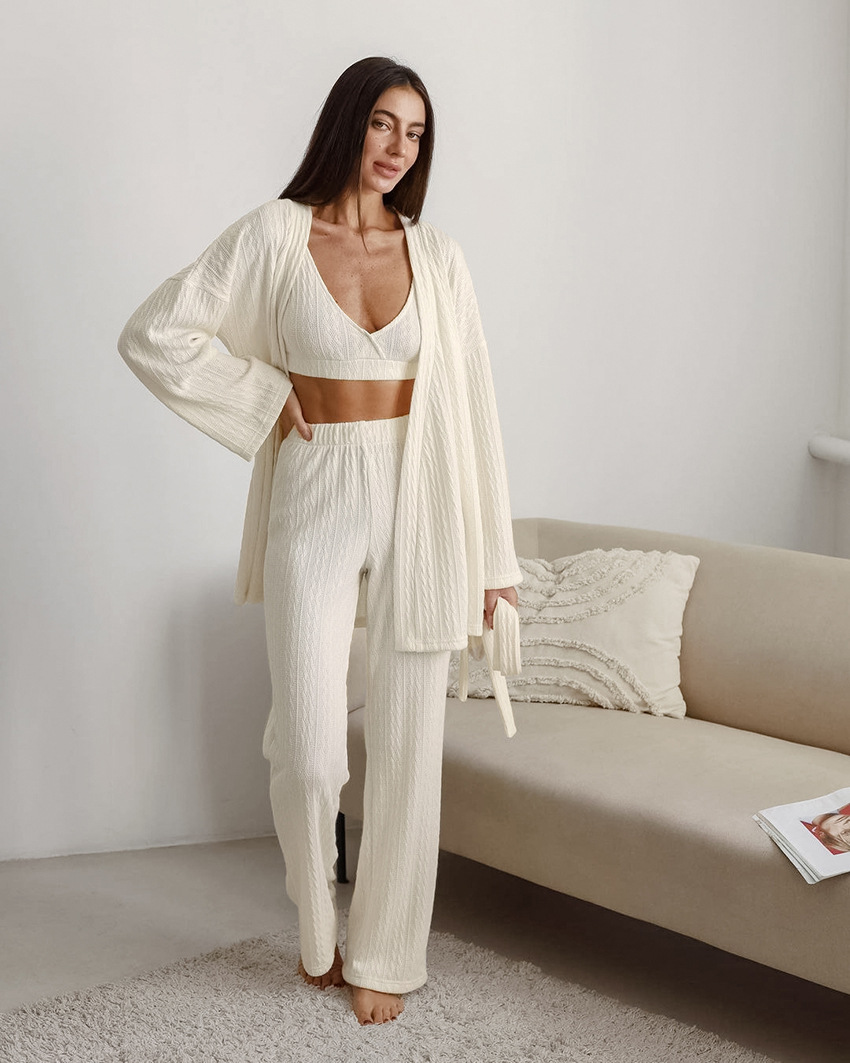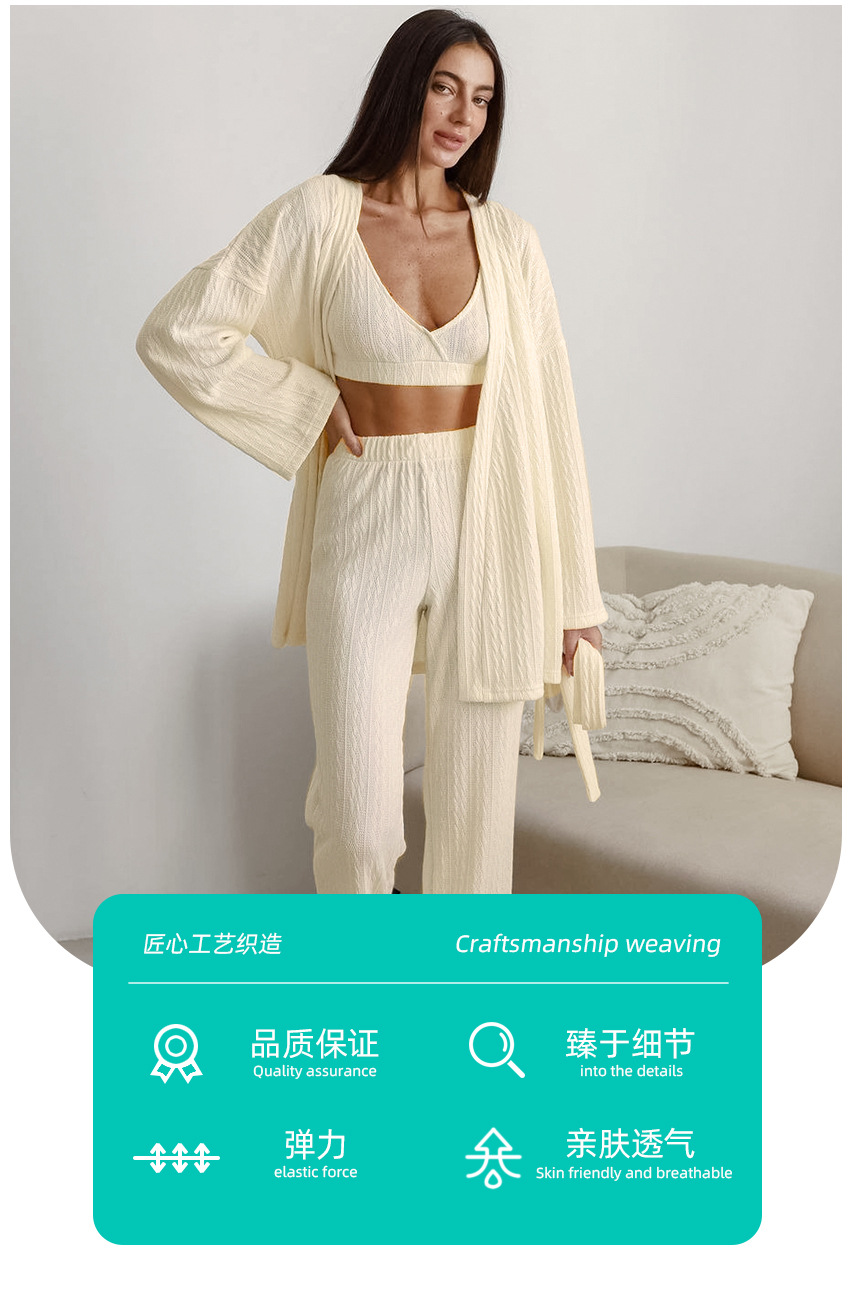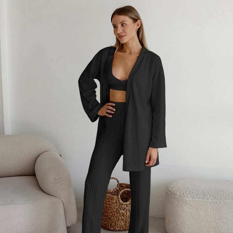 가을 유럽과 미국의 긴팔 니트 따뜻한 파자마 느슨한 바지 속옷 3 피스 세트 편안한 캐주얼 여성 홈 옷