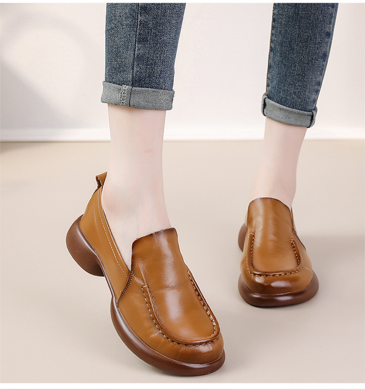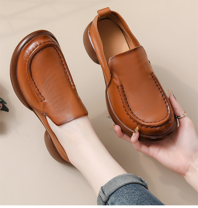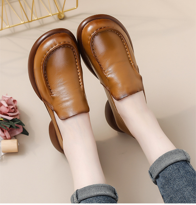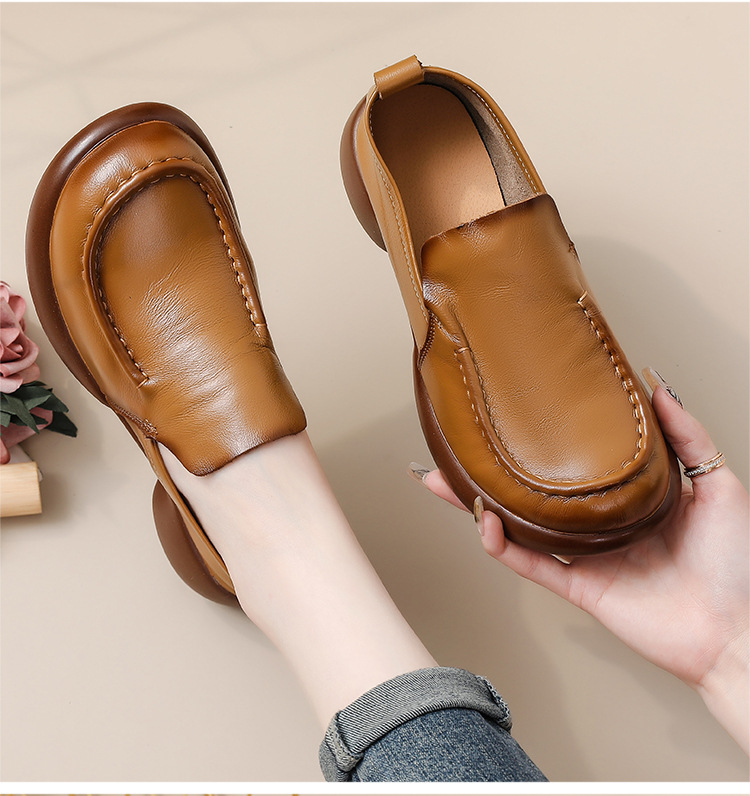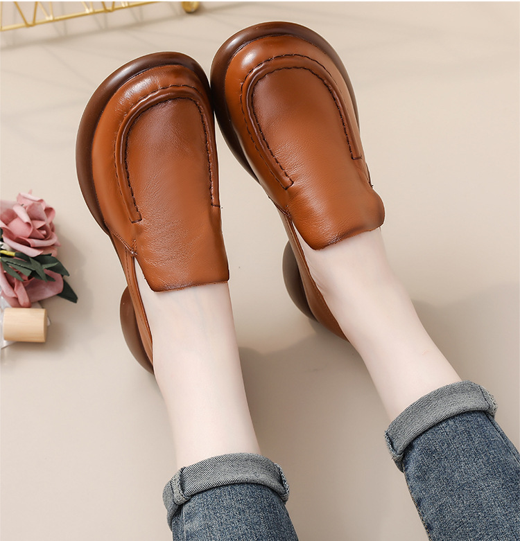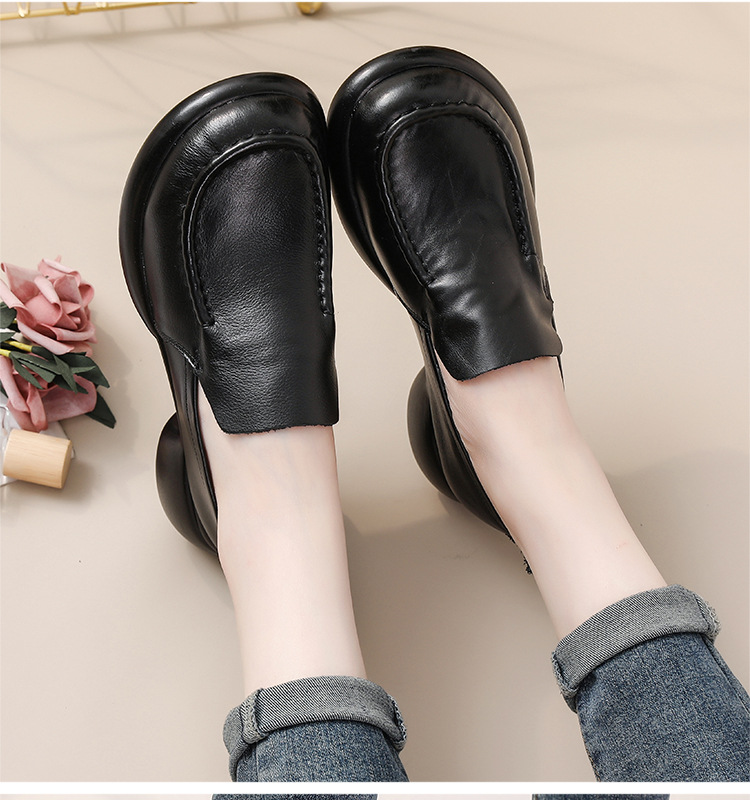 진짜 소가죽 2024 가을 신발 하이힐 통굽 엄마 신발 두꺼운 밑창 로퍼 여성 신상 영국 스타일