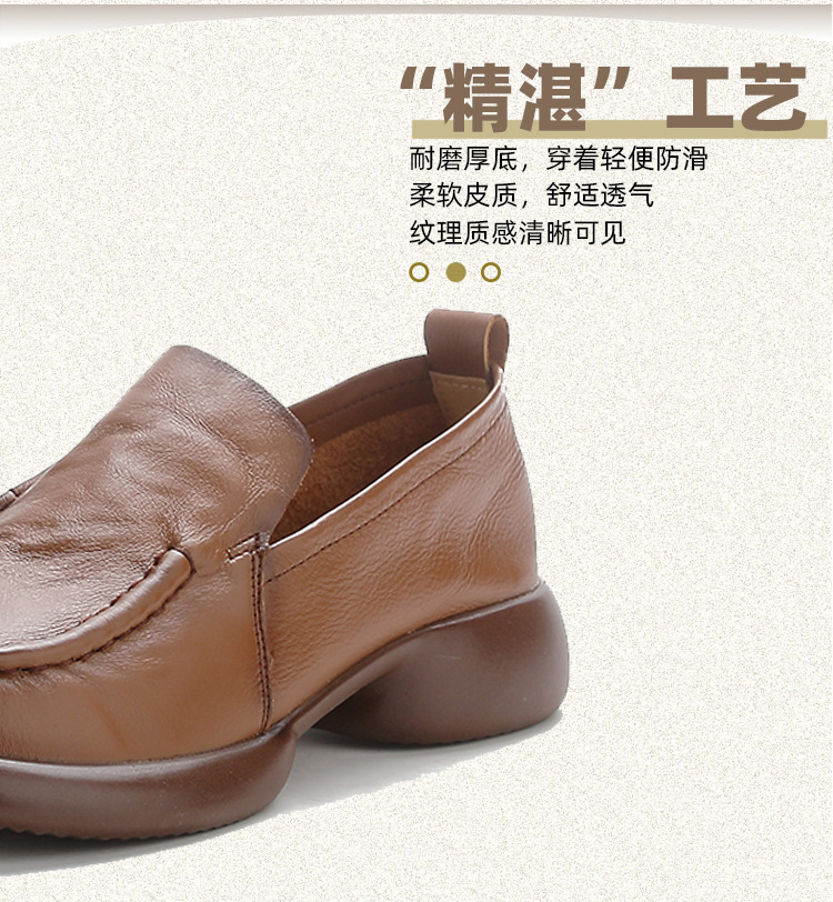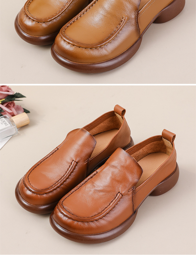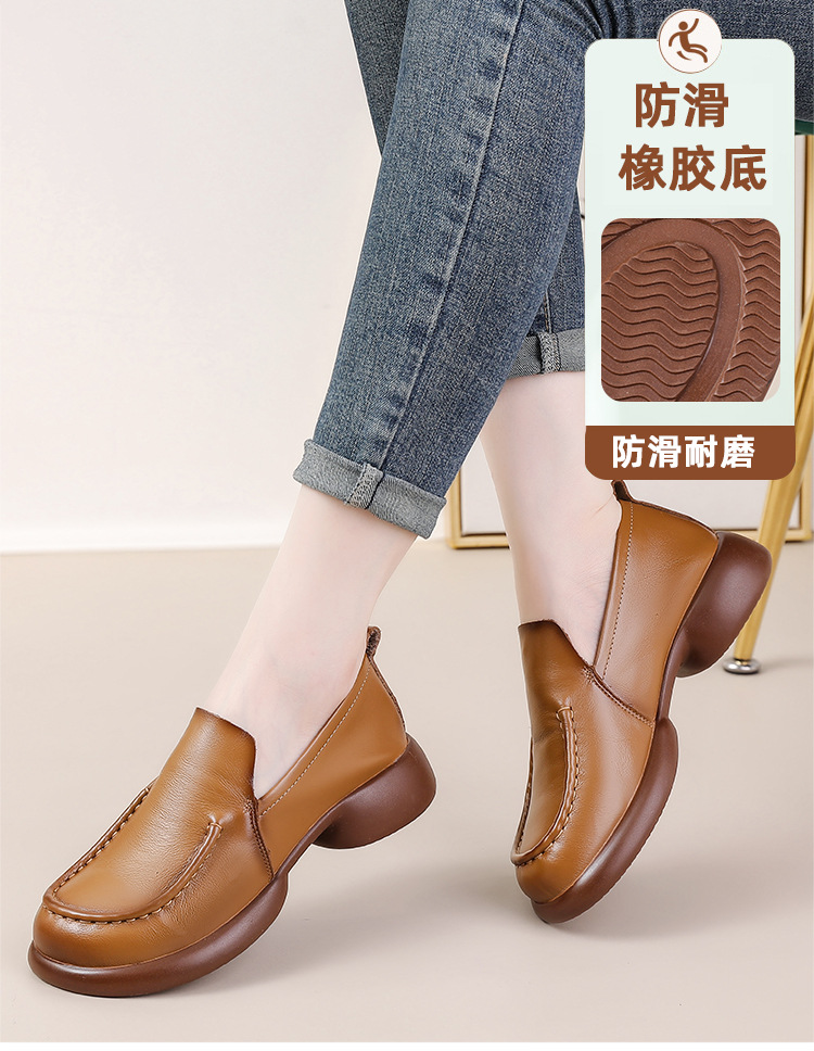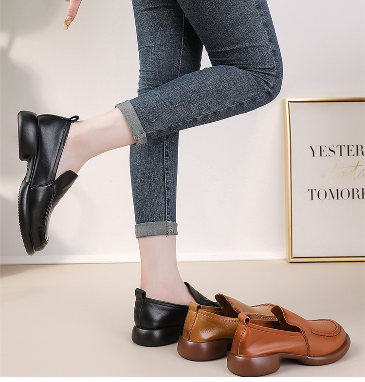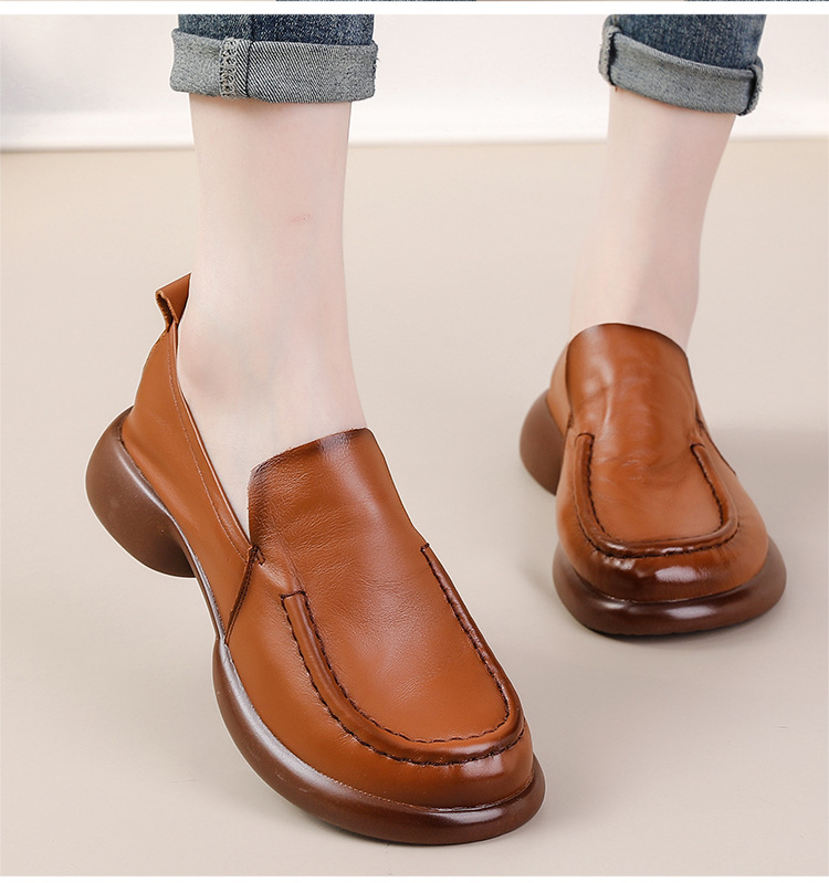 진짜 소가죽 2024 가을 신발 하이힐 통굽 엄마 신발 두꺼운 밑창 로퍼 여성 신상 영국 스타일
