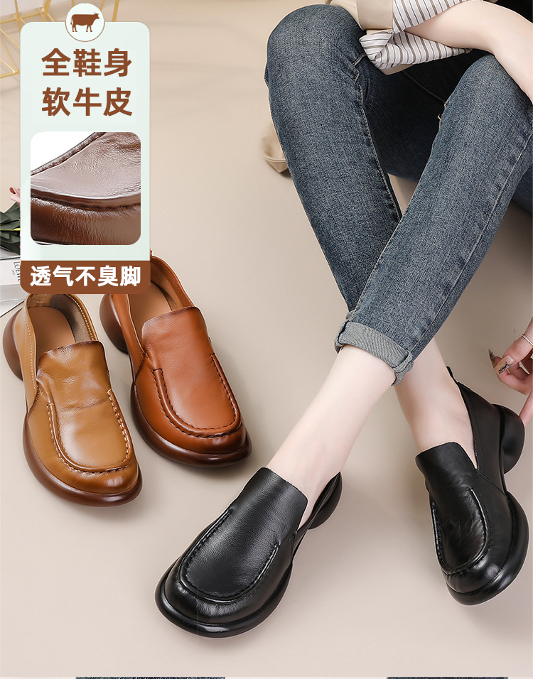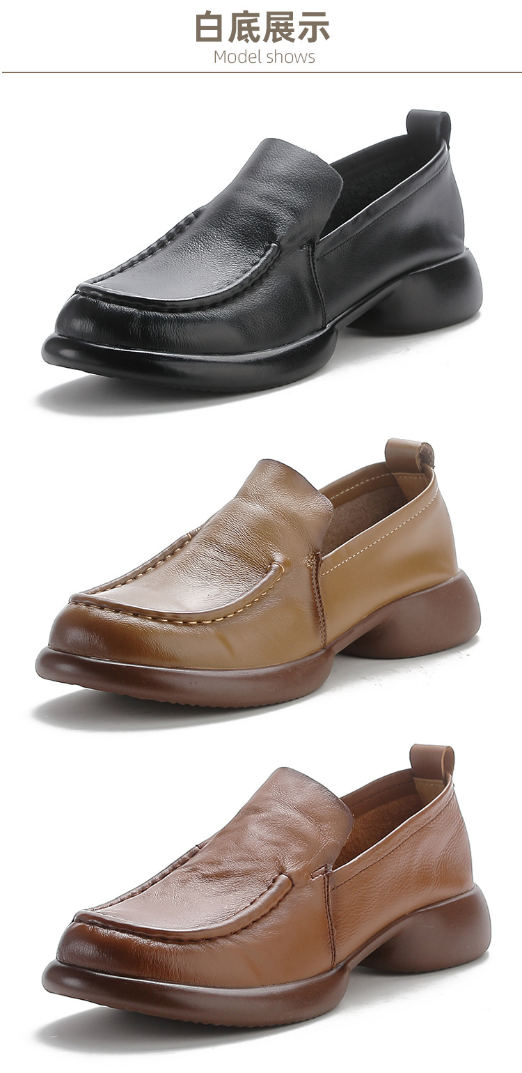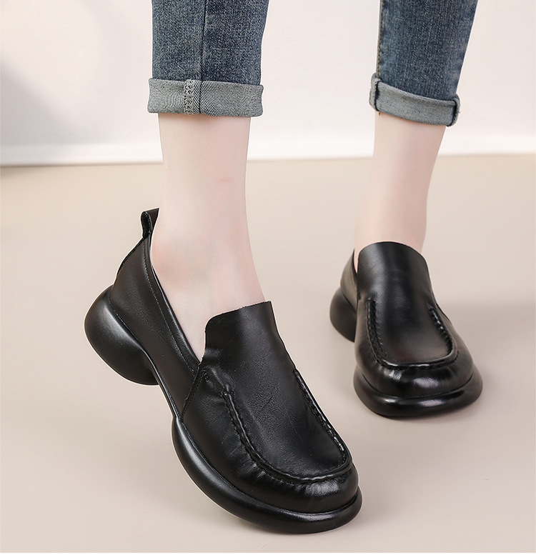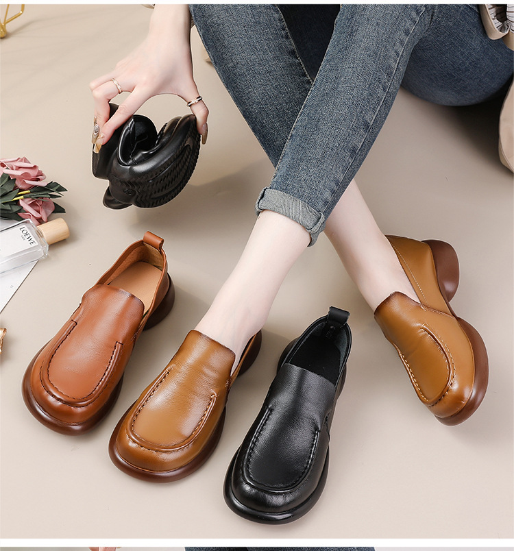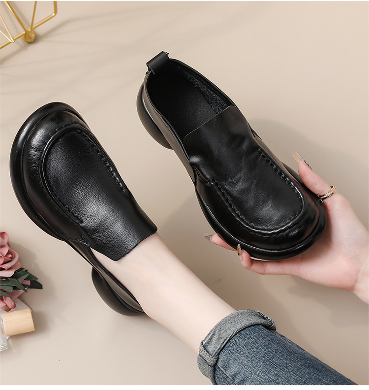 진짜 소가죽 2024 가을 신발 하이힐 통굽 엄마 신발 두꺼운 밑창 로퍼 여성 신상 영국 스타일스토어 가기