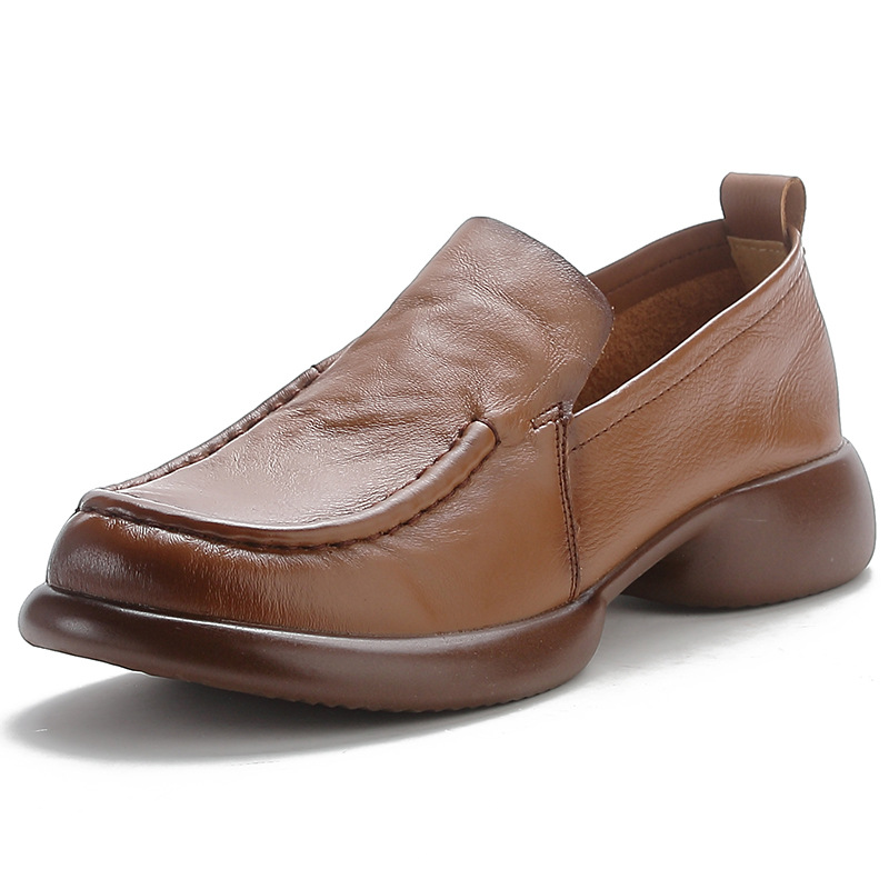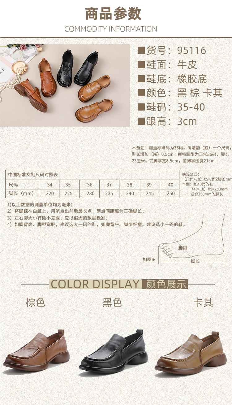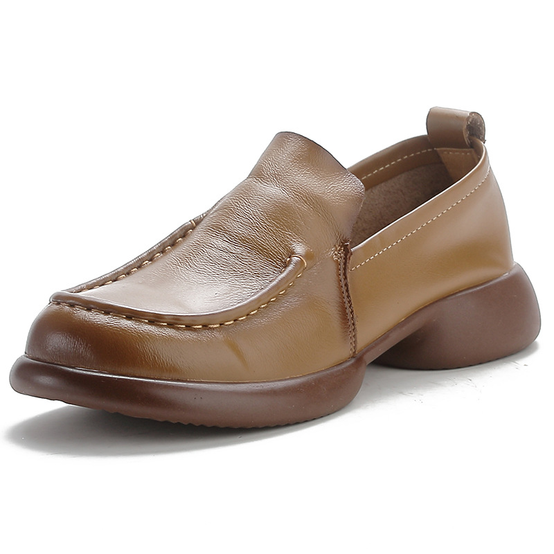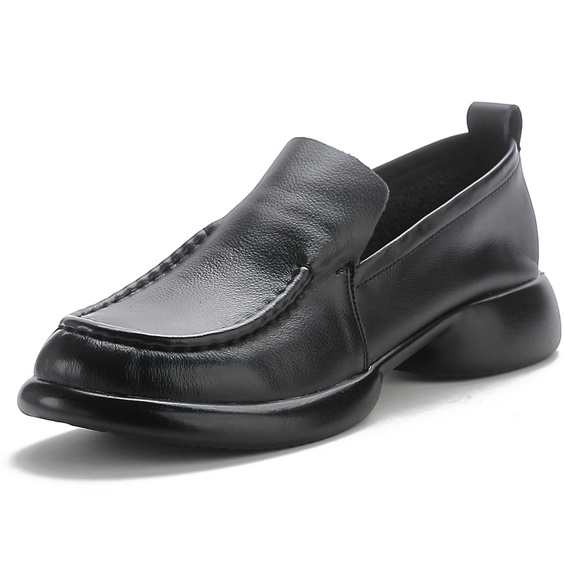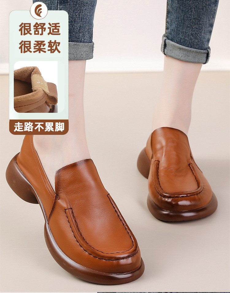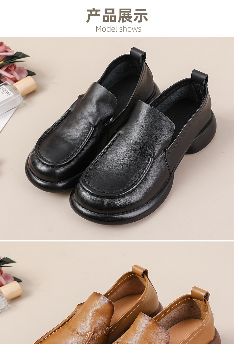 진짜 소가죽 2024 가을 신발 하이힐 통굽 엄마 신발 두꺼운 밑창 로퍼 여성 신상 영국 스타일스토어 가기
