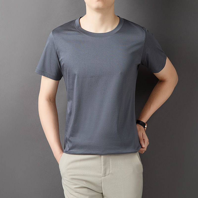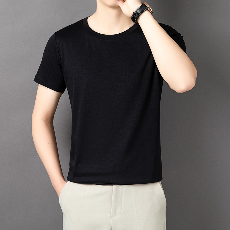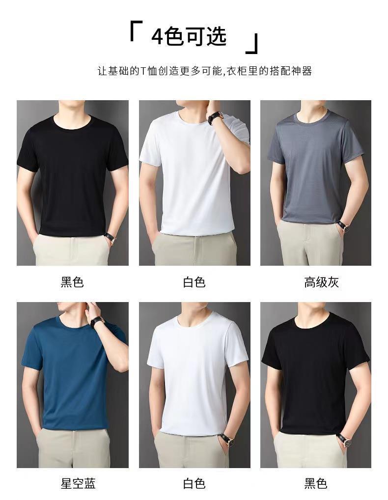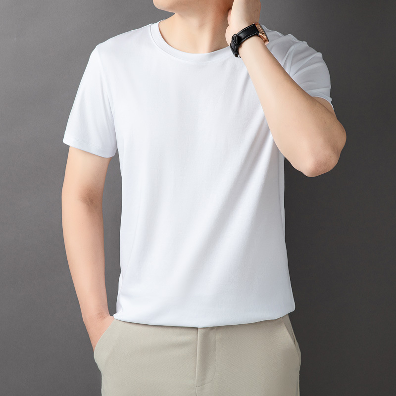 순면 짧은 소매 라운드 넥 화이트 티셔츠 남성 여름 얇은 탑 유행베이스 셔츠
