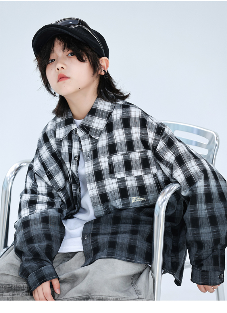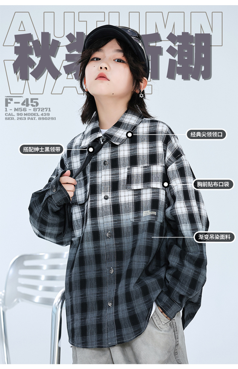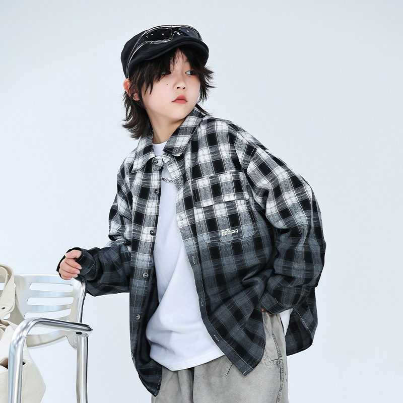 가을 중다 소년 셔츠 어린이 소년 봄 및 가을 긴 소매 체크 무늬 셔츠 옷깃 최고 캐주얼 손수