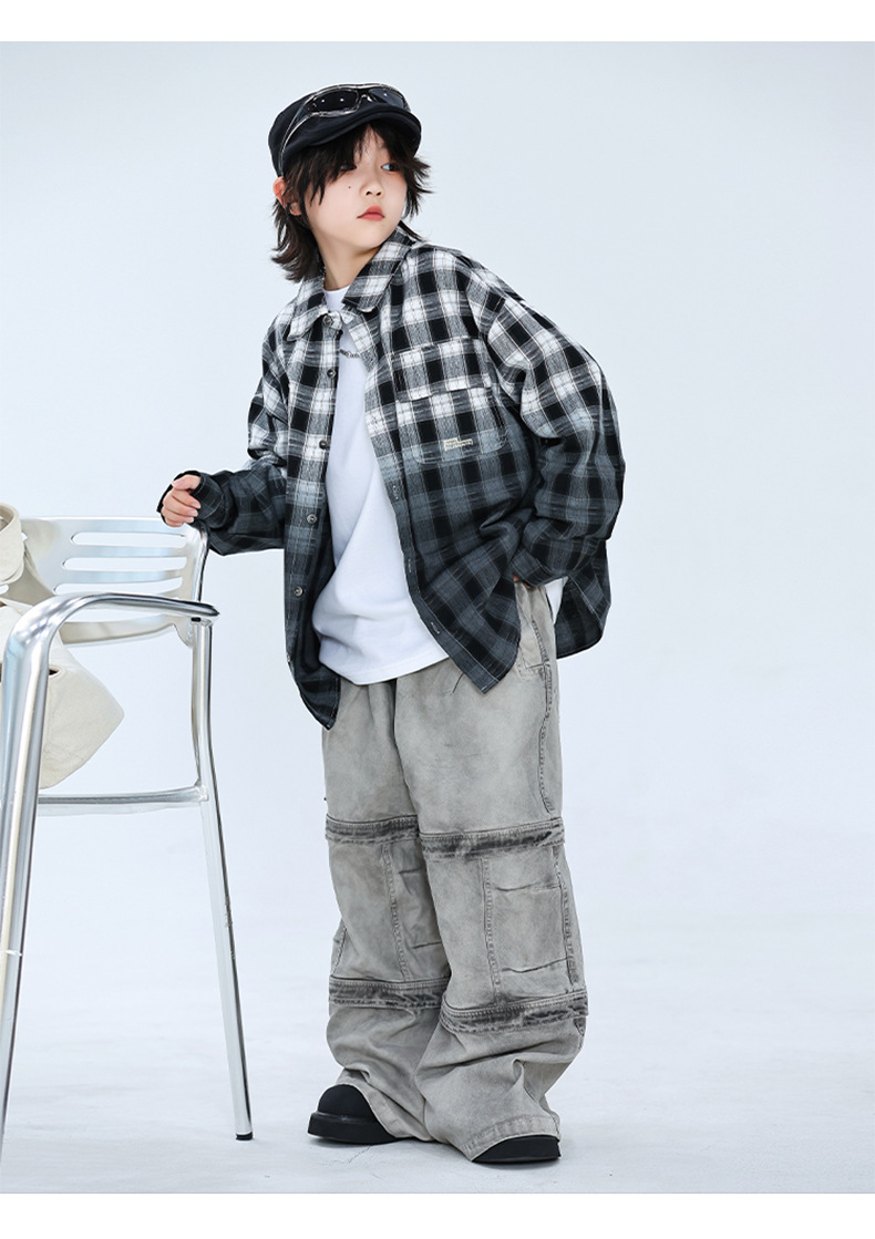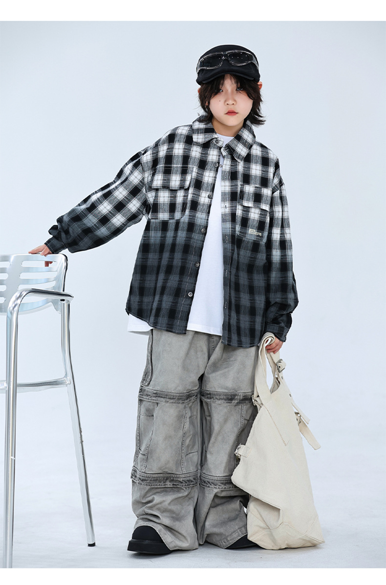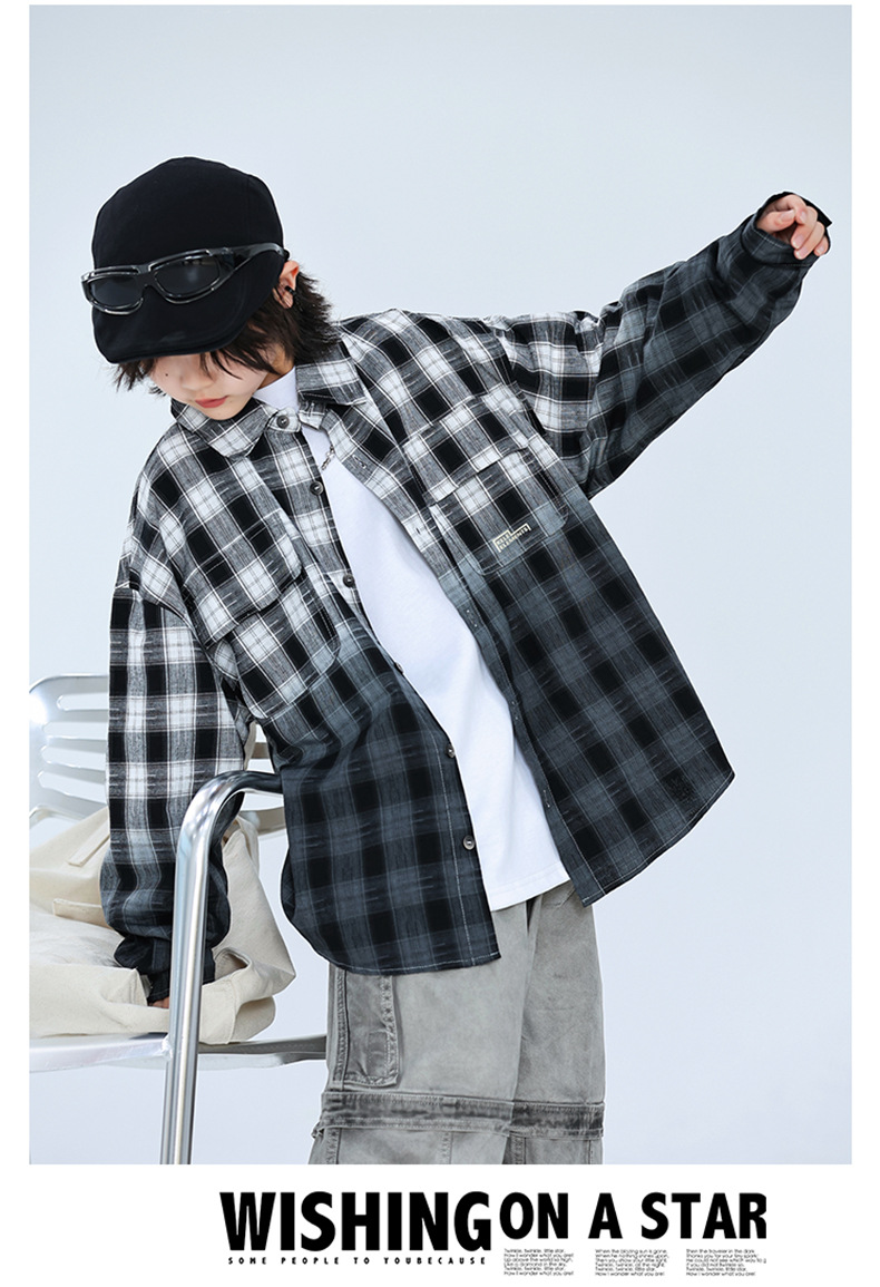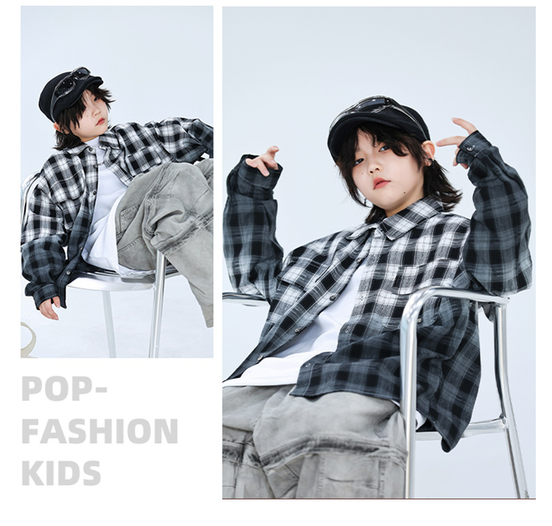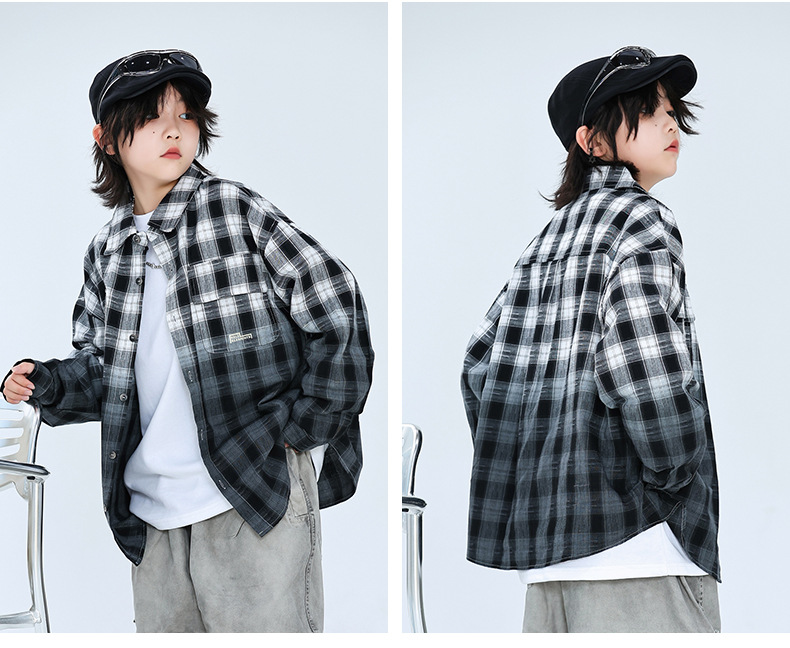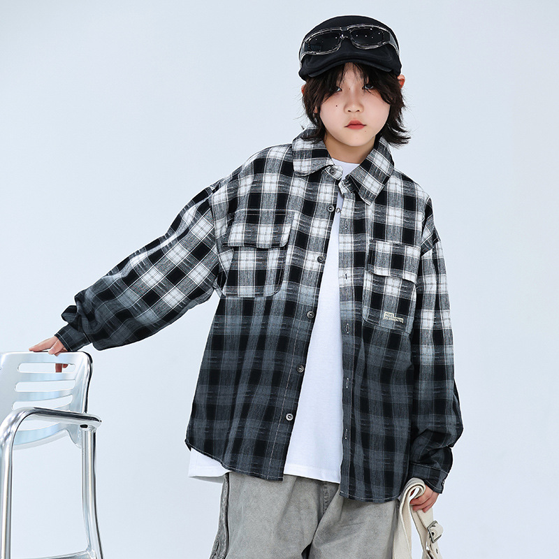 가을 중다 소년 셔츠 어린이 소년 봄 및 가을 긴 소매 체크 무늬 셔츠 옷깃 최고 캐주얼 손수스토어 가기