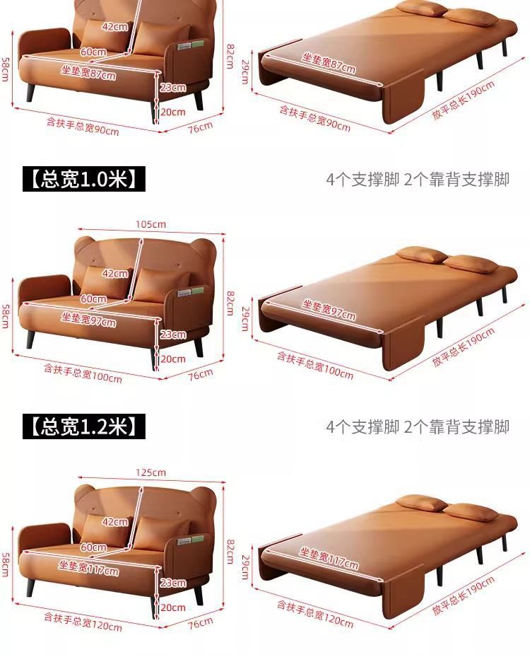 소파베드 접이식 2026년 신형 소형 아파트 소파 발코니 다기능 게으름뱅이 어린이용 접이식 침대