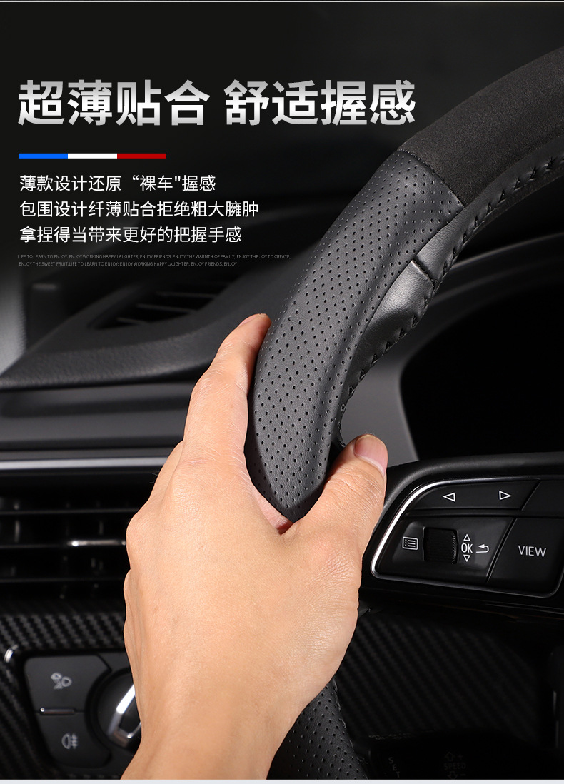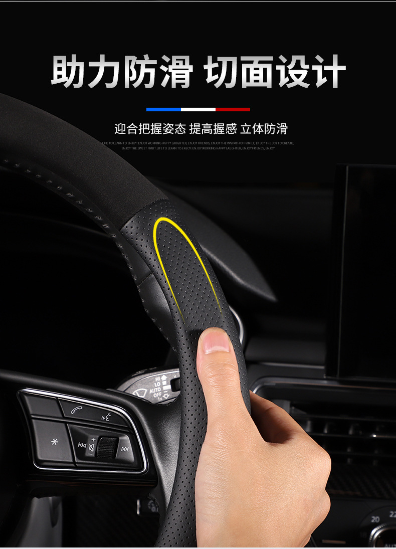[3D 인쇄 문자 라벨] 탄소 섬유 스웨이드 스티어링 휠 커버 사계절 보편적 인 땀 흡수성 미끄럼 방지 멀티 카 핸들 커버