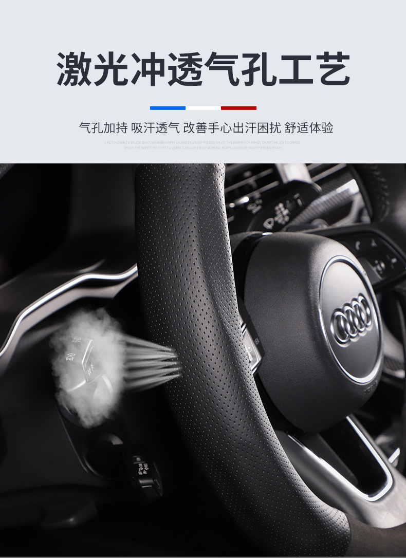 • 라운드 스웨이드 + 탄소 섬유 가죽 + 아우디 로고