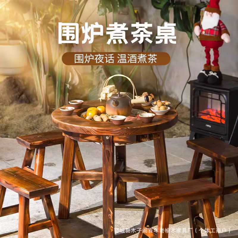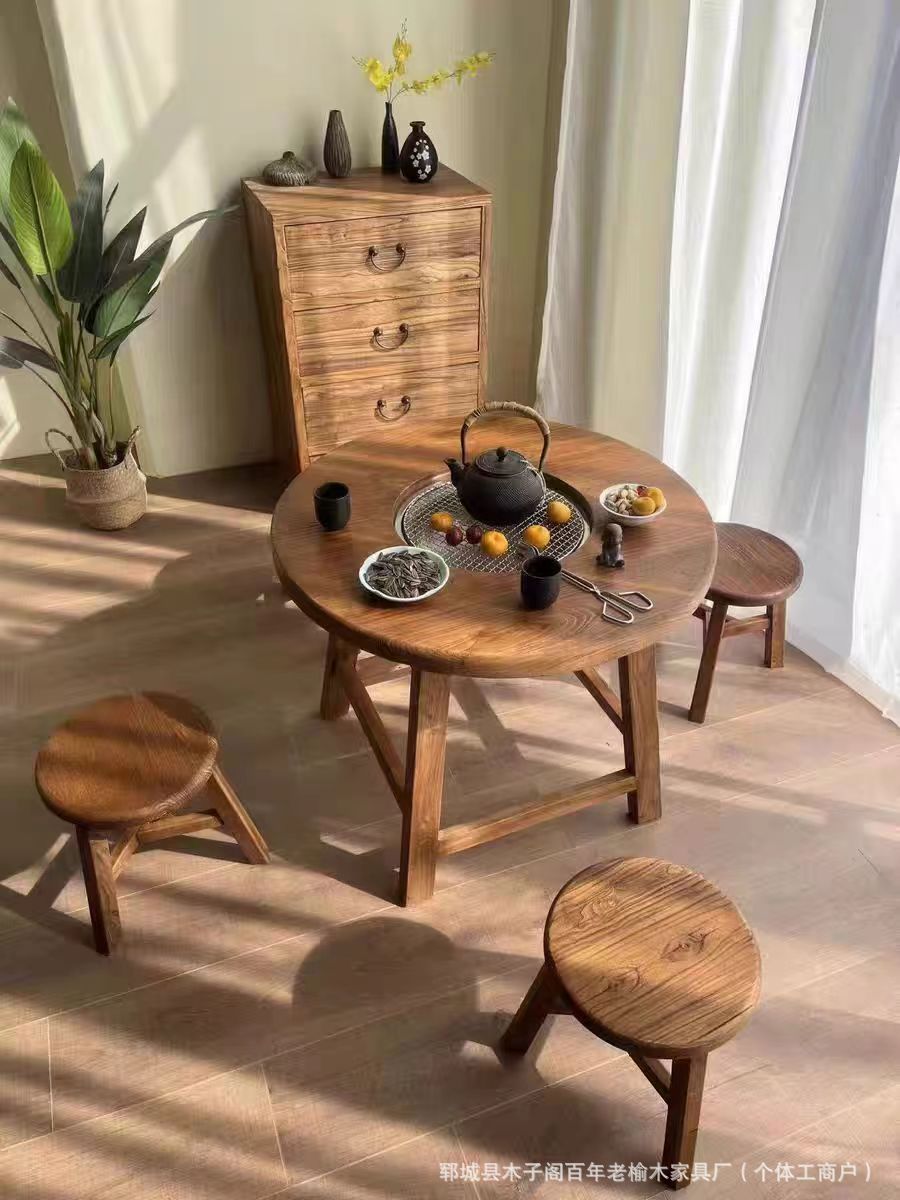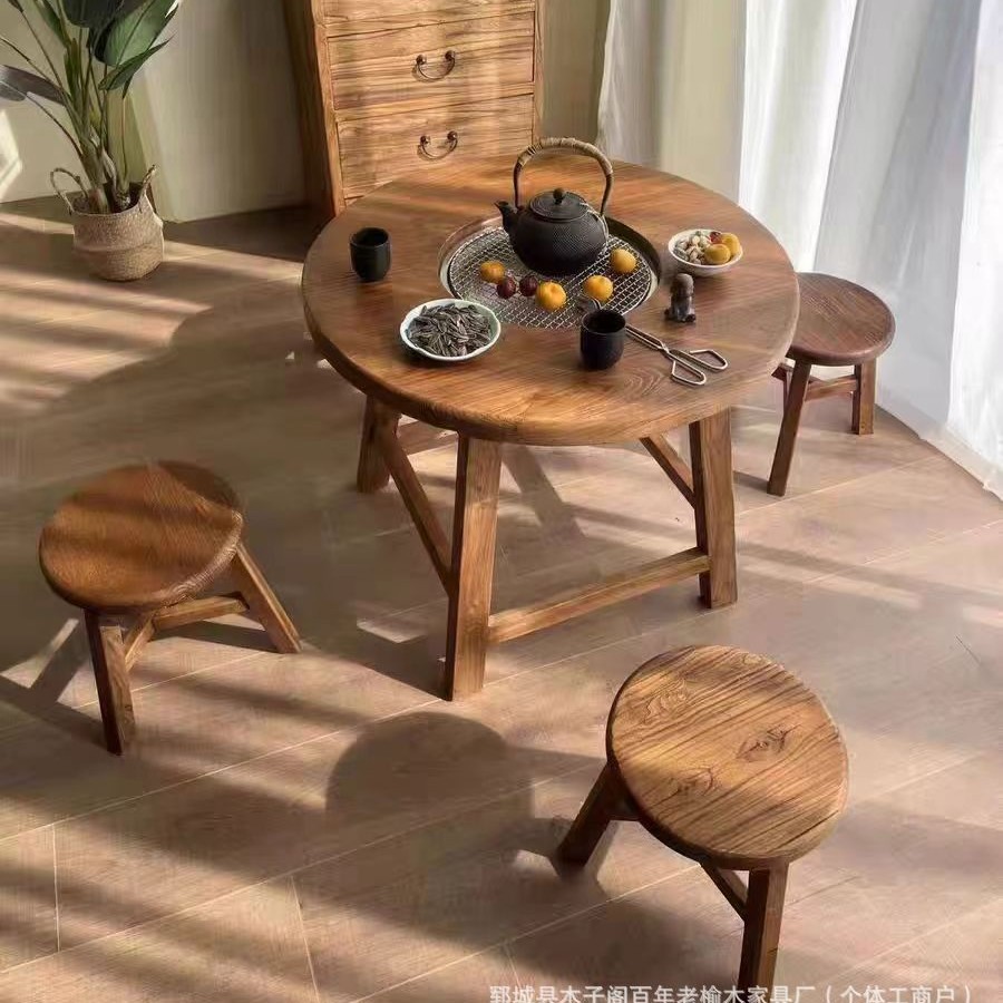 중국 스타일의 오래된 느릅 나무 용광로 테이블 차 테이블 단단한 나무 홈 코트야드 바베큐 테이블 야외 캠핑 식탁 가구 아이스 티 테이블스토어 가기