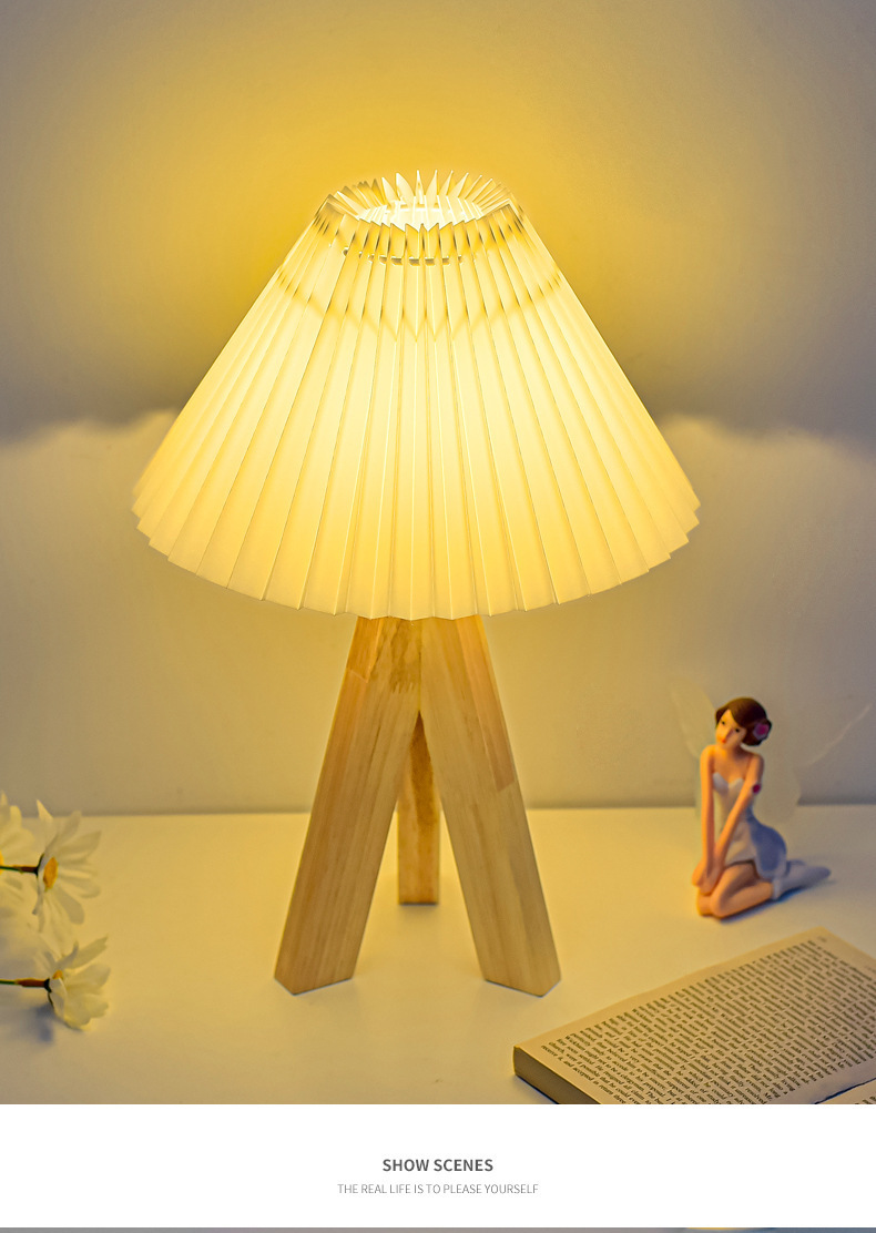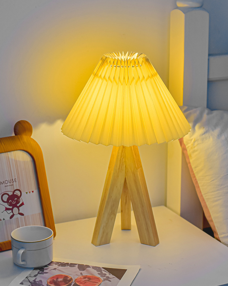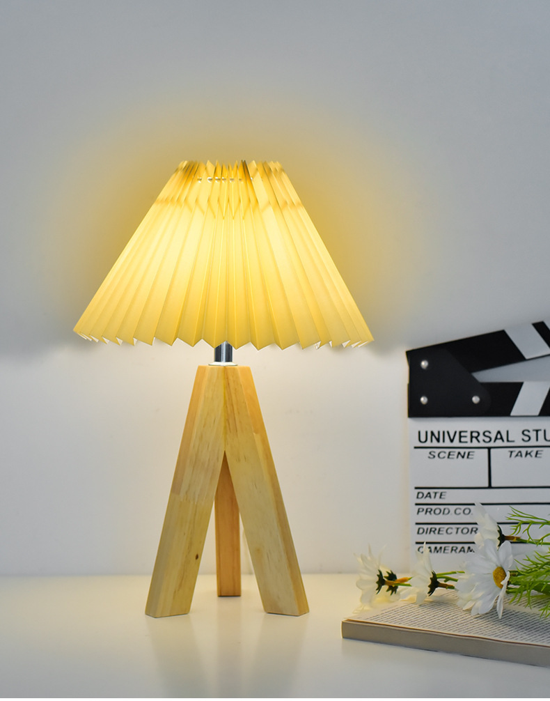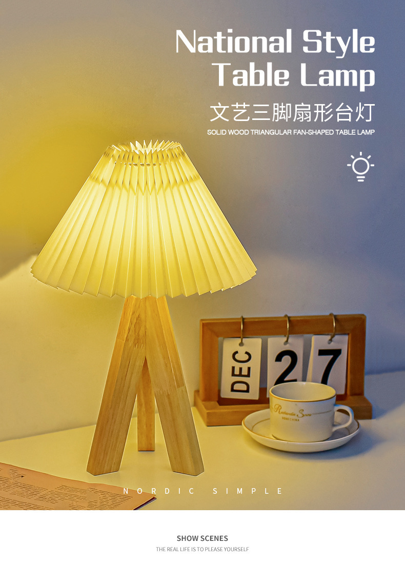 국경 간 노르딕 솔리드 우드 인 나이트 라이트 꽃 주름 테이블 램프 빈티지 장식 침실 침실 램프 LED 대기 램프