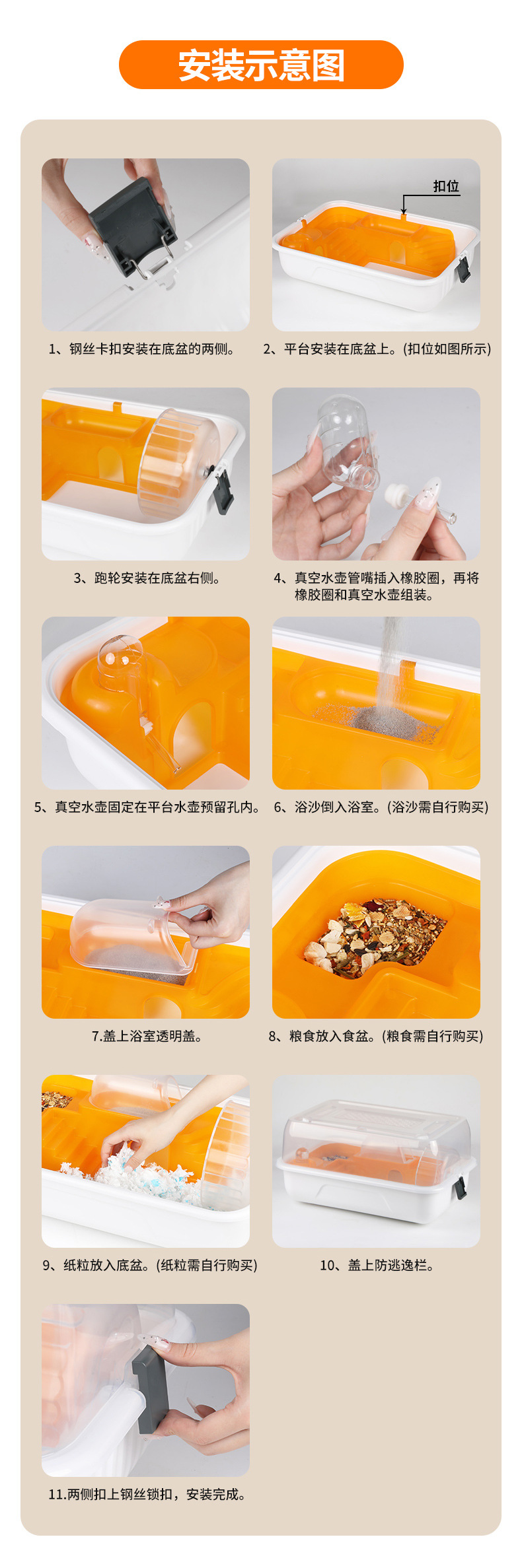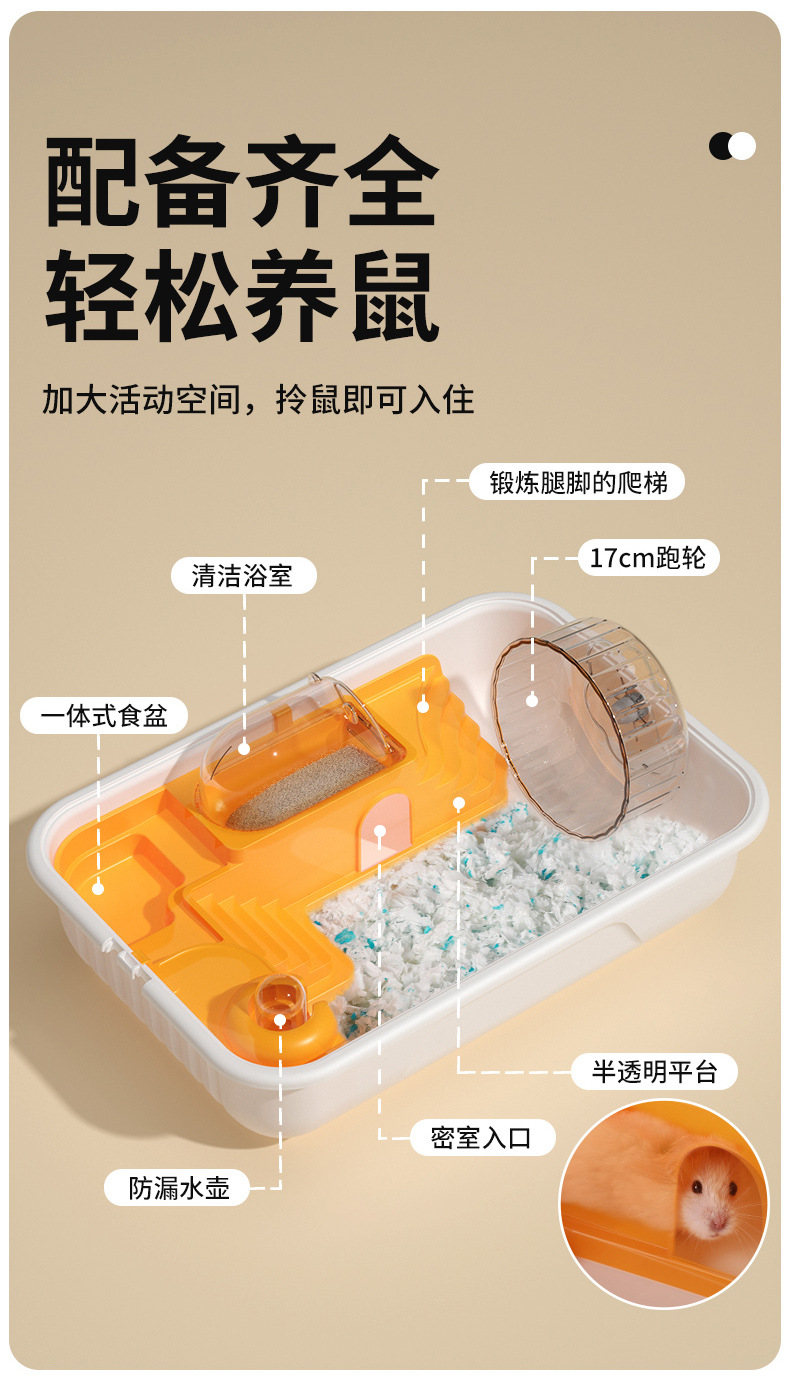 • 더 크고 두꺼운 햄스터 케이지 [회전식 바퀴, 계단, 주전자 및 음식 그릇 포함]