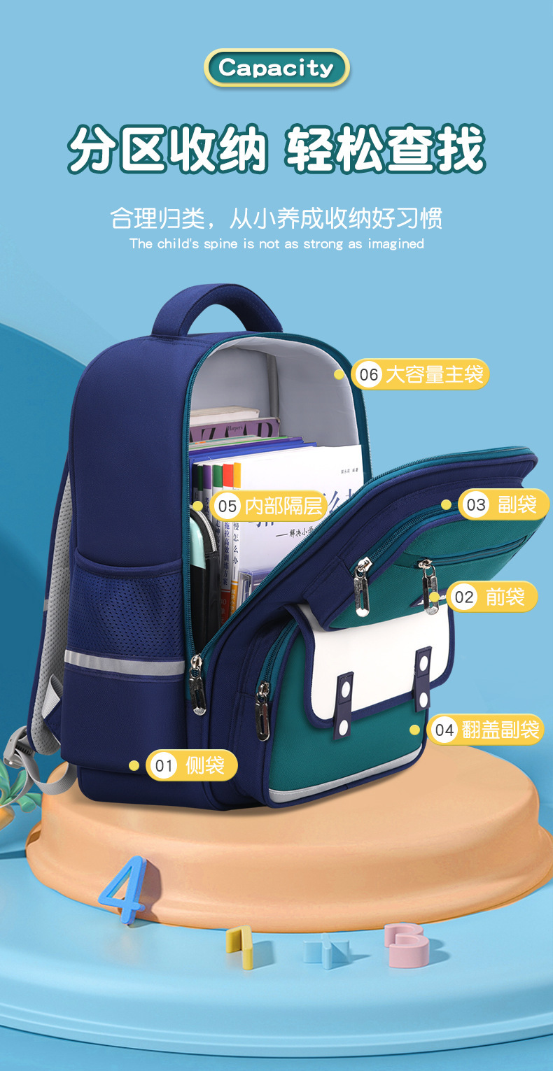 새로운 영국 초등학교 스쿨백 어린이 대용량 1 학년 및 6 학년 경량 배낭 남녀 릿지 보호 배낭