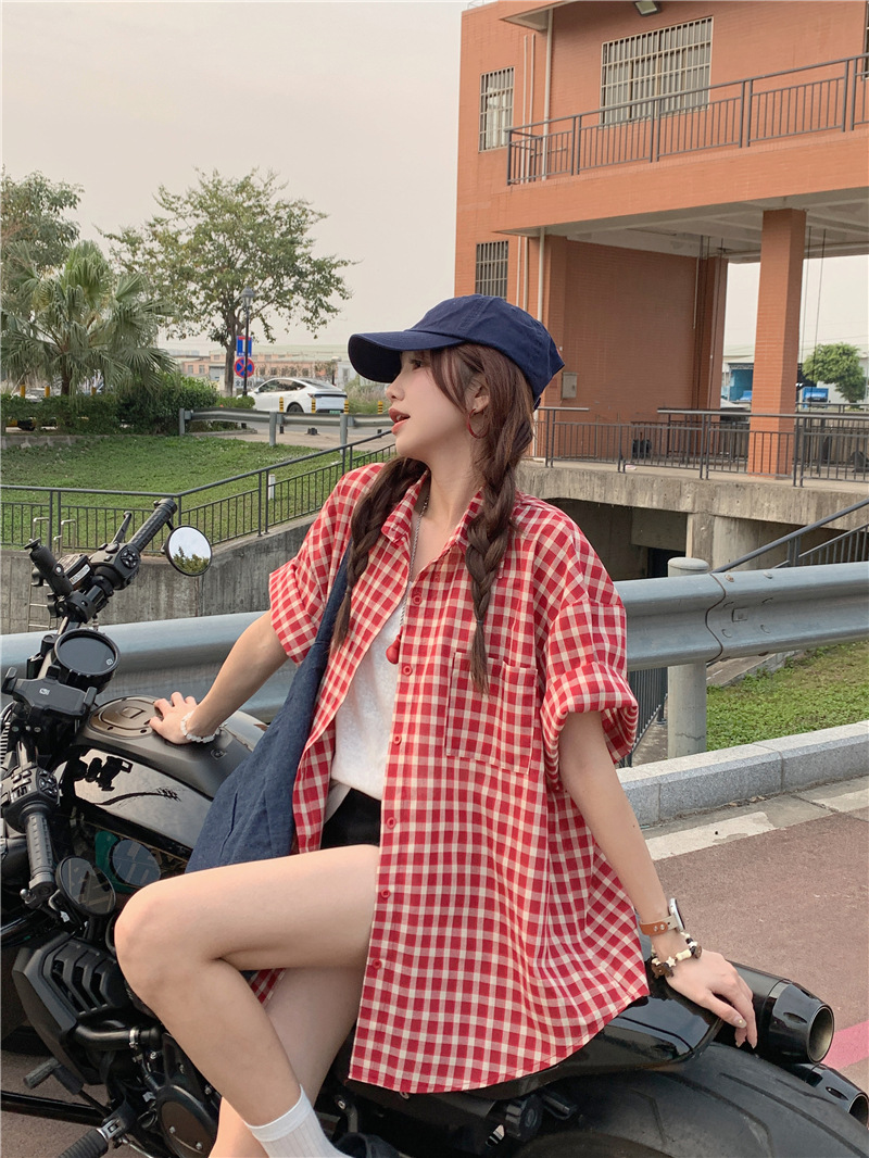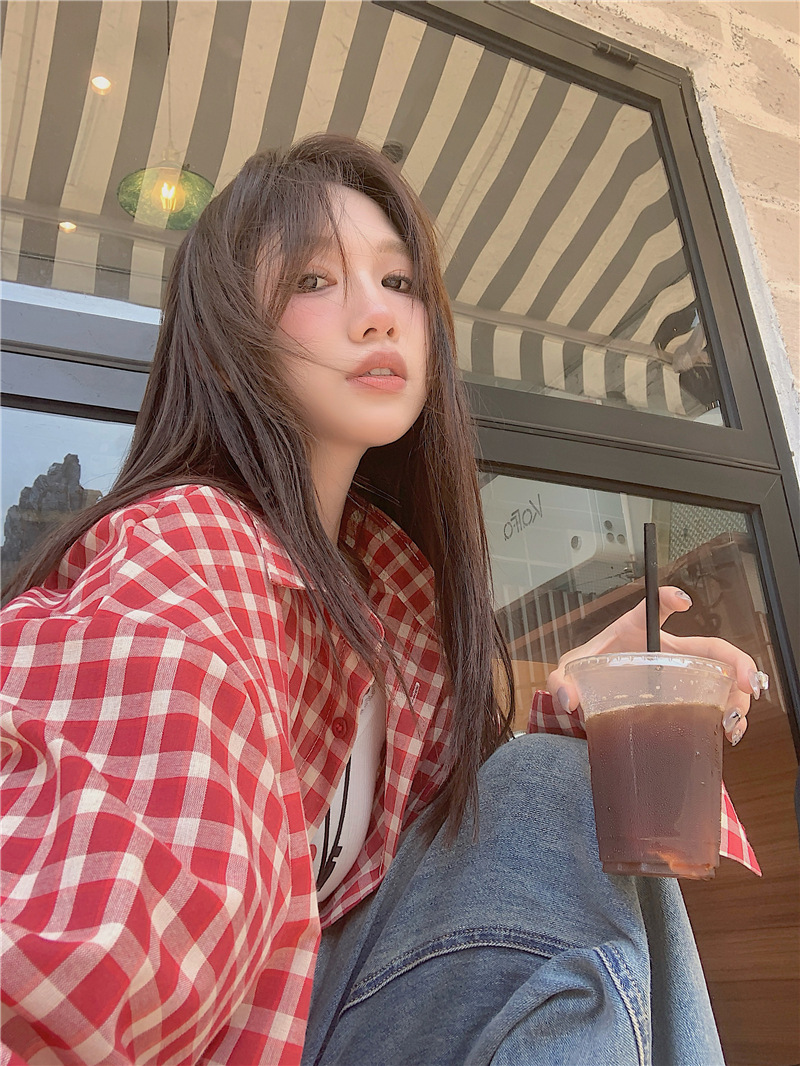 2025년 초봄 여름 한국 스타일 신상 루즈핏 만능 긴팔 체크 셔츠 여성복스토어 가기