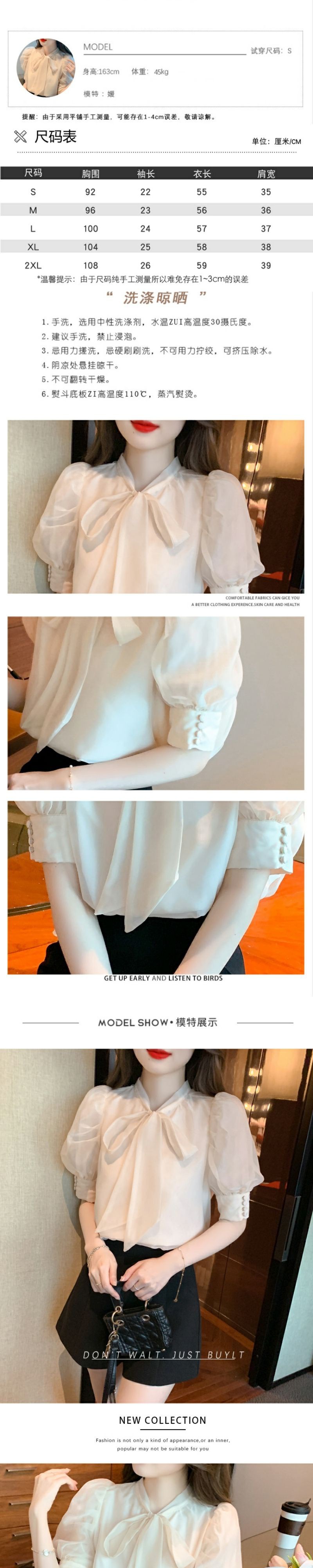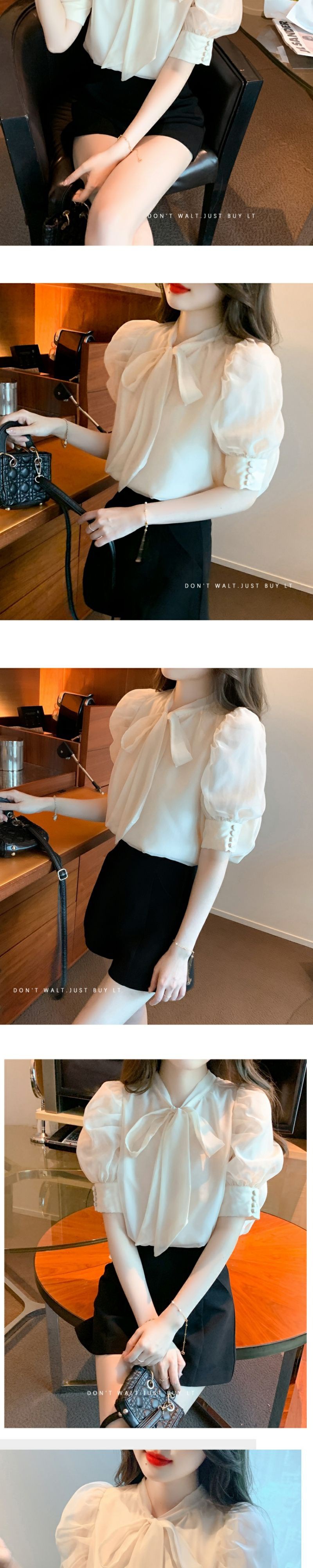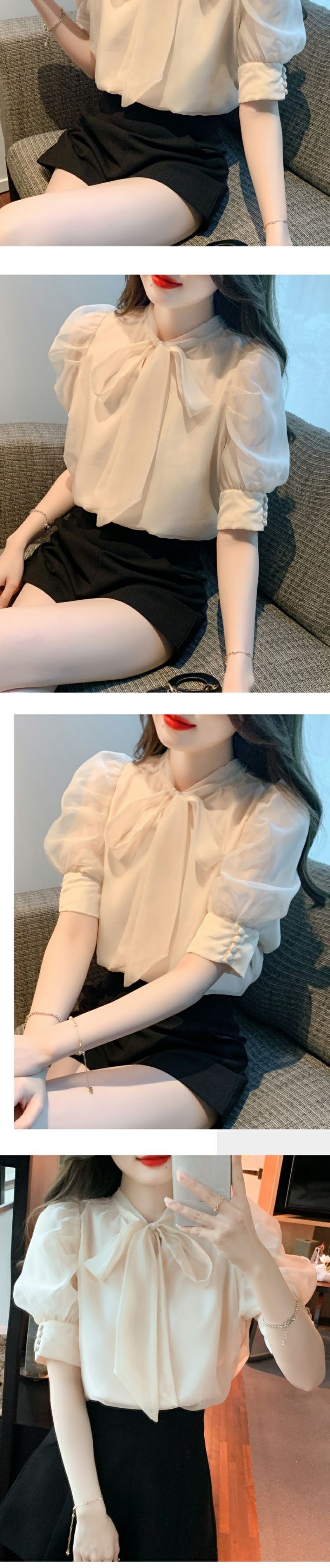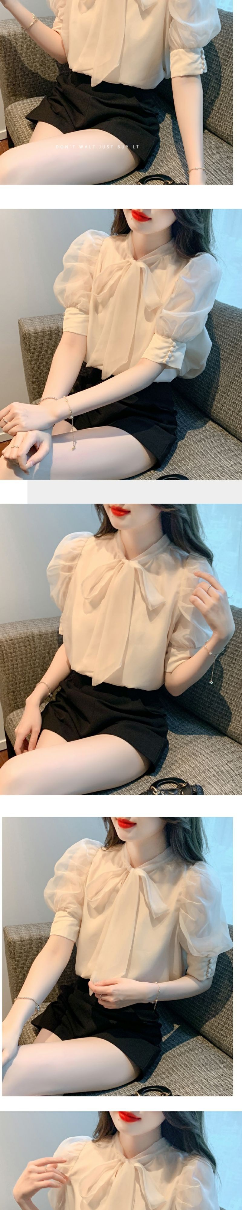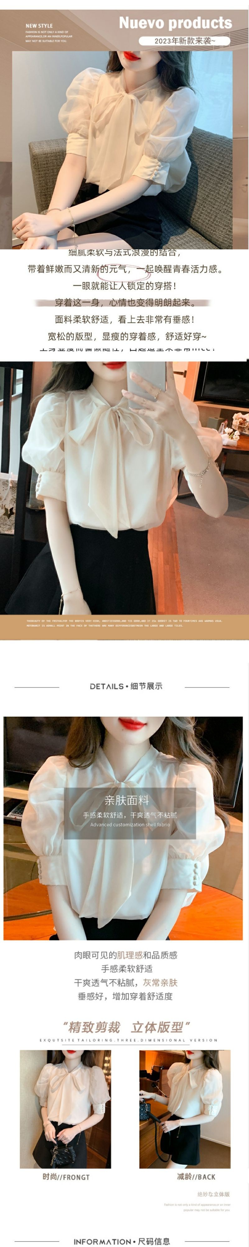 퍼프 소매 짧은 소매 셔츠 여자의 여름 2023 새로운 활 쉬폰 탑 틈새 세련된 셔츠스토어 가기