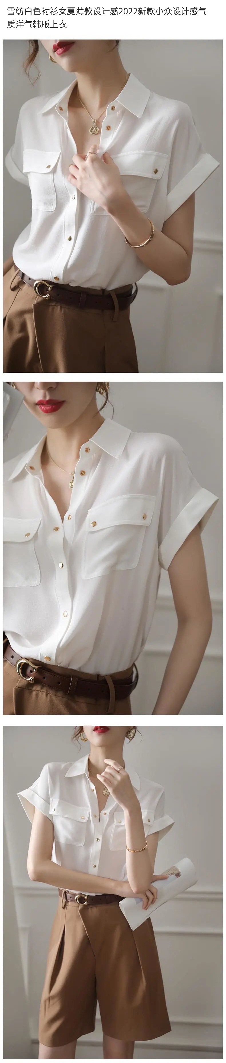 쉬폰 화이트 셔츠 여성의 여름 얇은 디자인 센스 2024 새로운 틈새 디자인 센스 우아한 한국 스타일 탑스토어 가기