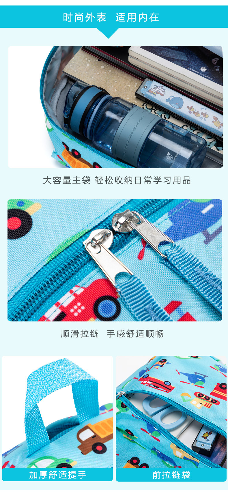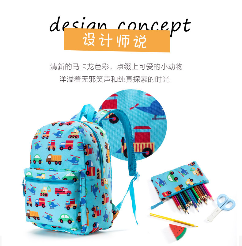 아마존 자동차 배낭 만화 초등학교 가방 3 피스 세트 휴대하기 쉬운 부담을 줄이는 어린이 배낭