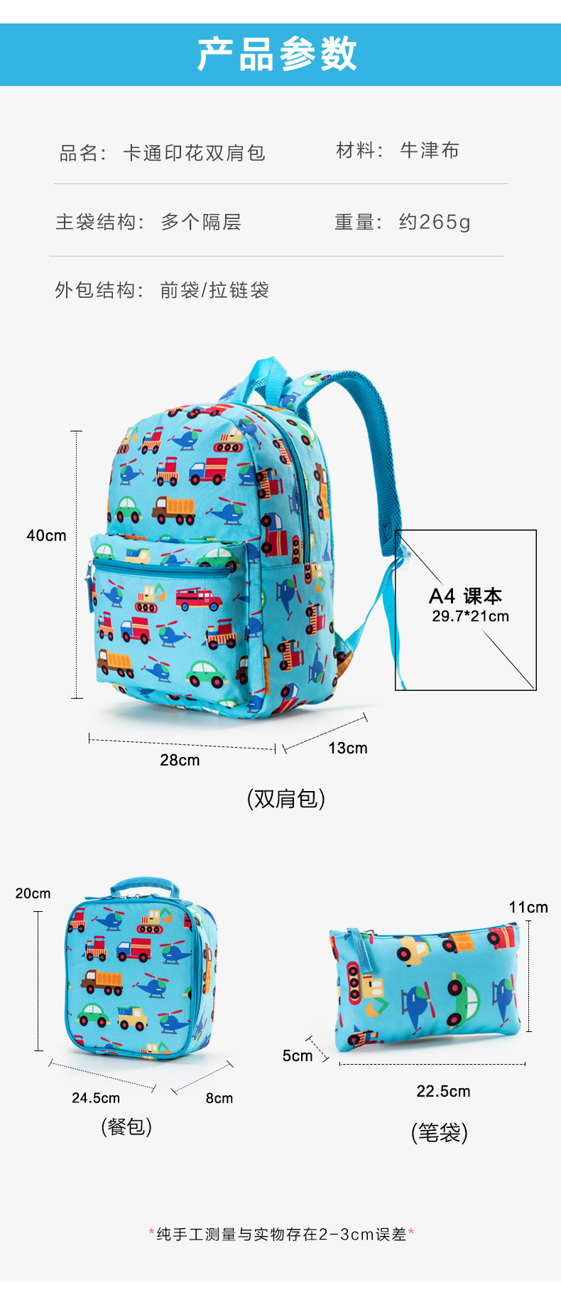 아마존 자동차 배낭 만화 초등학교 가방 3 피스 세트 휴대하기 쉬운 부담을 줄이는 어린이 배낭스토어 가기