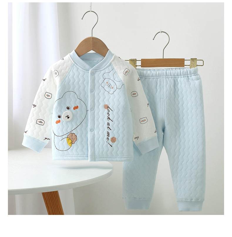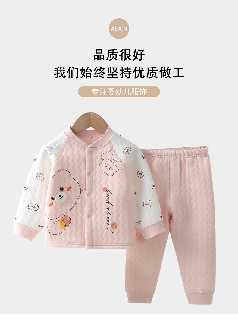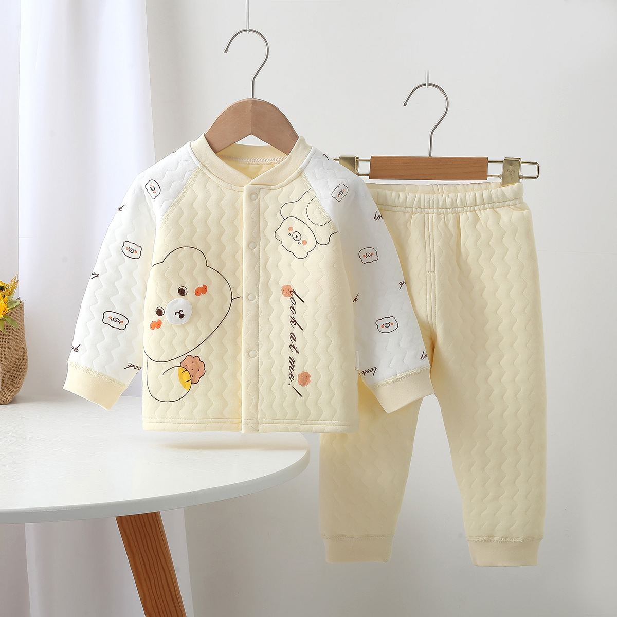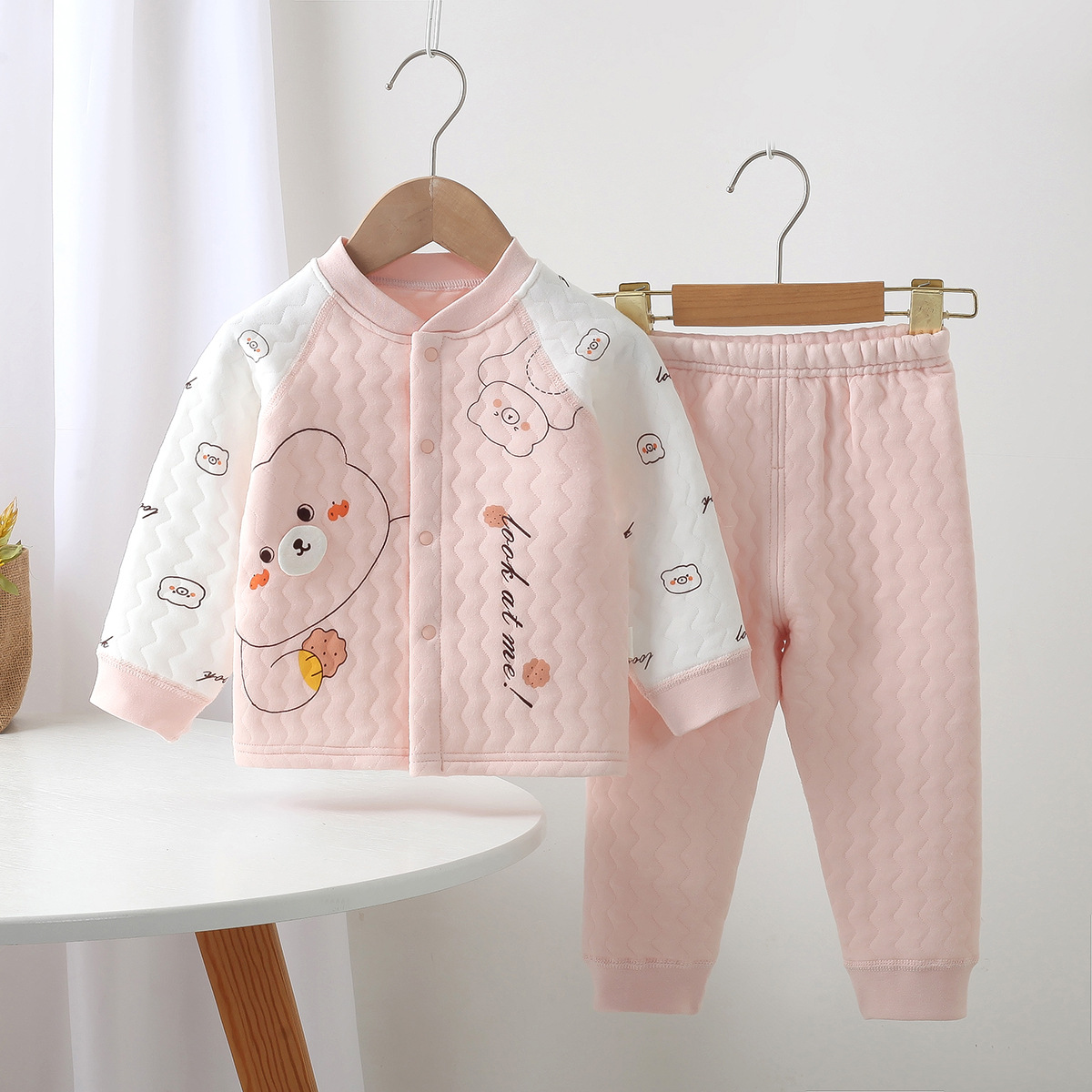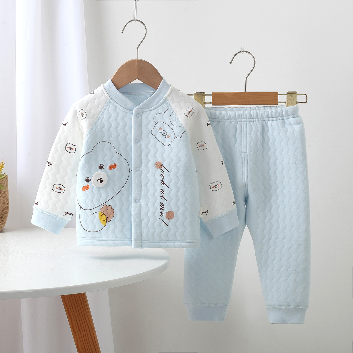 가을과 겨울 새로운 아기 속옷 세트 아기 만화 뼈없는 2 피스 어린이 3 층 따뜻한베이스 코트