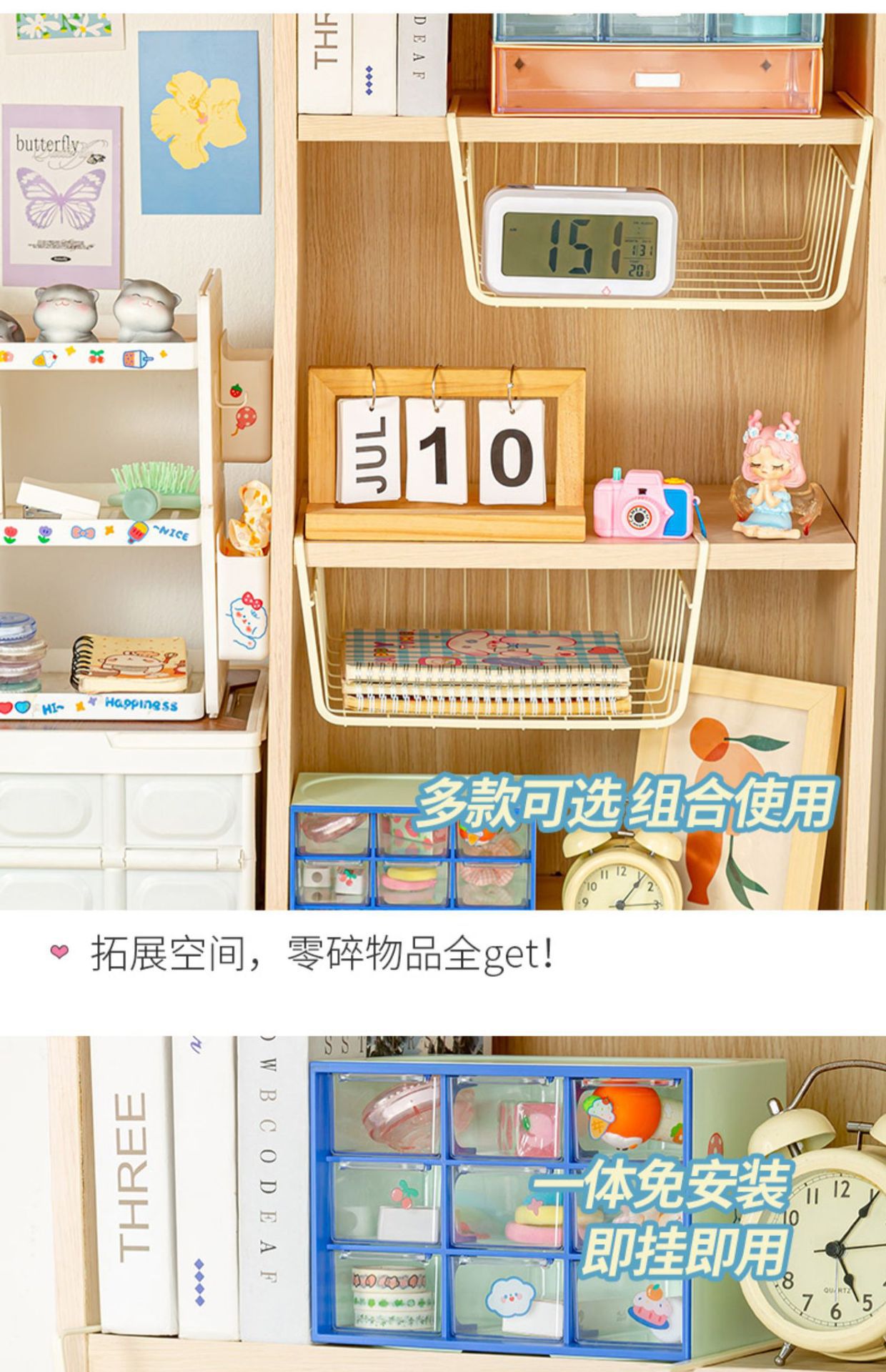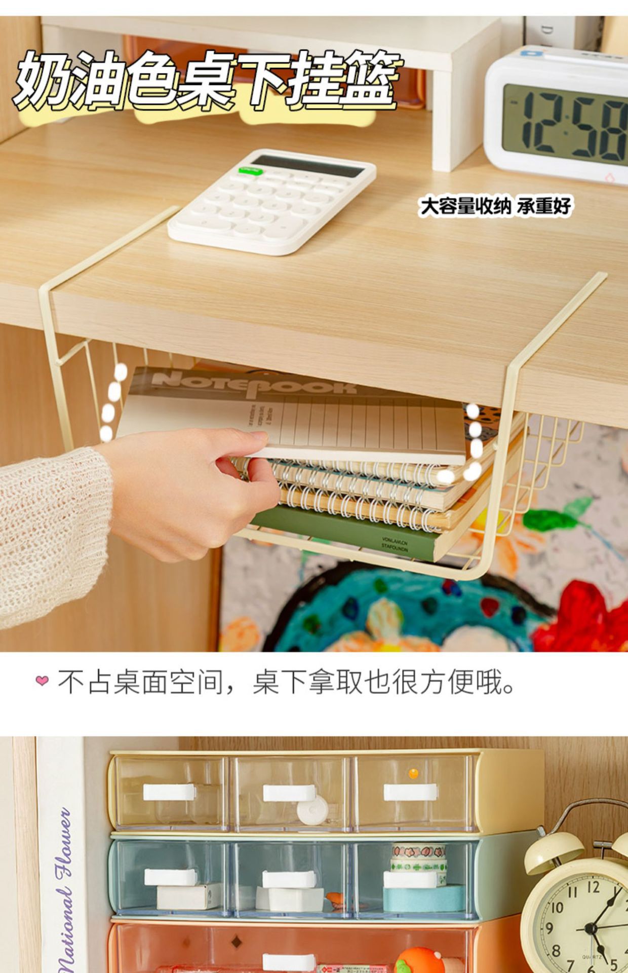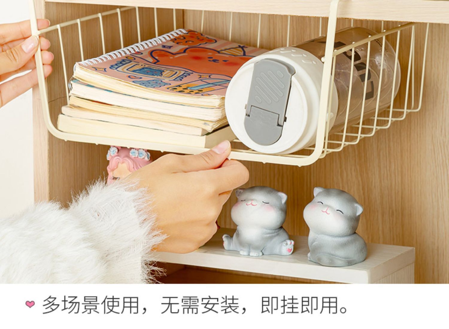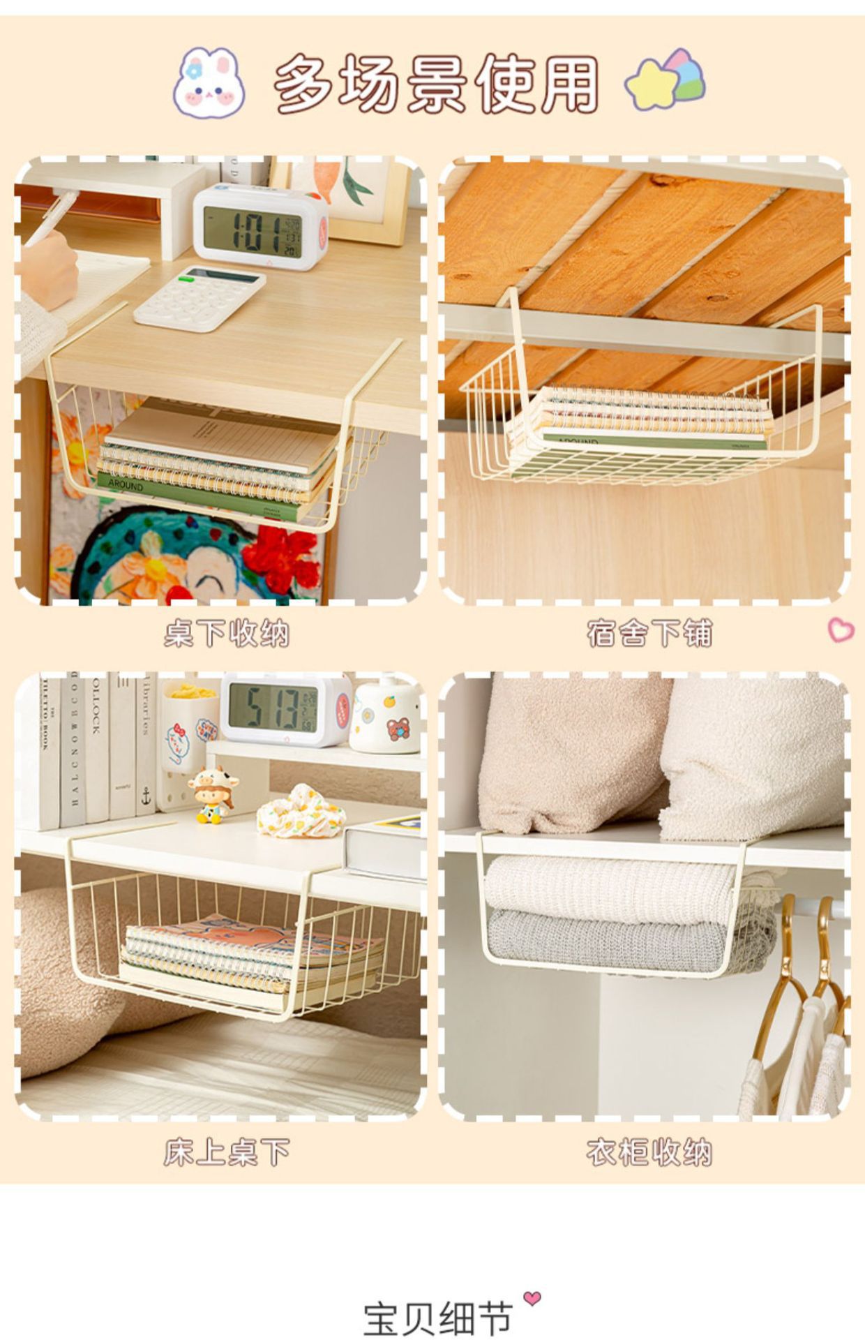 책상 밑 수납 걸이바구니, 기숙사 필수품, 옷장 분리형, 주방 캐비닛, 침대 옆 걸이형 수납 선반
