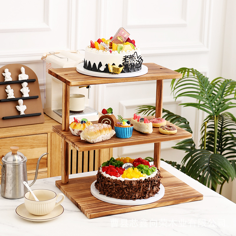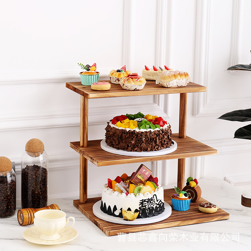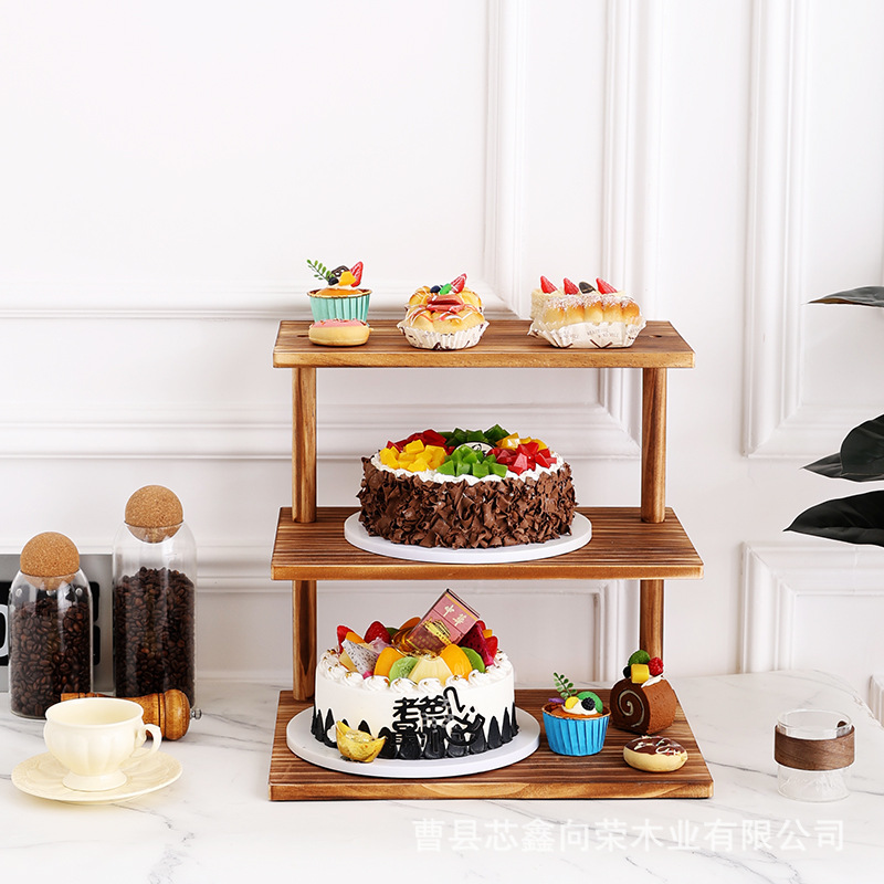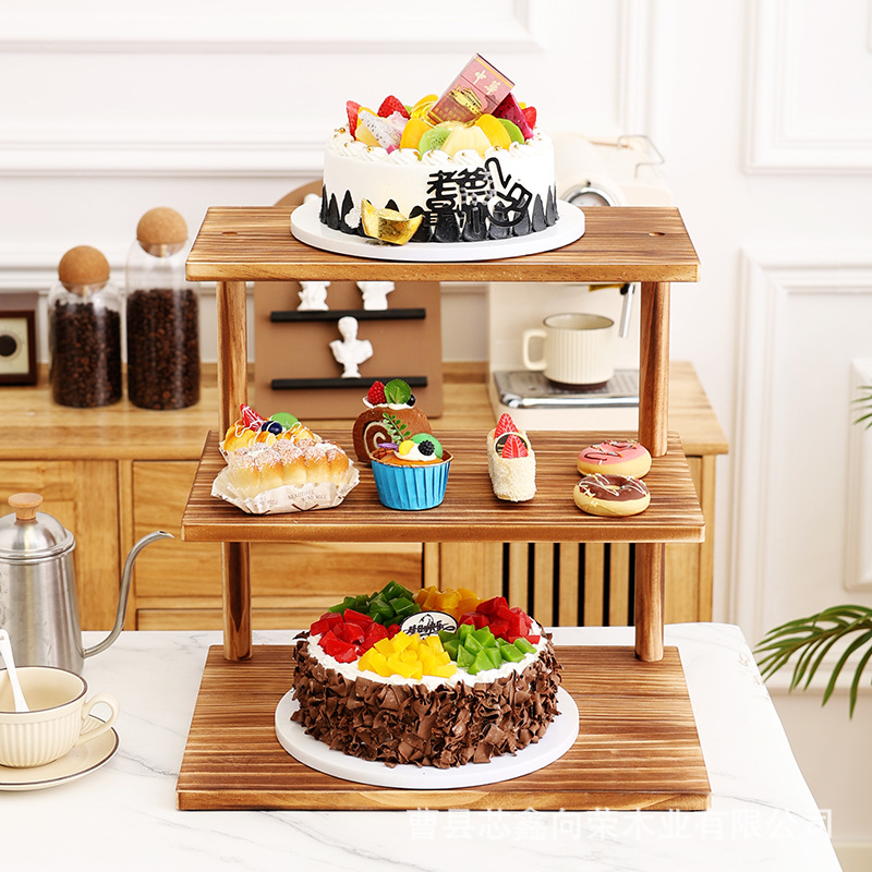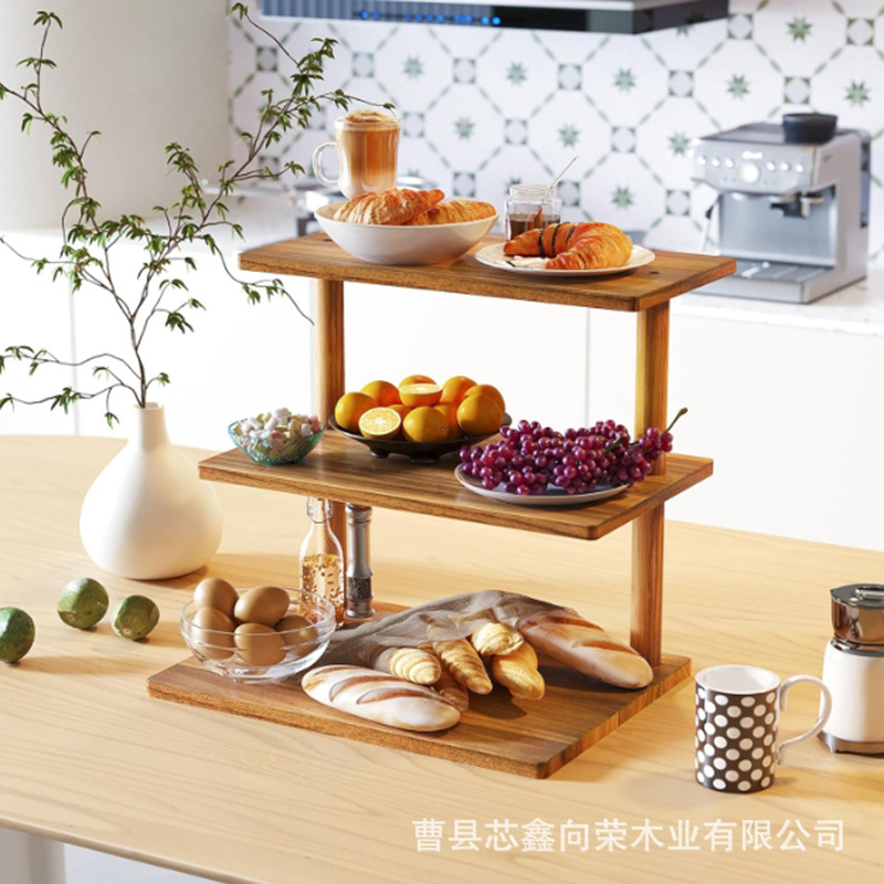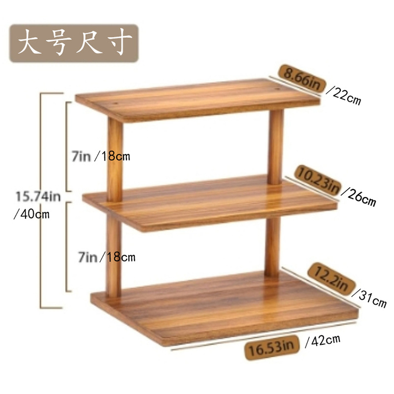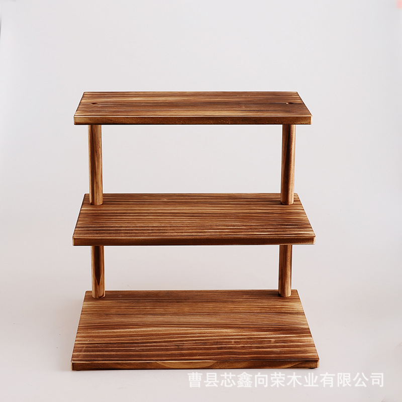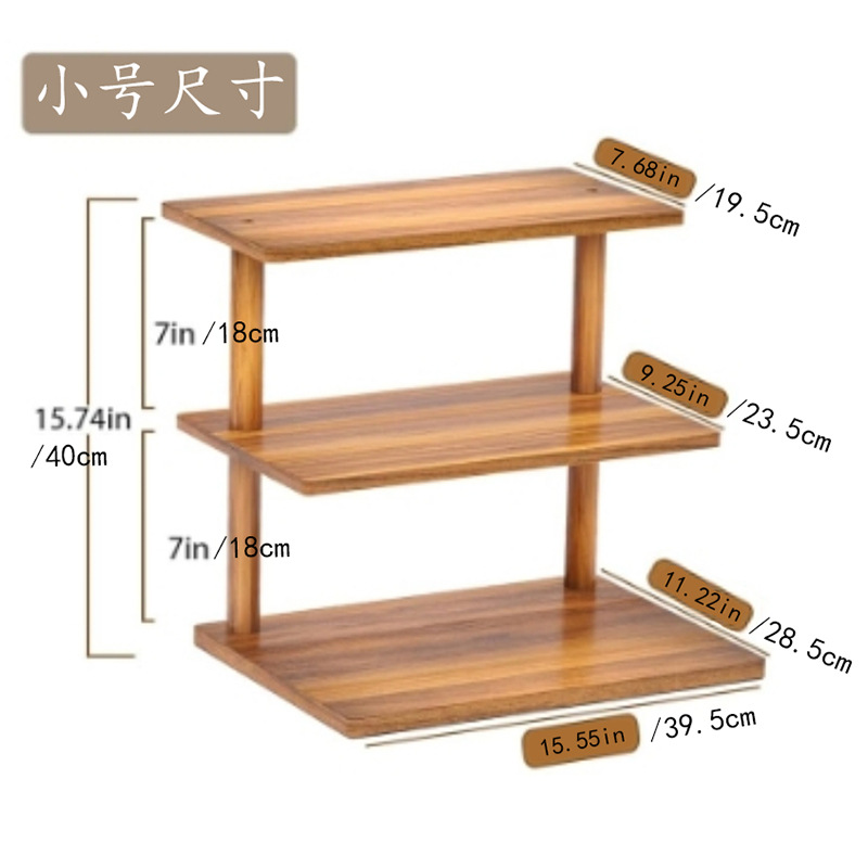 나무 3층 수납 선반, 데스크탑 디저트 디스플레이 선반, 케이크 선반, 주방 조미료 수납 선반, 원목 식물 선반