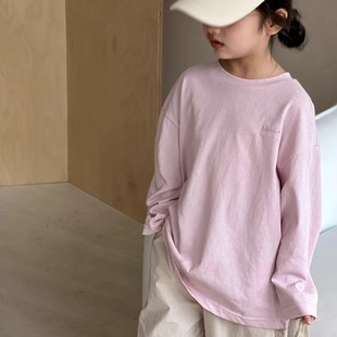 女童长袖T恤春秋款2024新款秋装儿童秋装上衣宽松休闲纯色打底衫