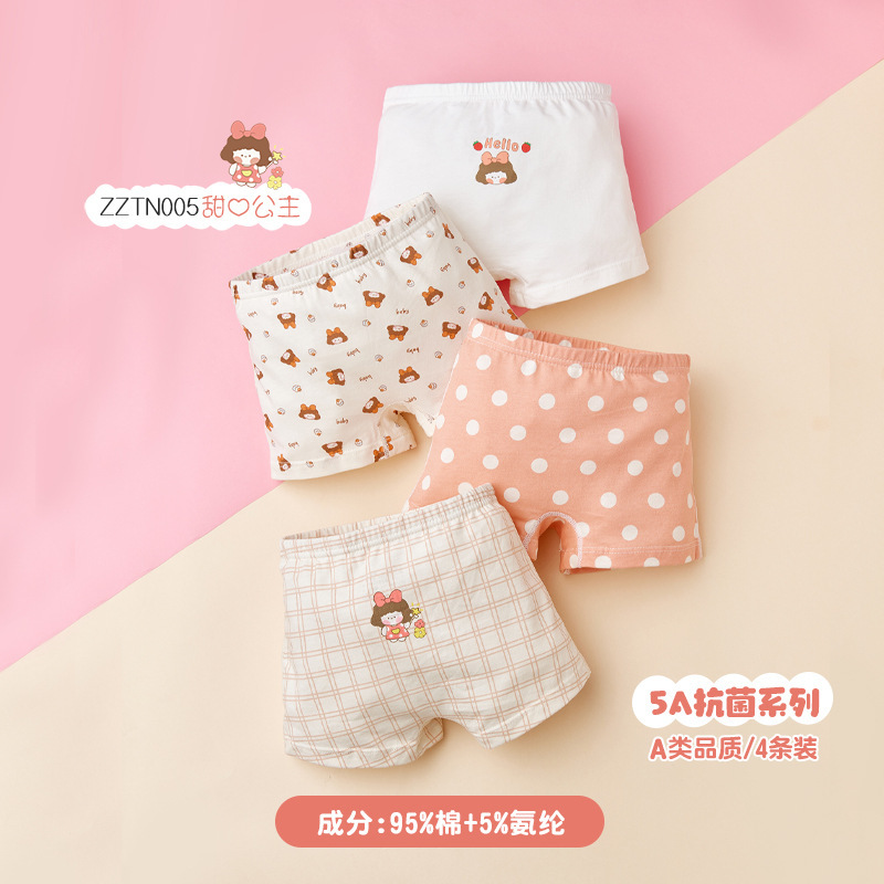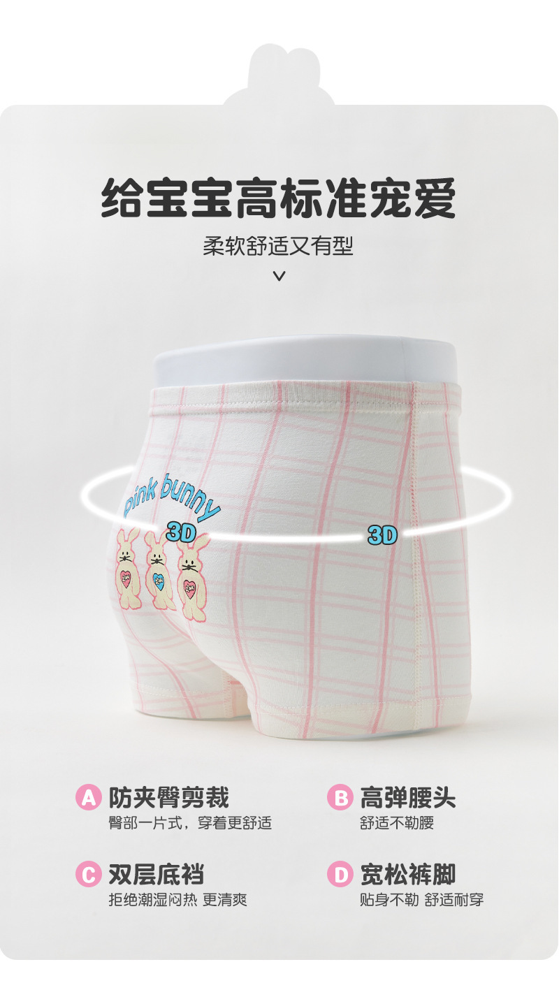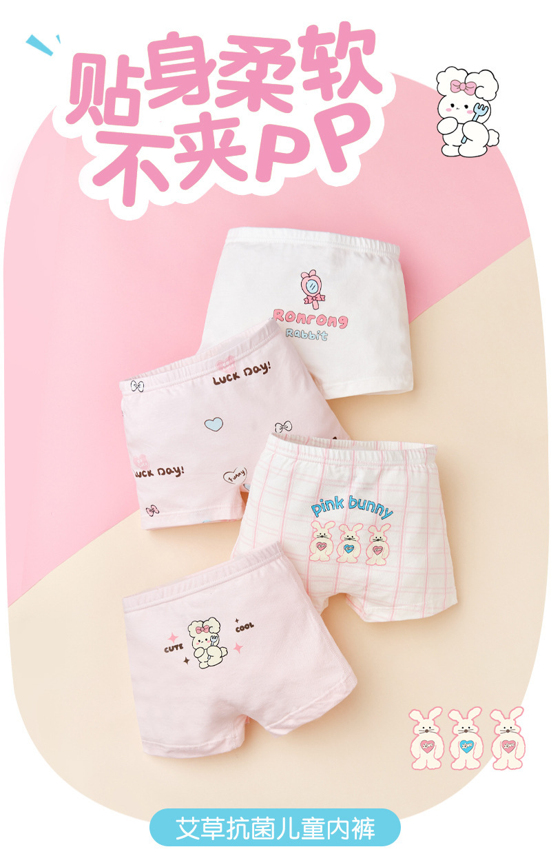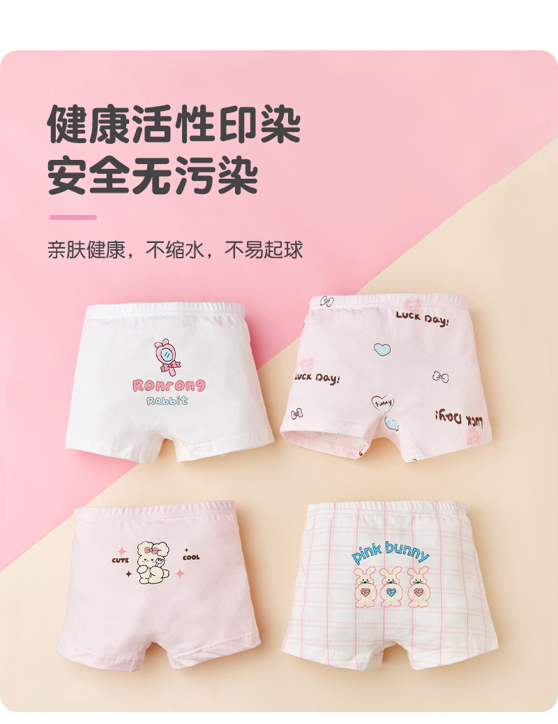 ZZTN005 면 어린이 속옷 5A 항균 클래스 A 2024 새로운 만화 토끼 소녀 복서 속옷스토어 가기