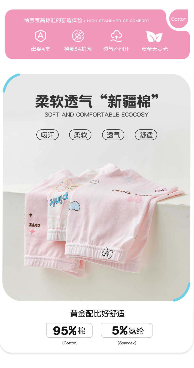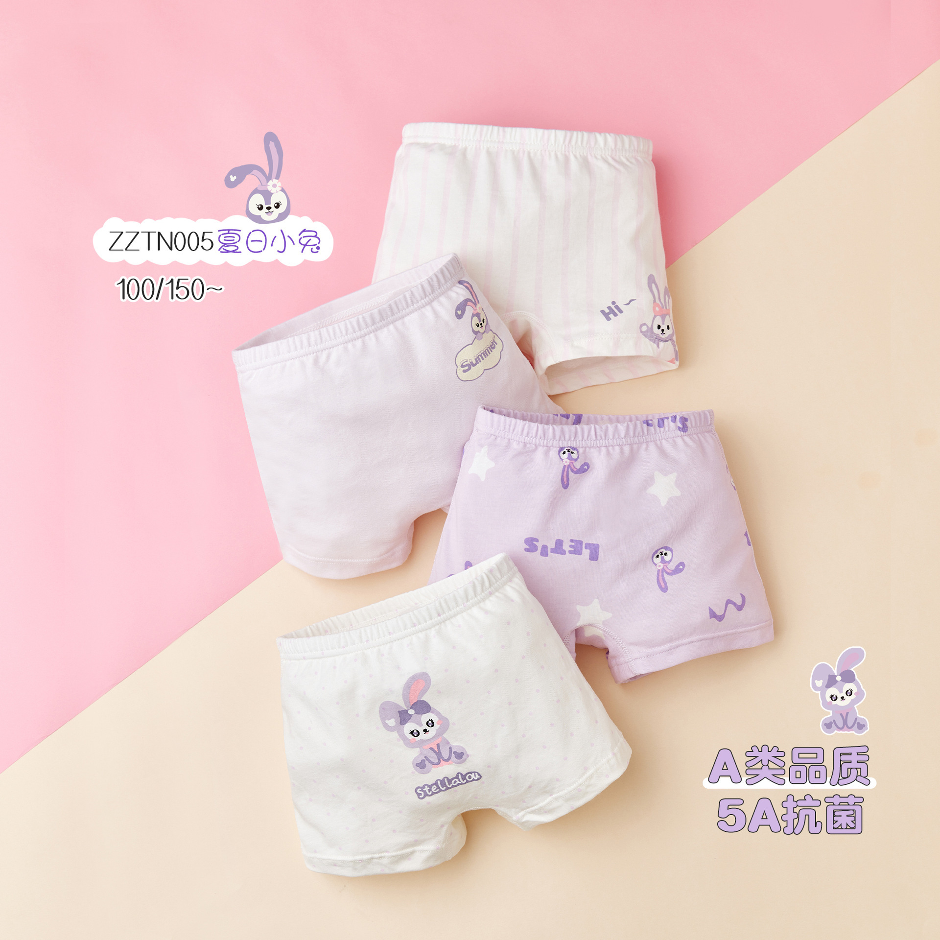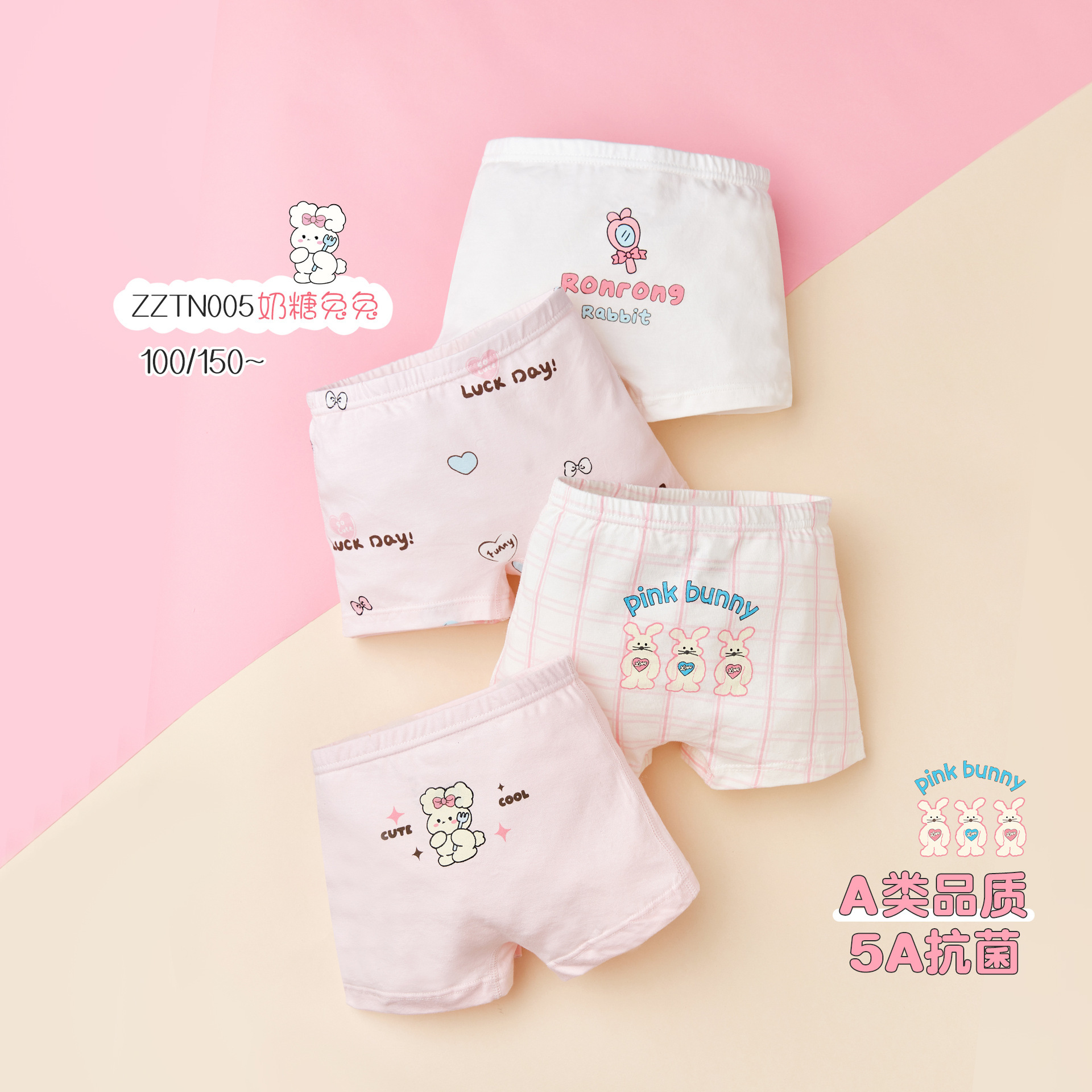 ZZTN005 면 어린이 속옷 5A 항균 클래스 A 2024 새로운 만화 토끼 소녀 복서 속옷스토어 가기