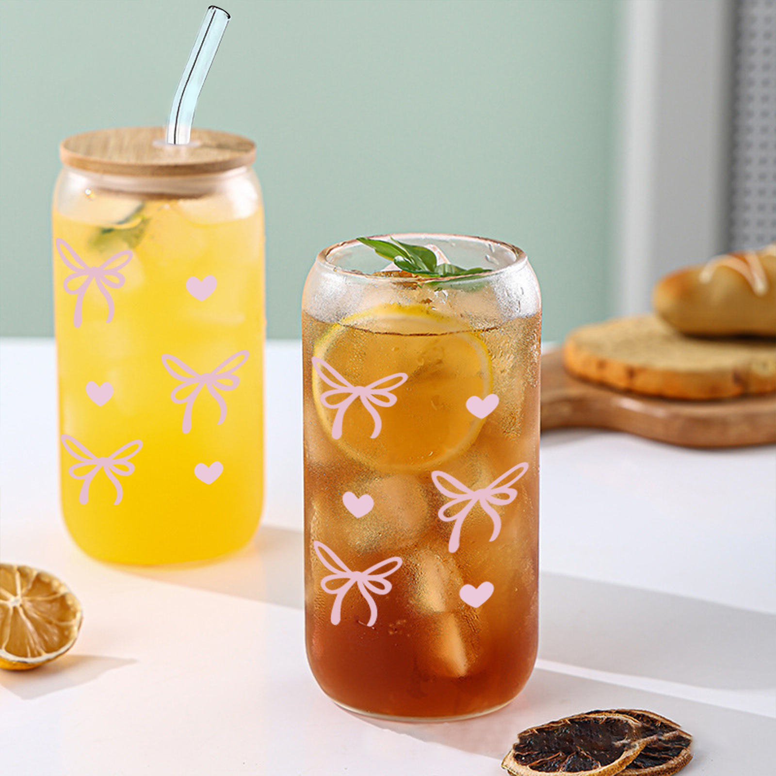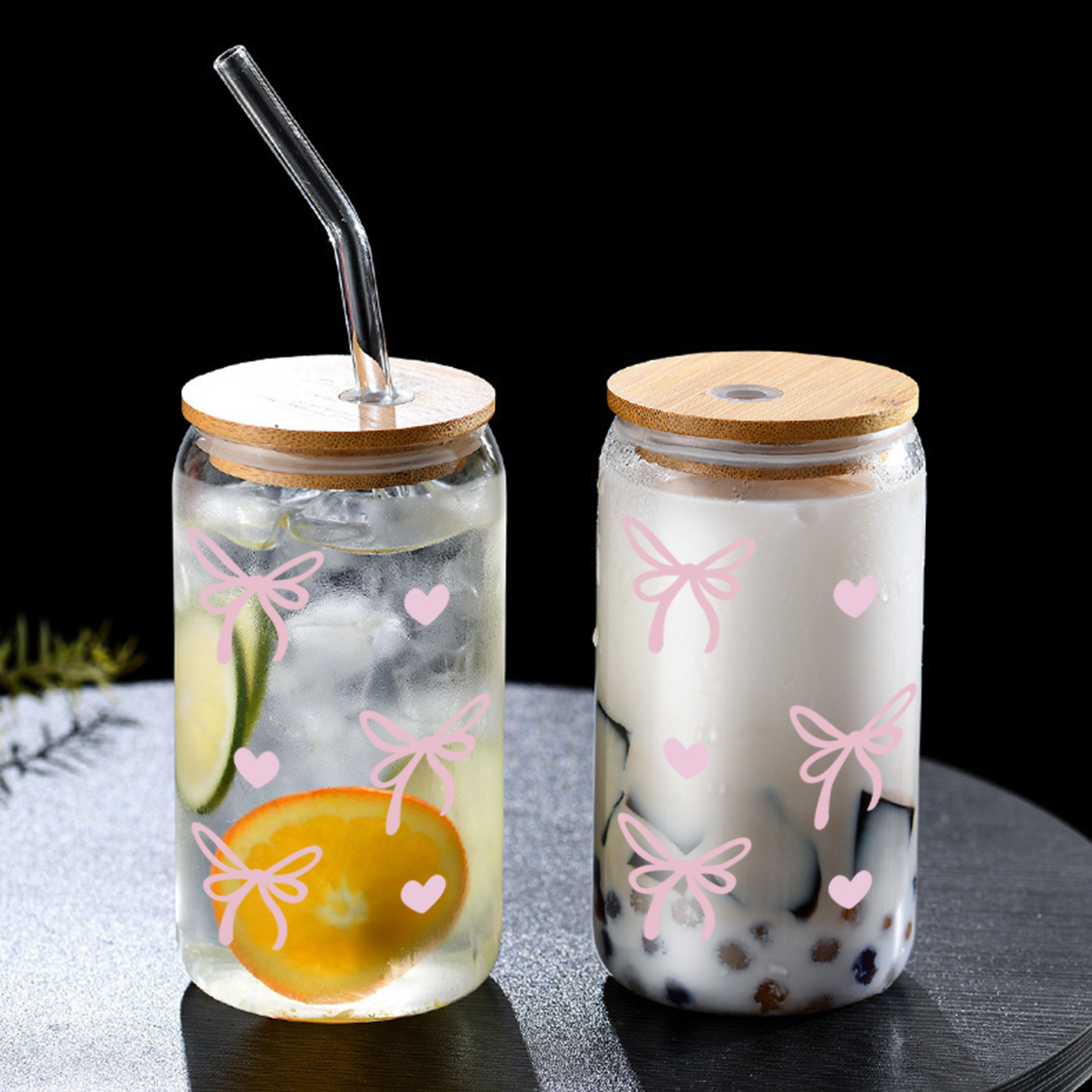 • 러브 보우 유리 + 대나무 뚜껑 + 곡선형 유리 빨대 (박스 진주면 포장)