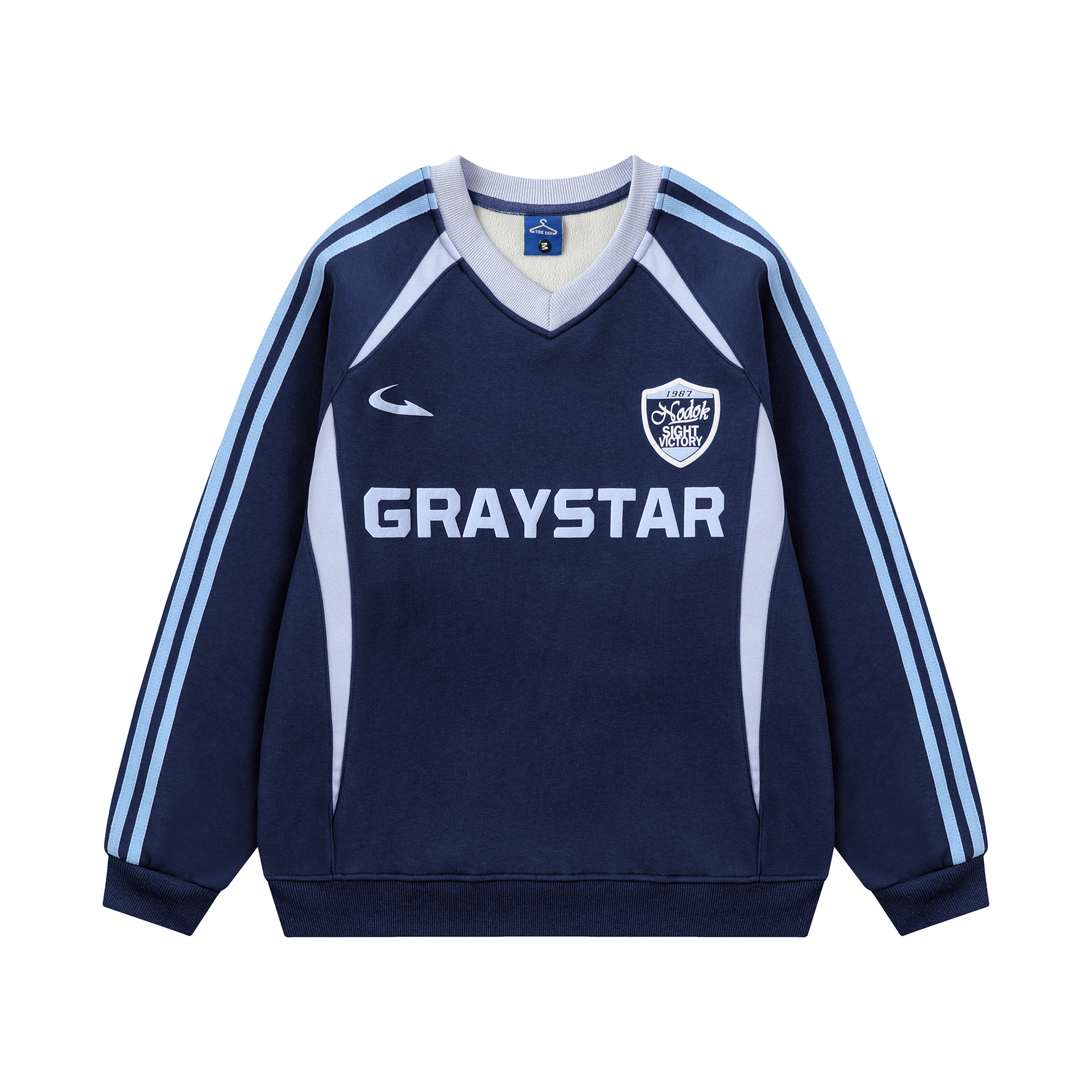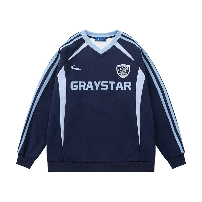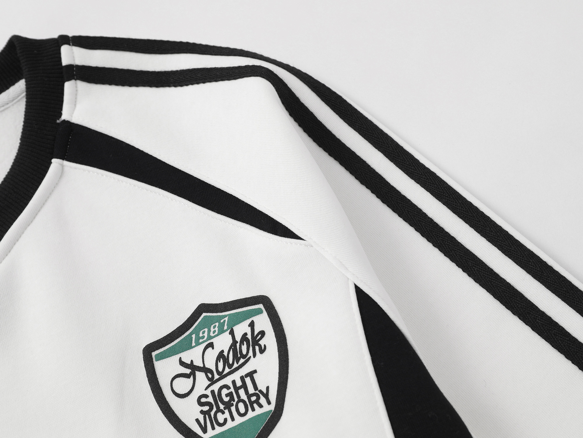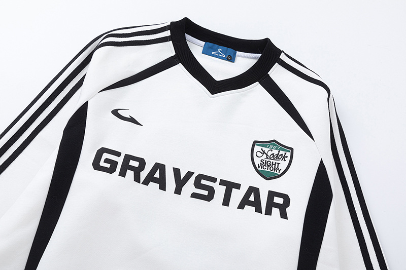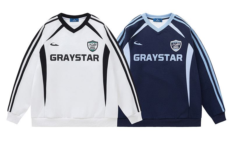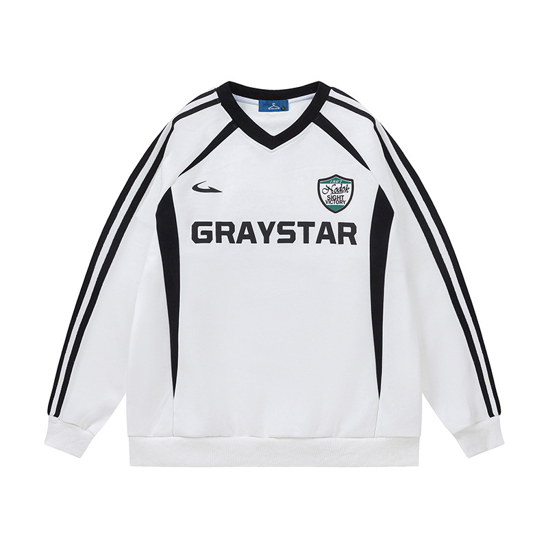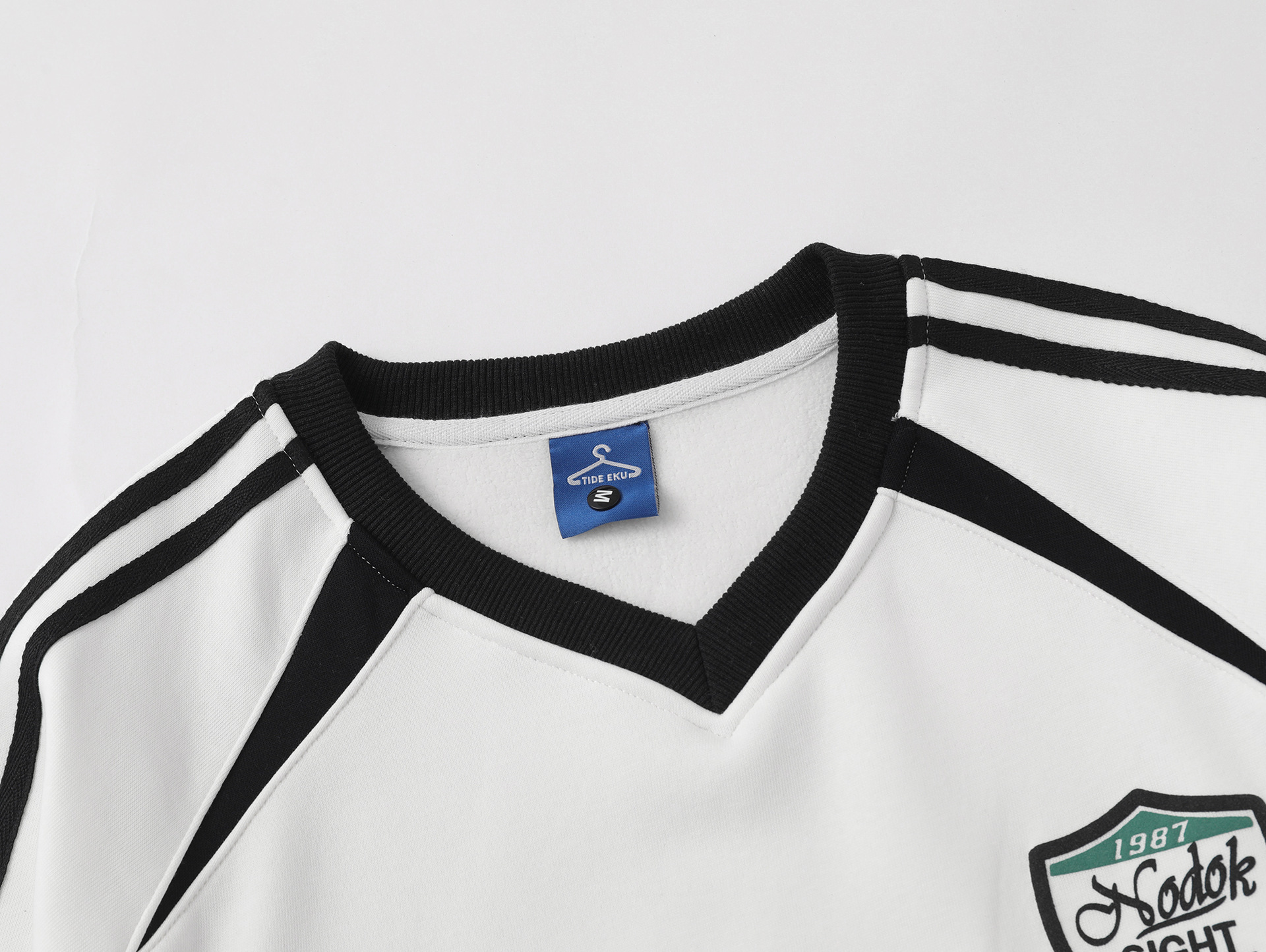 미국 레트로 V 넥 스포츠 3 바 스티칭 컬러 레이싱 세트 기모 땀 남자와 여자 커플의 캐주얼 탑 트렌디스토어 가기