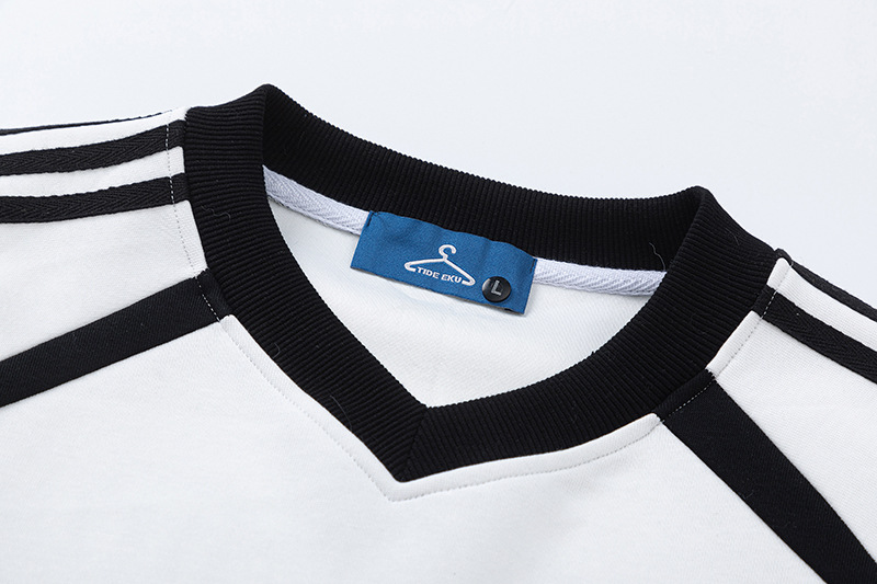 미국 레트로 V 넥 스포츠 3 바 스티칭 컬러 레이싱 세트 기모 땀 남자와 여자 커플의 캐주얼 탑 트렌디