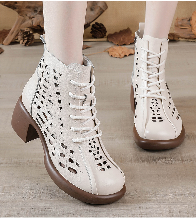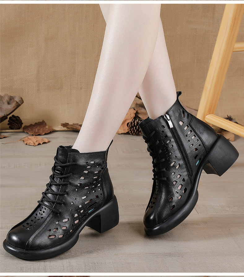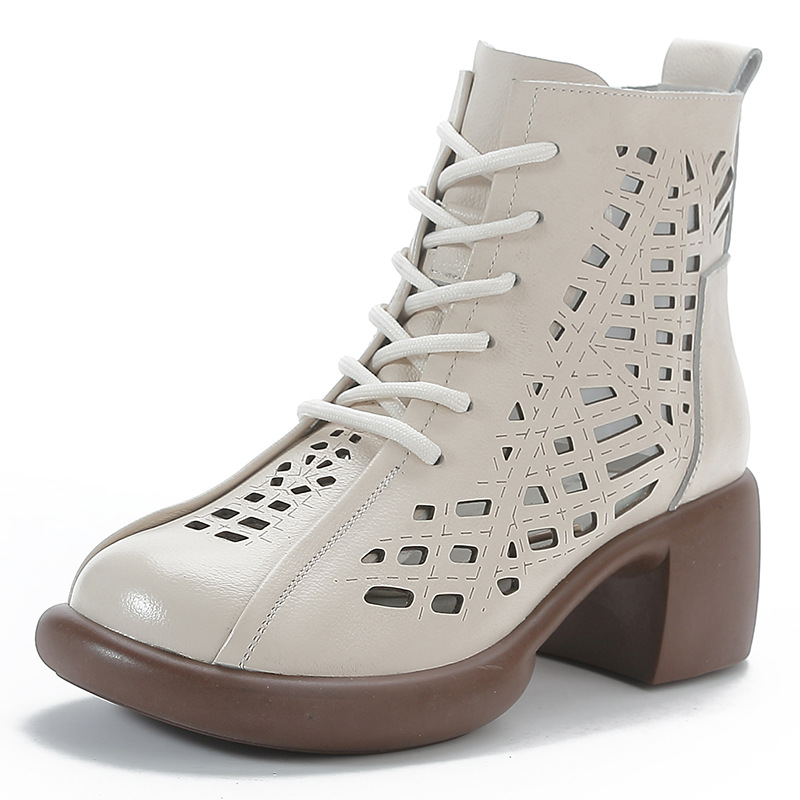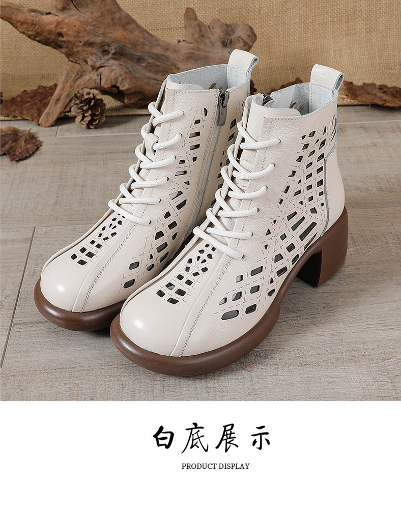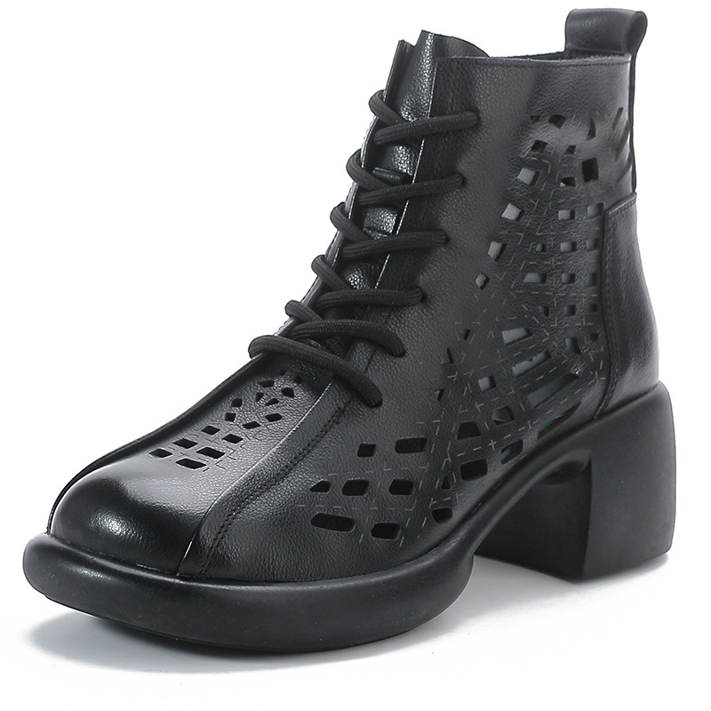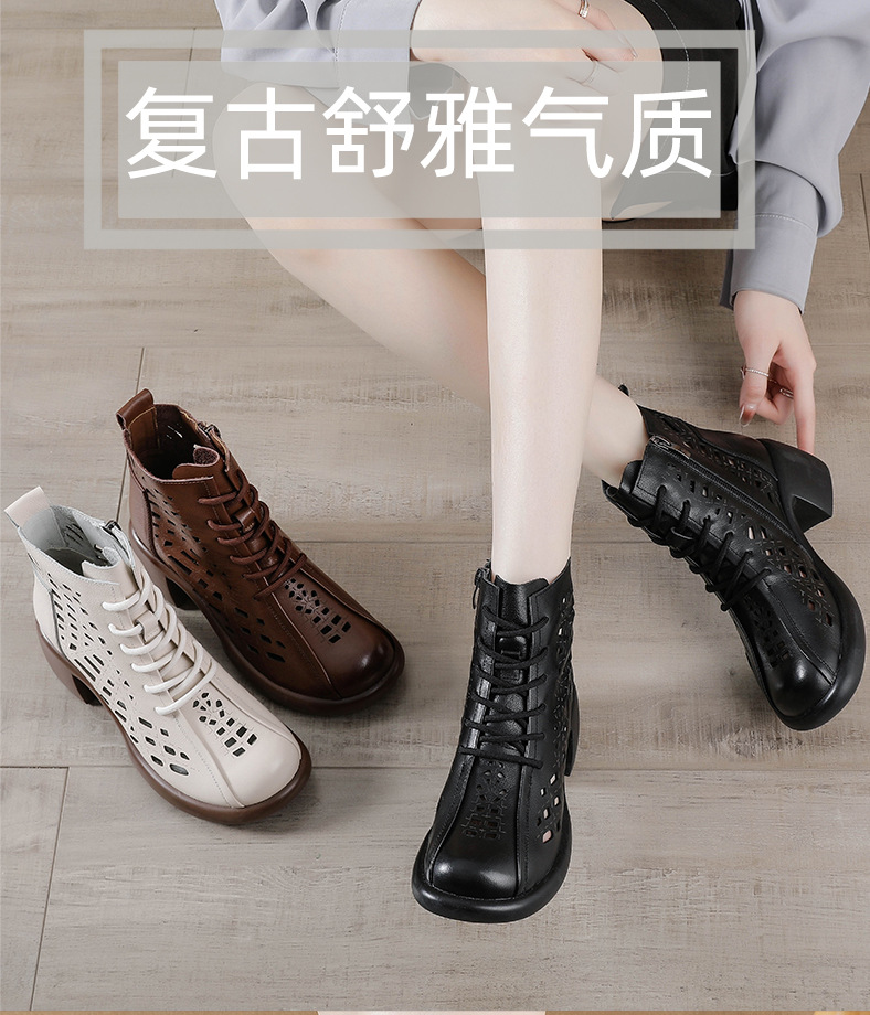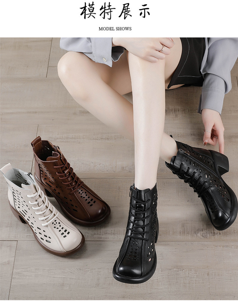 1층 소가죽 여름 샌들 하이힐 마틴 부츠 여성 부츠 속이 빈 두꺼운 밑창 천연 가죽 봄 숏부츠 초하이힐