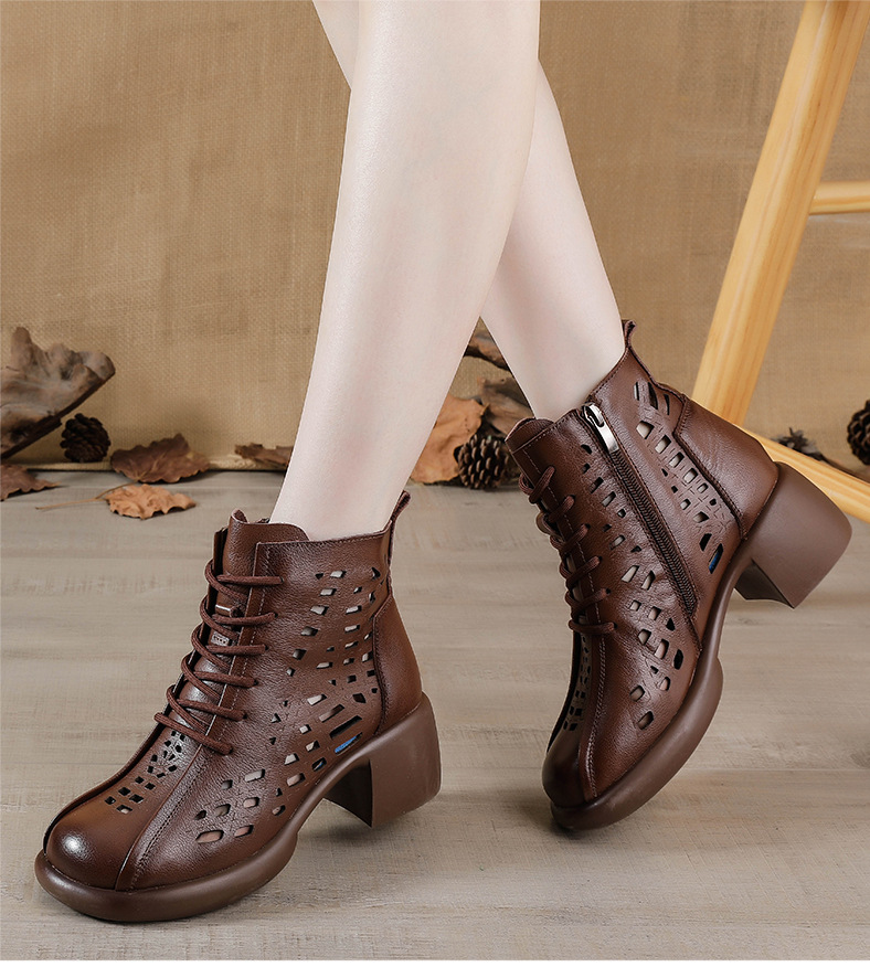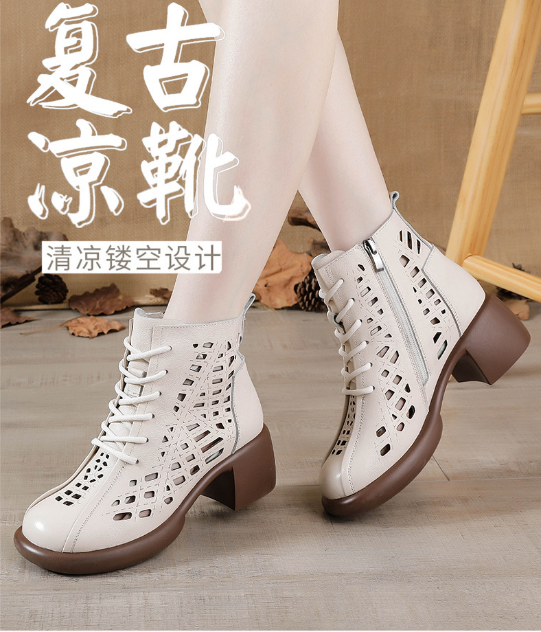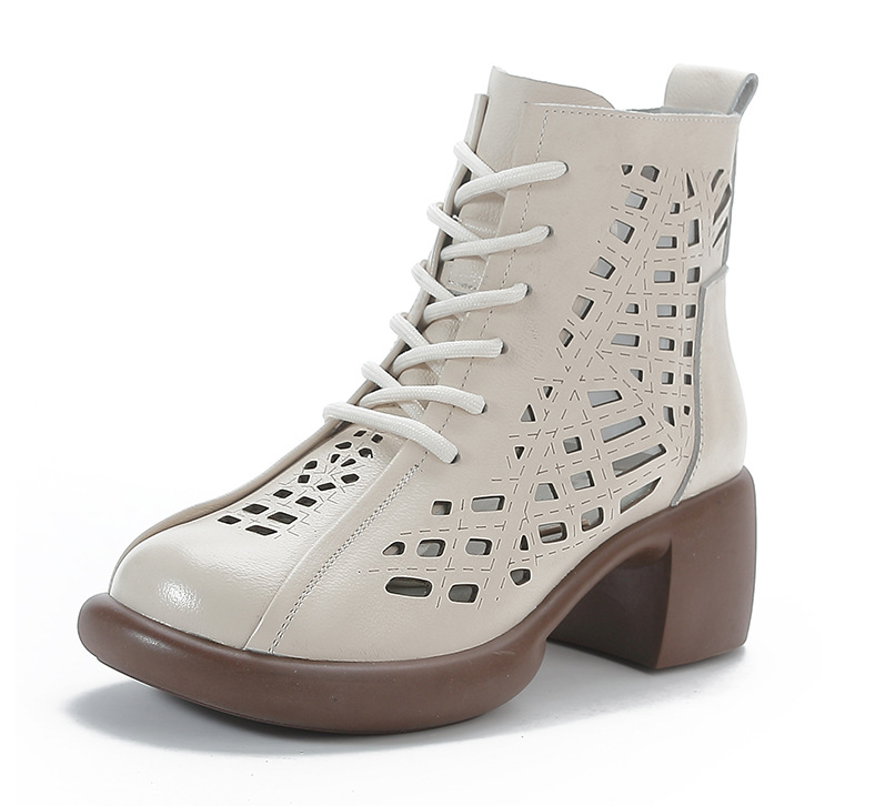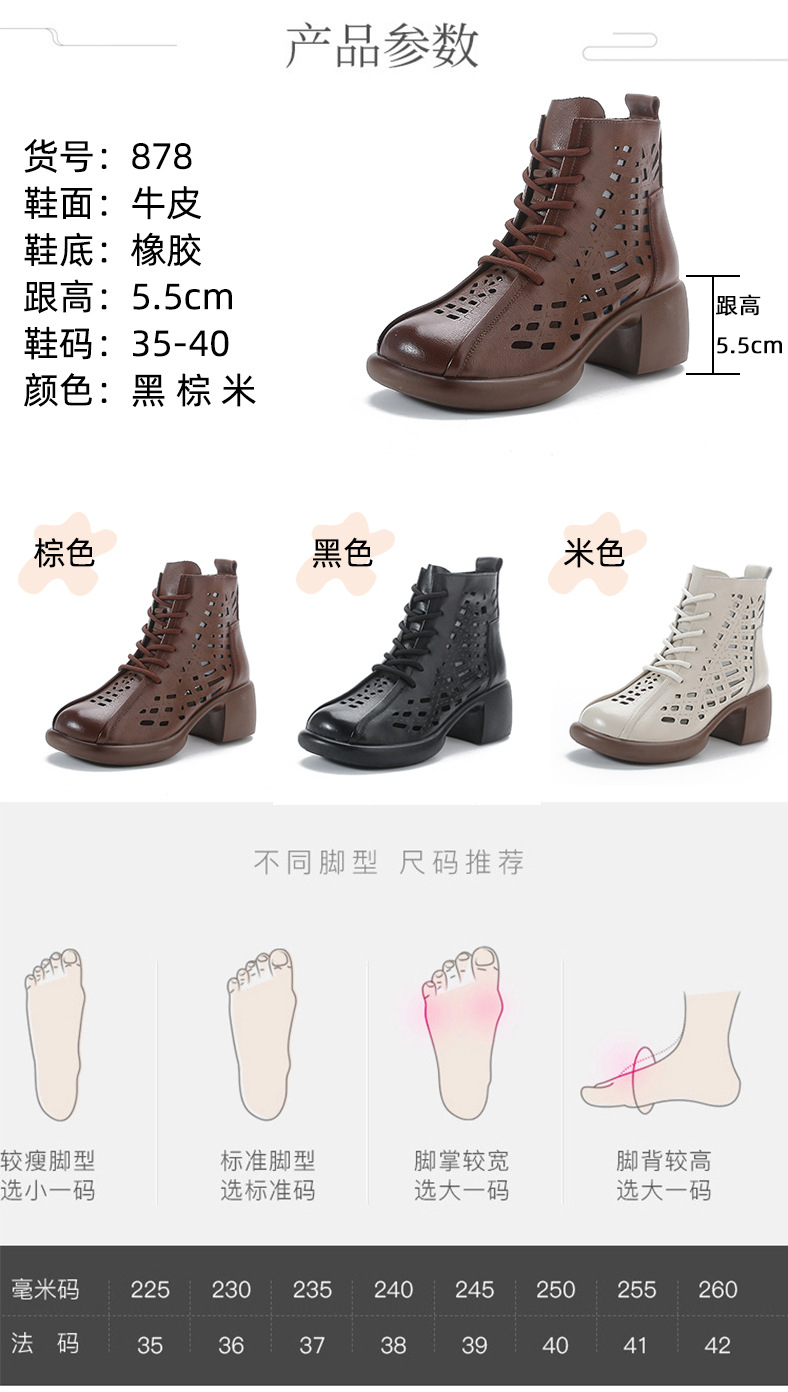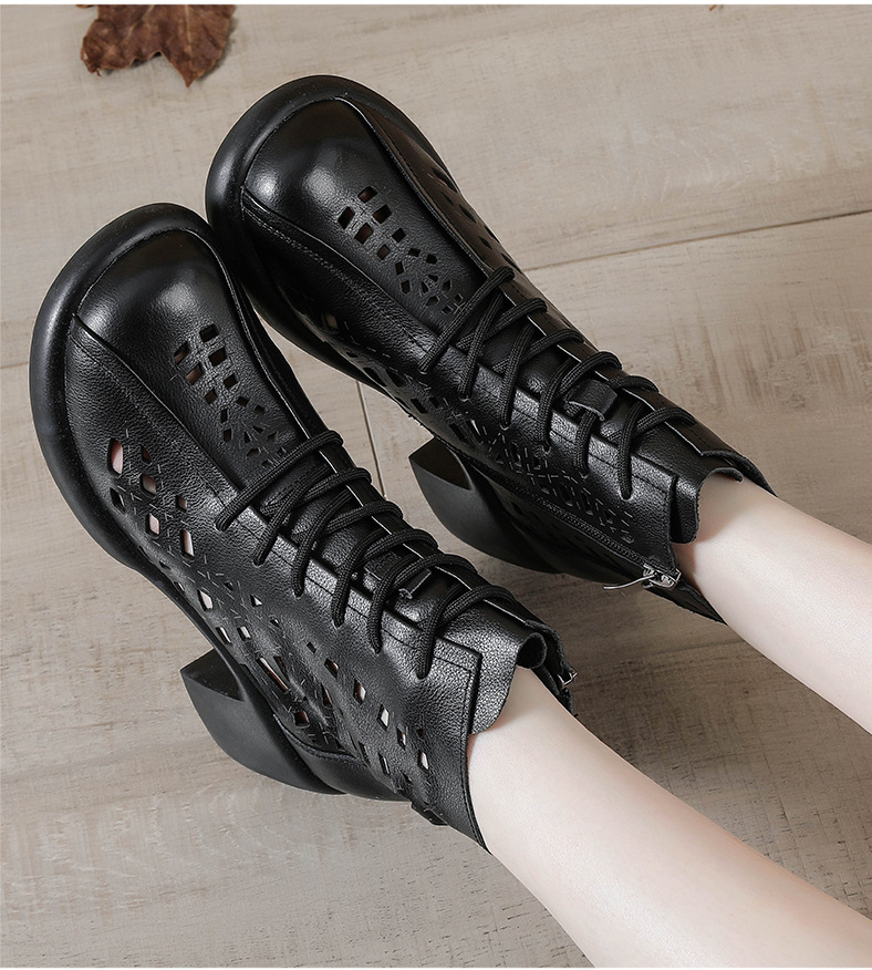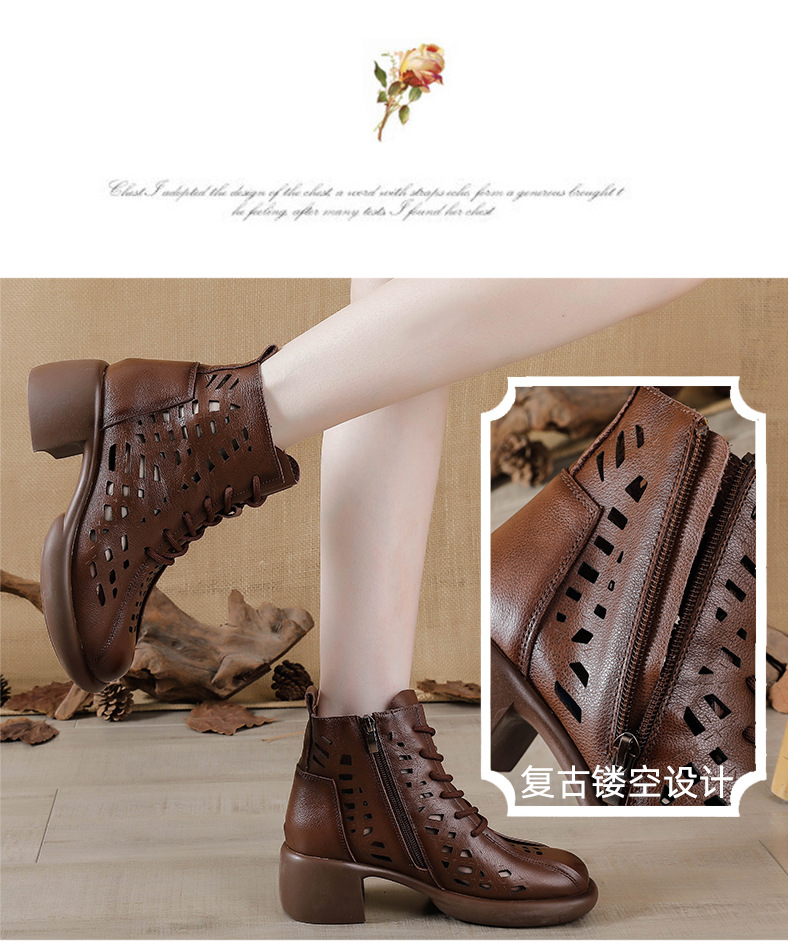 1층 소가죽 여름 샌들 하이힐 마틴 부츠 여성 부츠 속이 빈 두꺼운 밑창 천연 가죽 봄 숏부츠 초하이힐