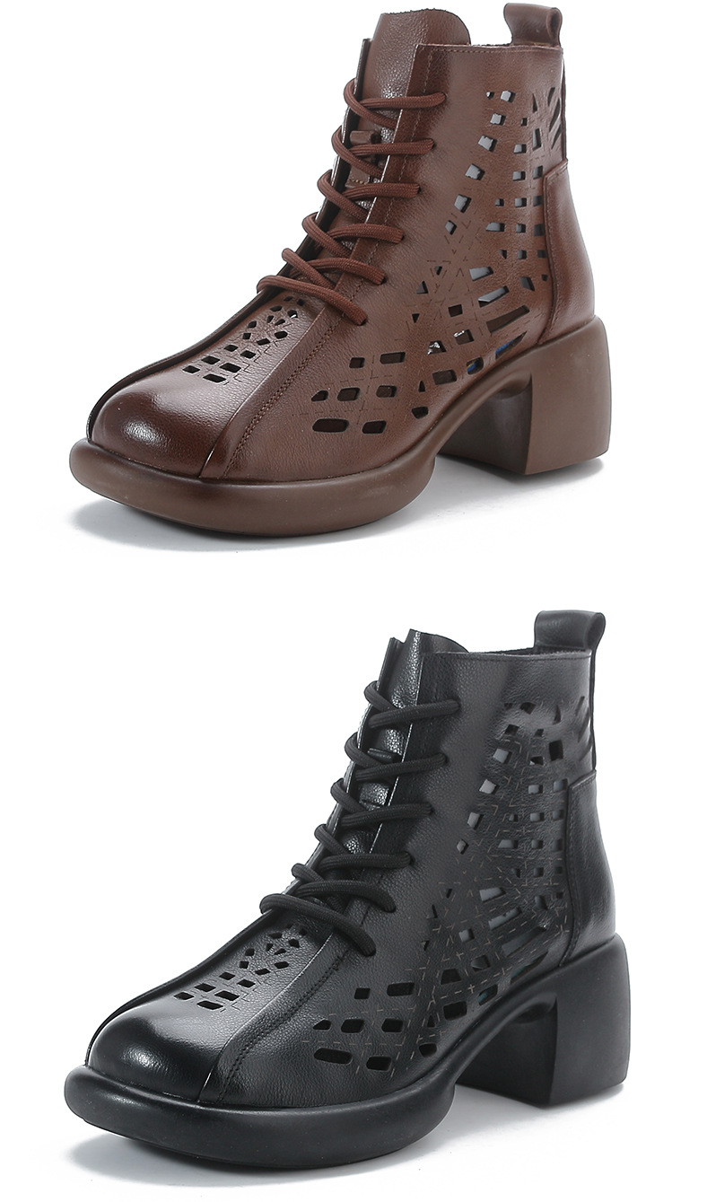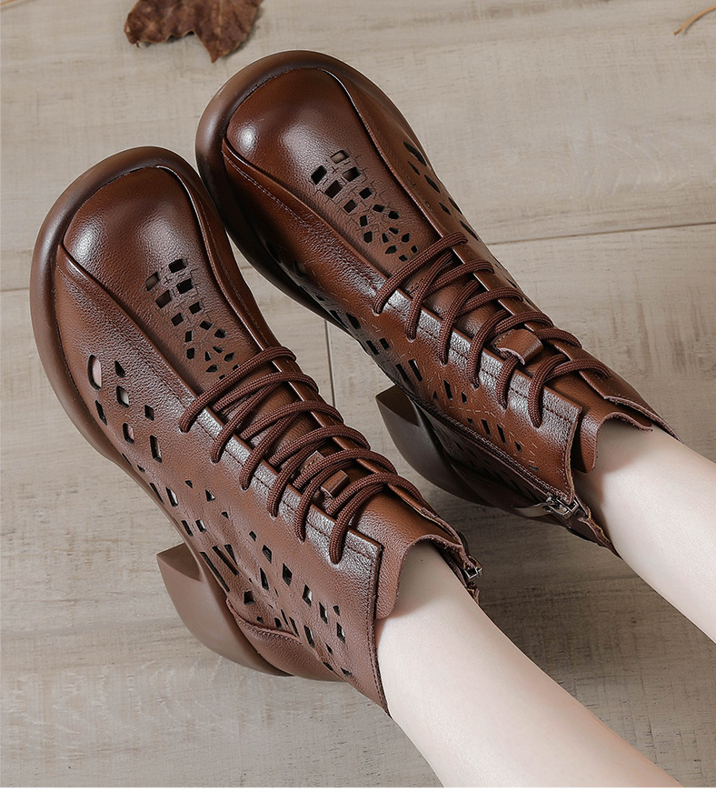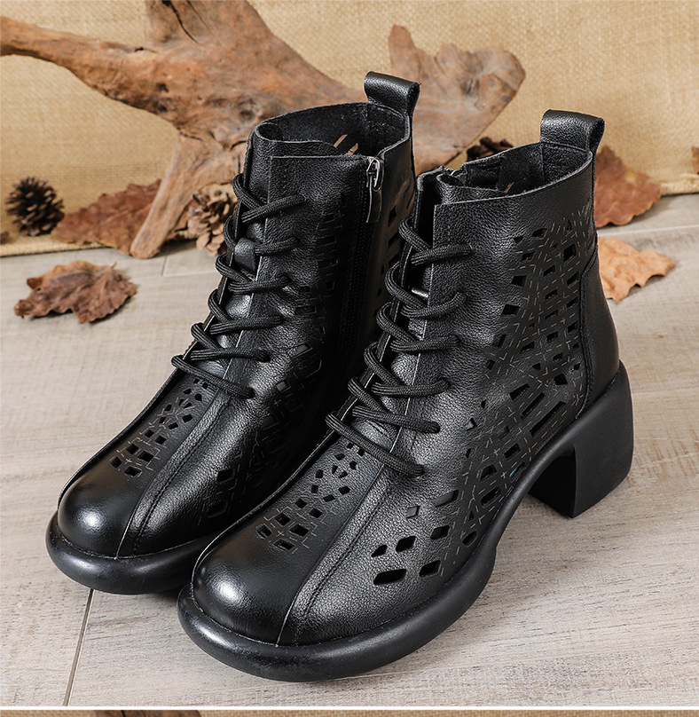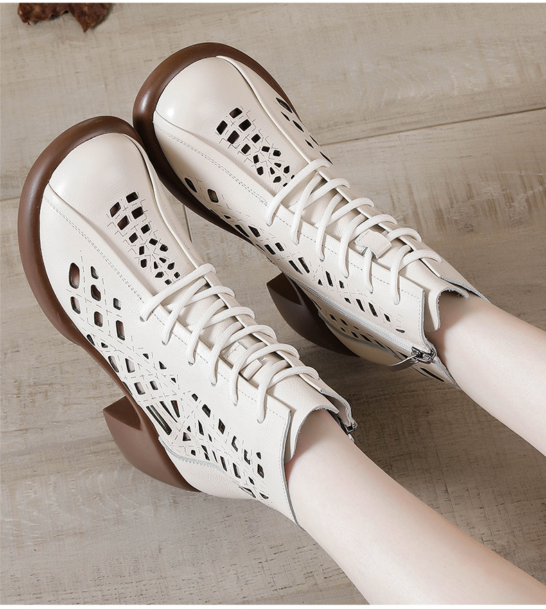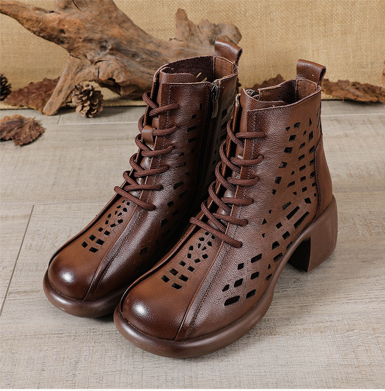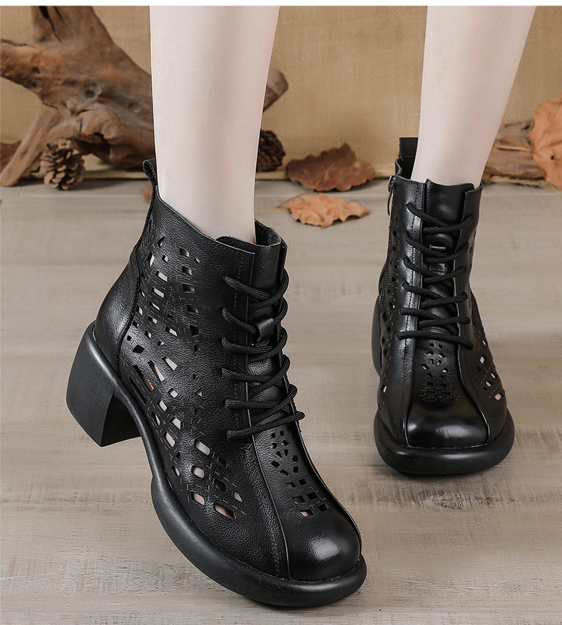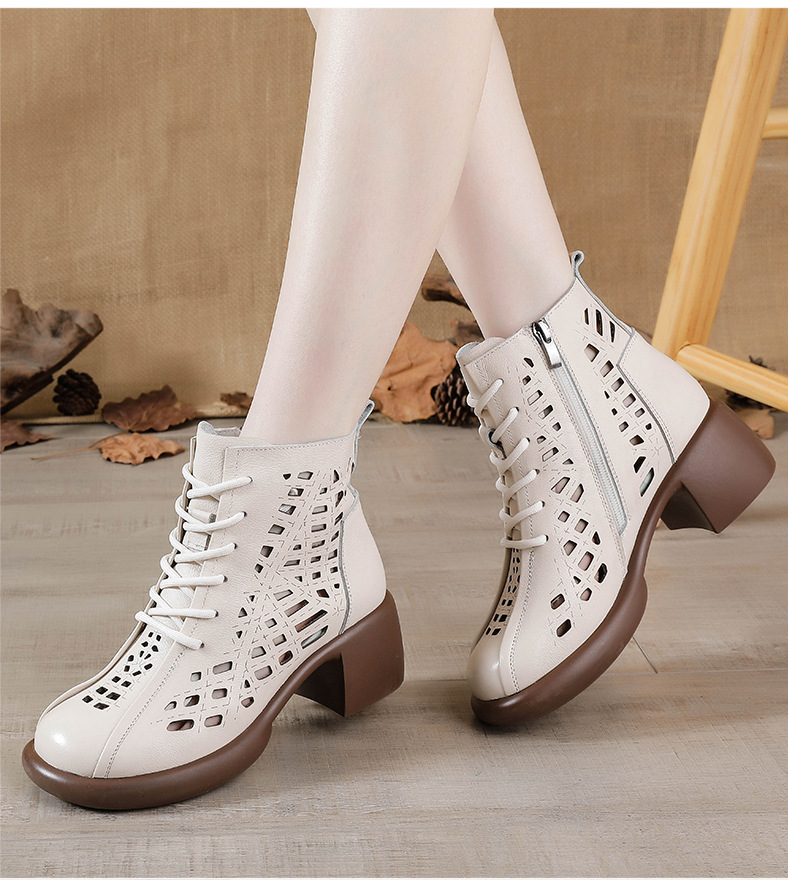 1층 소가죽 여름 샌들 하이힐 마틴 부츠 여성 부츠 속이 빈 두꺼운 밑창 천연 가죽 봄 숏부츠 초하이힐
