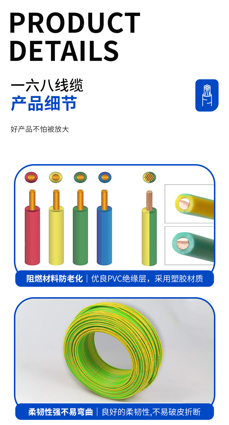국가 표준 BV 케이블 BV 단선 구리심 1제곱미터 단일선 난연 전선 장식용 가정용 조명 방화 전원스토어 가기