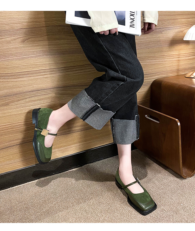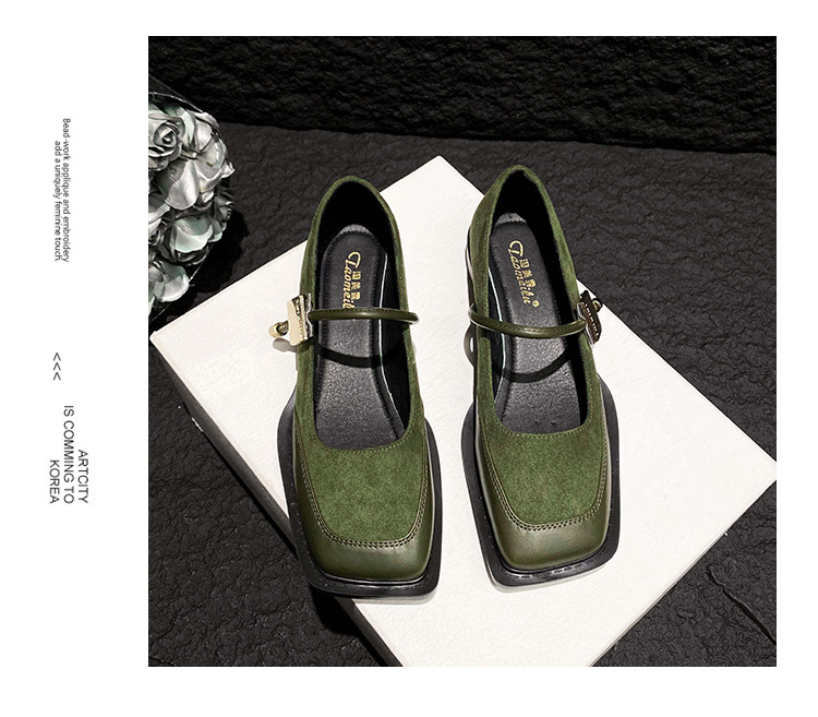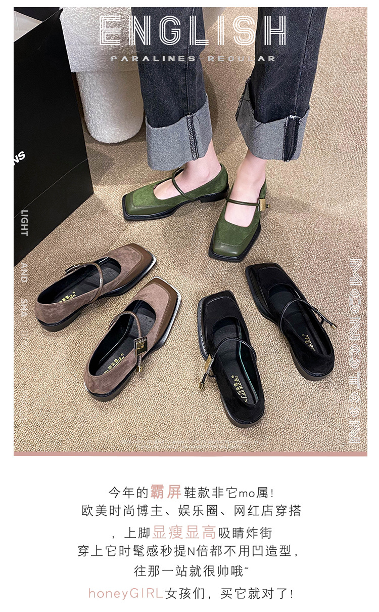 프랑스 스타일 레트로 플랫 바닥 할머니 신발 여성 얕은 입 디자인 센스 컬러 매칭 스퀘어 헤드 우아한 메리 제인 신발 여성스토어 가기