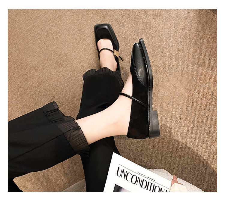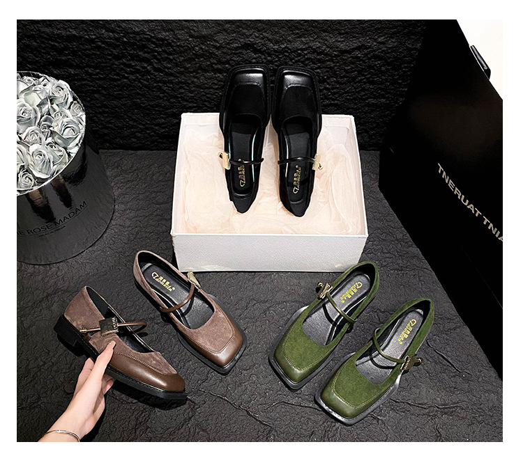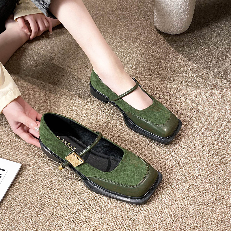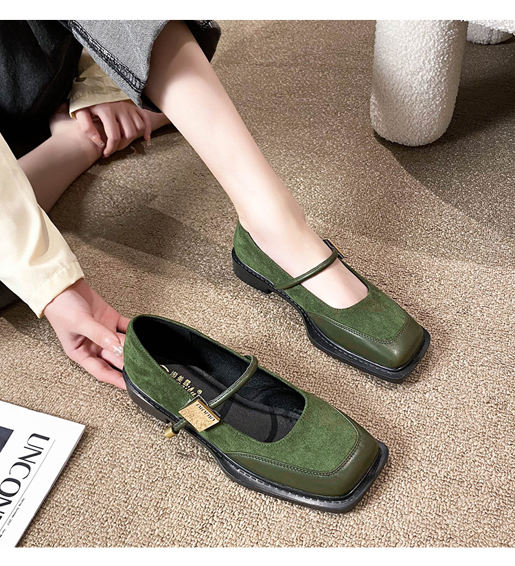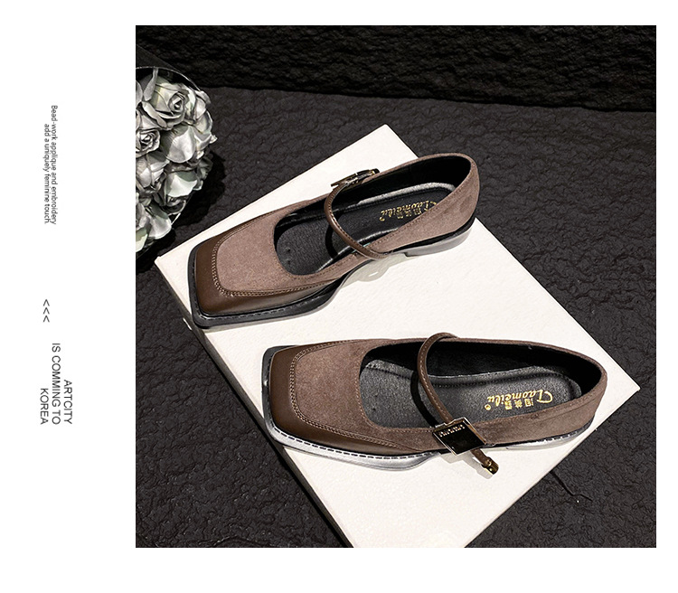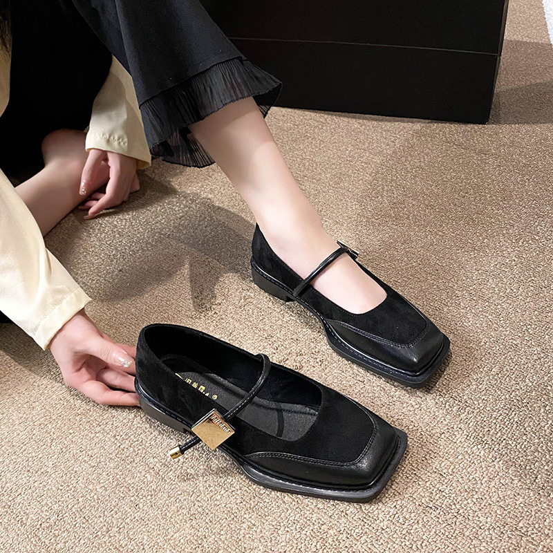 프랑스 스타일 레트로 플랫 바닥 할머니 신발 여성 얕은 입 디자인 센스 컬러 매칭 스퀘어 헤드 우아한 메리 제인 신발 여성