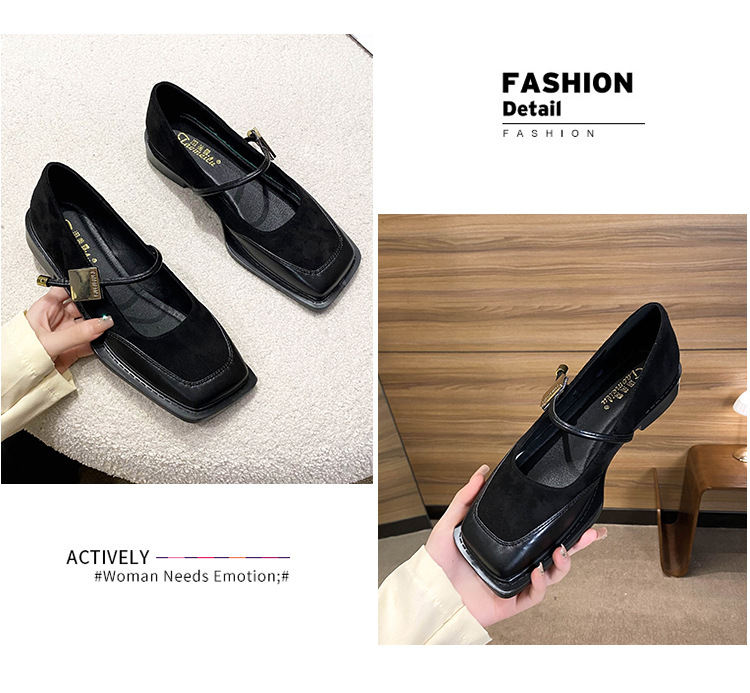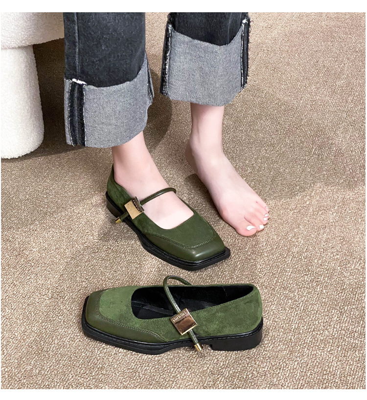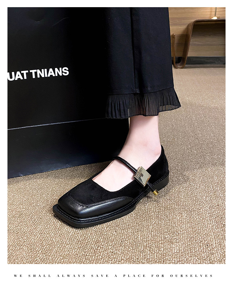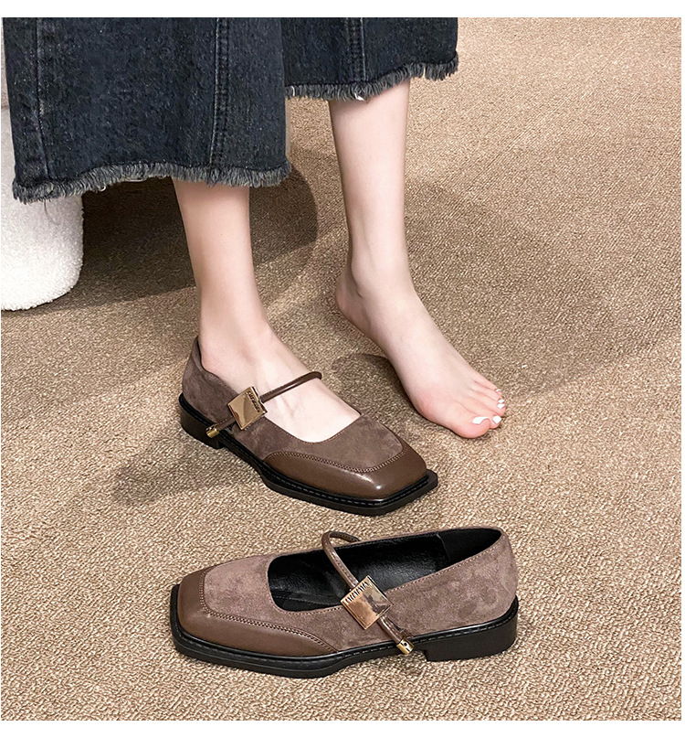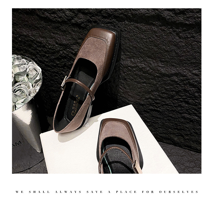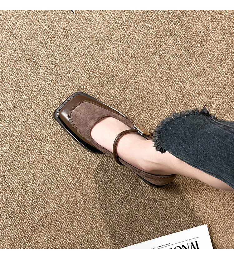 프랑스 스타일 레트로 플랫 바닥 할머니 신발 여성 얕은 입 디자인 센스 컬러 매칭 스퀘어 헤드 우아한 메리 제인 신발 여성
