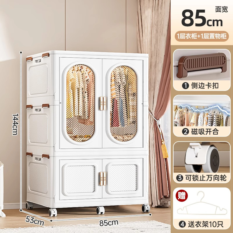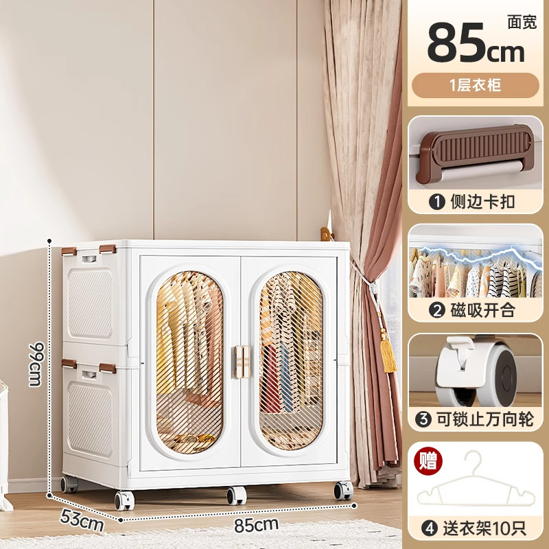 • 폭 85CM - 1단 옷장 + 단색 수납함 1개 [무료 옷걸이 10개]