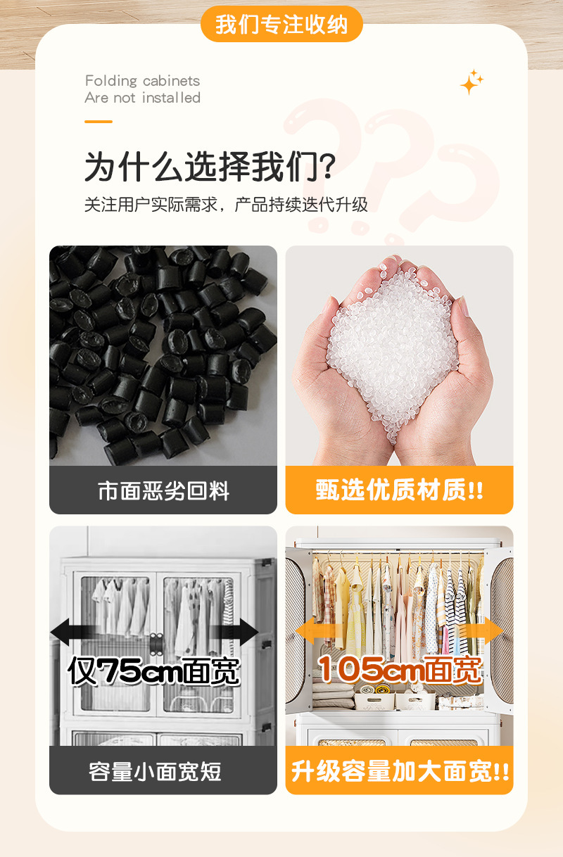 • 폭 105CM - 1단 옷장 + 단색 수납함 2개 [무료 옷걸이 10개]
